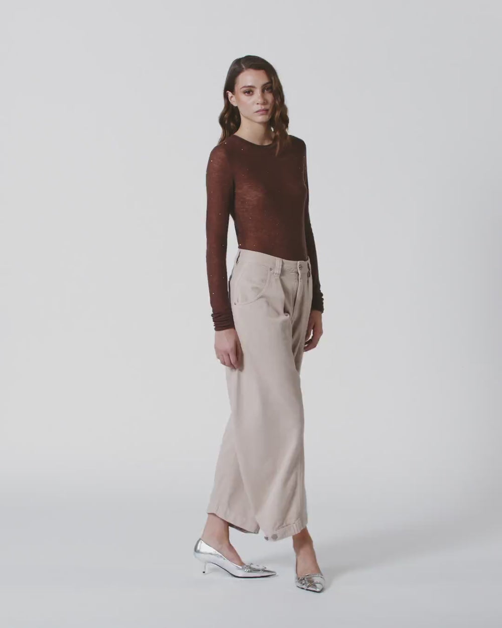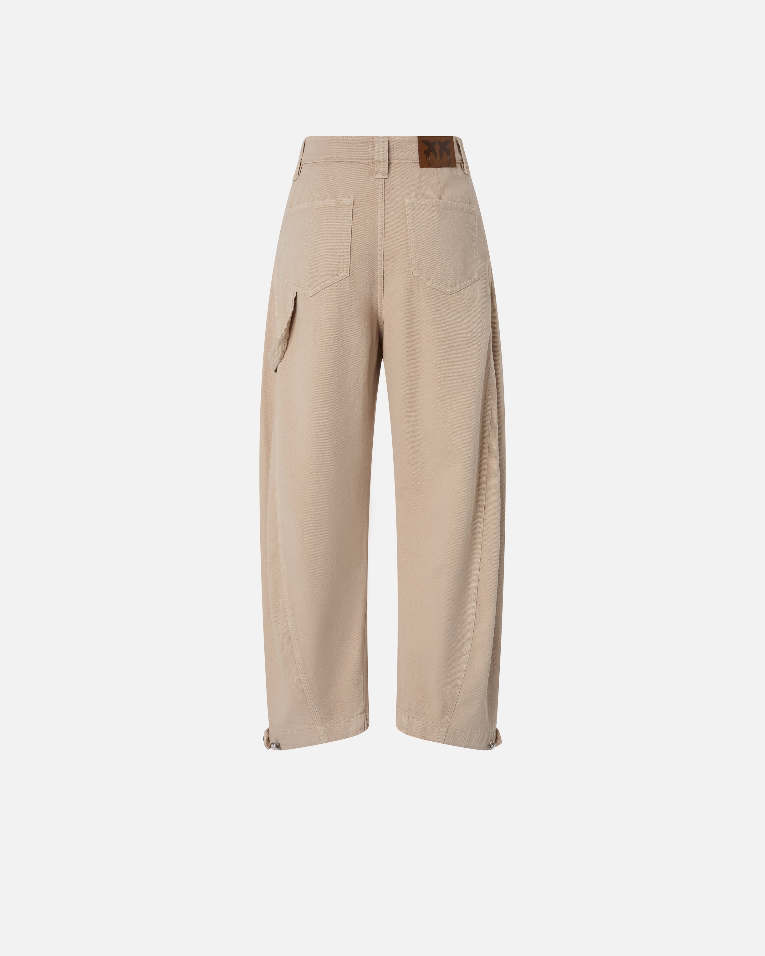 Five-Pocket-Hose im Balloon Fit mit abgerundetem Ballonbein oben und schmalerem Bein unten, hergestellt aus Bull Denim in Baumwolle mit Used-Färbung. Um das Design im reinen Stil von PINKO zu personalisieren, finden wir die Plakette mit dem Logo Love Birds auf der Rückseite. Vervollständigen Sie Ihre Garderobe mit dieser von Workwear inspirierten Hose, die durch das Band hinten und das verstellbare Beinende vervollständigt wird, um Ihr Outfit individuell zu gestalten.
