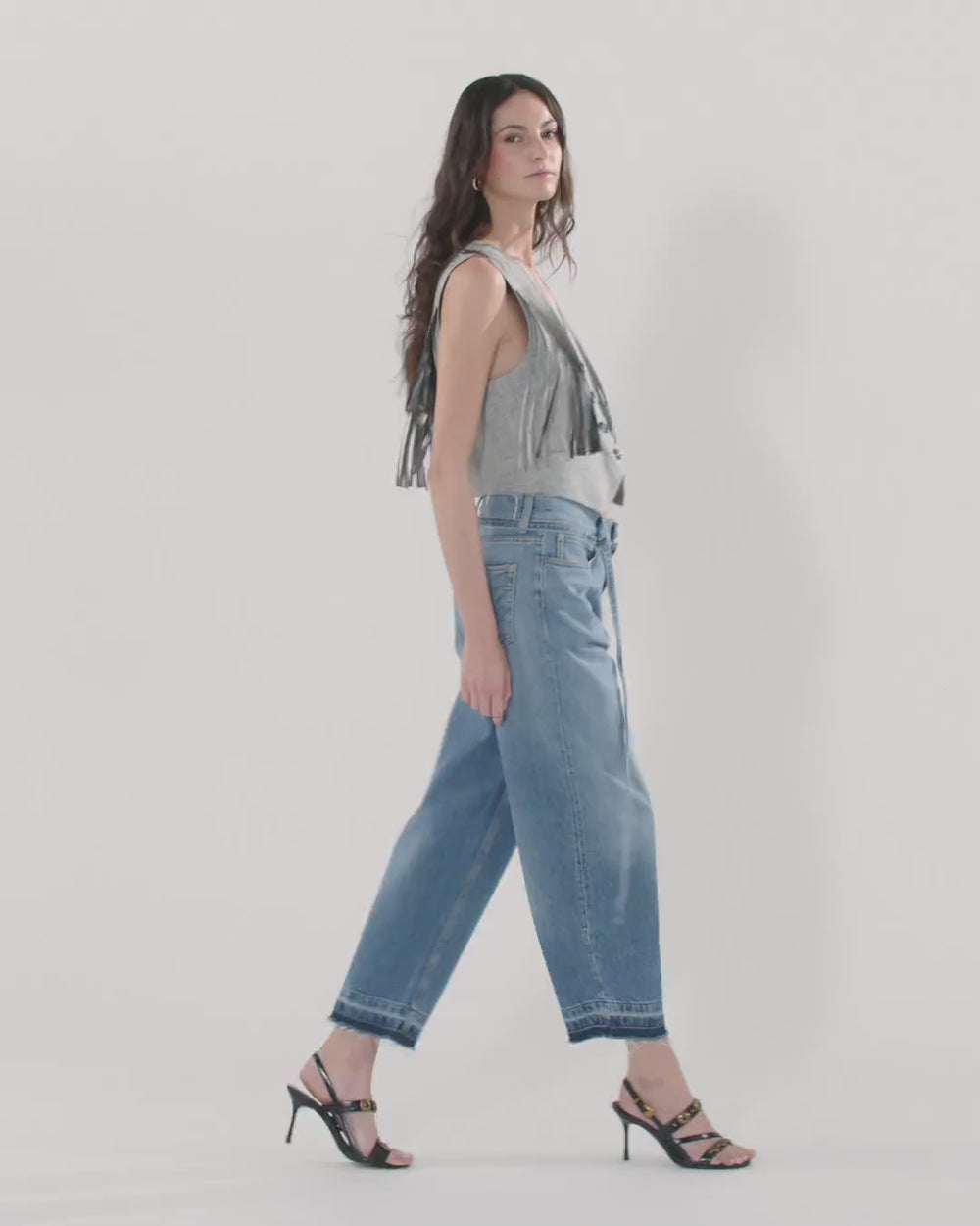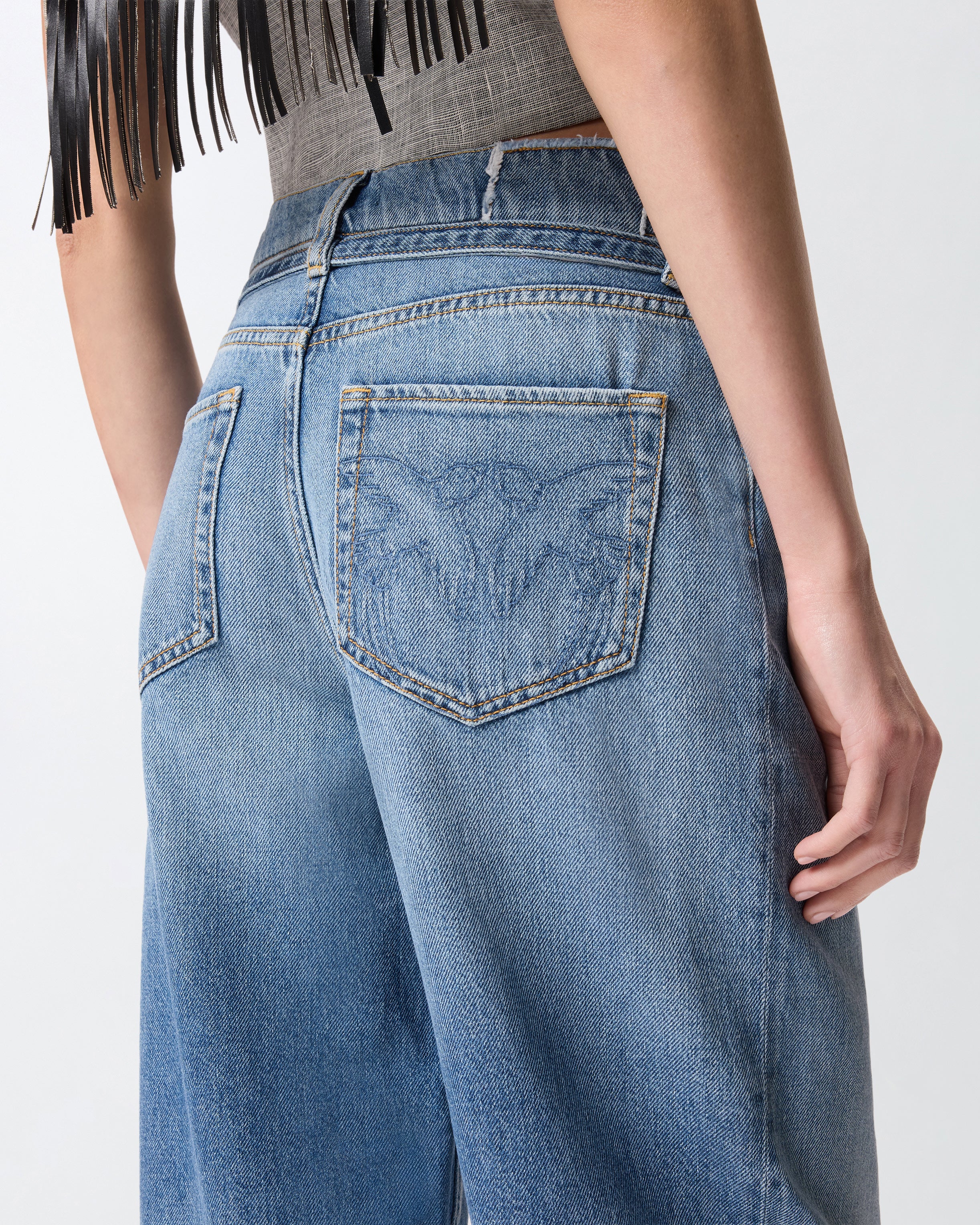 Five-Pocket-Jeans mit niedriger Taille im Balloon Fit, mit abgerundetem Bein oben und schmalerem Bein unten. Das Modell besteht aus Denim in Baumwolle und Lyocell mit mittlerer Waschung und Verfärbungen für einen auffälligen Used-Look und wird durch den in Reserve behandelten Beinabschluss, der für einen unstrukturierten Effekt sorgt, veredelt. Einfach und zeitgemäß zugleich, wird dieses Modell zu einem echten Passepartout in Ihrer Garderobe. - ESTELLE BELT EGG