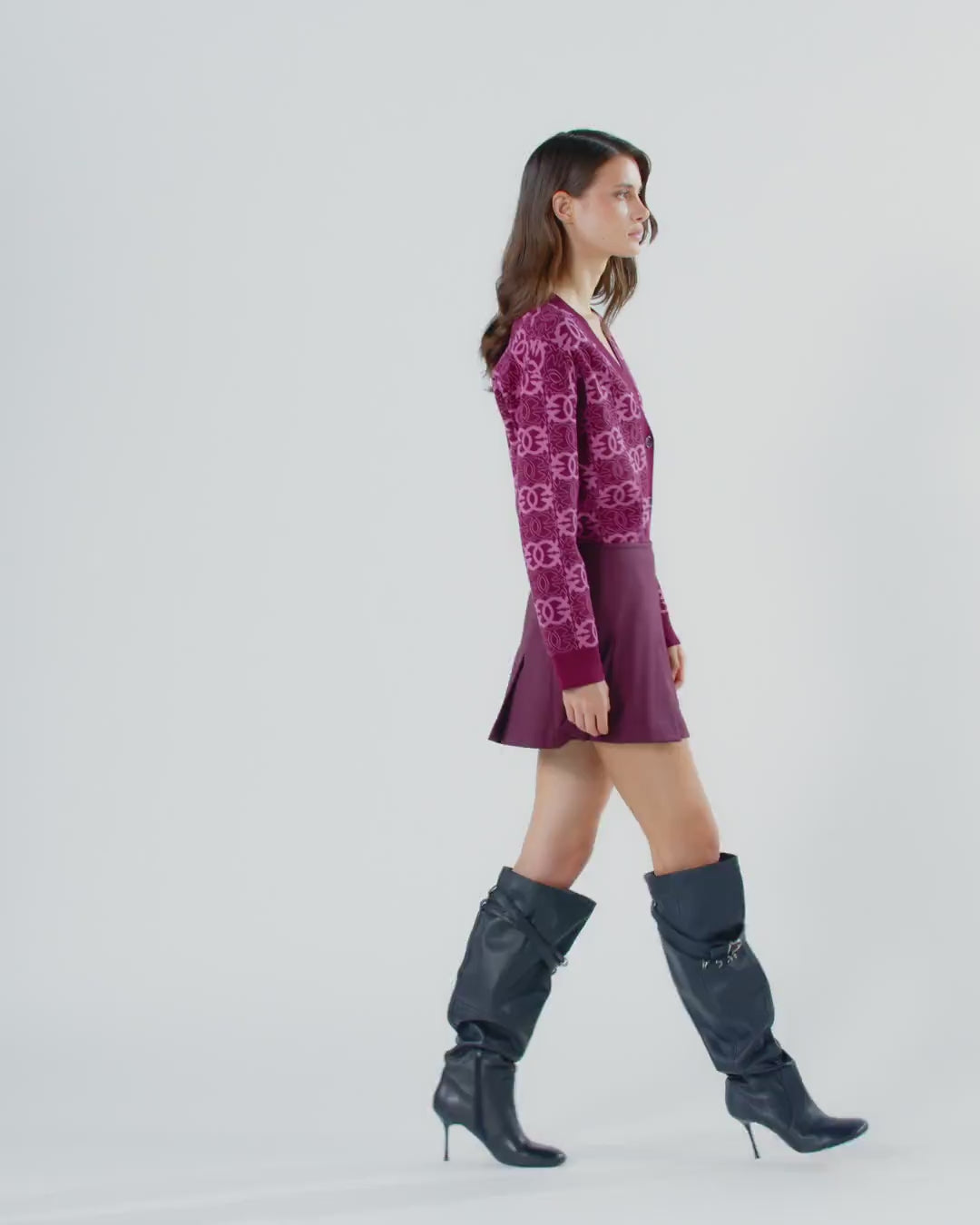 Oversized-Cardigan mit langen Ärmeln, Knöpfen Ton in Ton und Ärmelbündchen, Knopfleiste und V-Ausschnitt in kontrastierendem Rippstrick. Das Allover-Muster mit dem Logo Love Birds in Jacquard-Verarbeitung ist ein markantes Element, das das Modell abrundet. Das Kleidungsstück wurde Veredelungsprüfungen unterzogen, um die mögliche Bildung von Pilling zu minimieren und ein weicheres und haltbareres Gewebe zu gewährleisten. Kombinieren Sie dieses raffinierte und vielseitige Kleidungsstück mit dem passenden Rock aus derselben Kollektion für einen Look, der nichts dem Zufall überlässt.