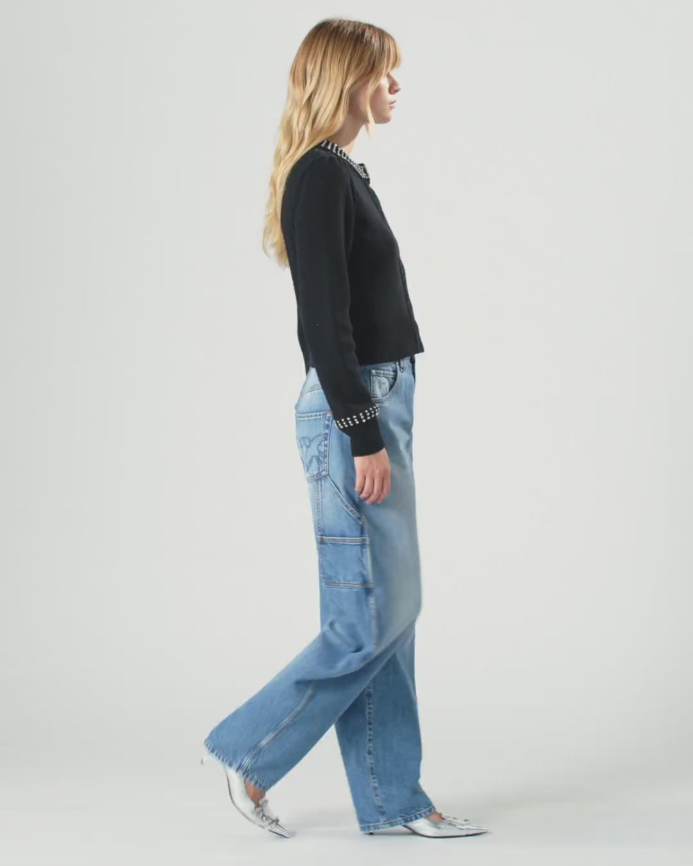 Cardigan im eleganten Slim Fit mit Rundhalsausschnitt und langen Ärmeln. Der Verschluss des Kleidungsstücks besteht aus einer verdeckten Knopfleiste, während Saum und Ärmelbündchen dank der Verarbeitung in Rippstrick für Bewegung sorgen. Auf der Vorderseite befinden sich zwei Taschen, von denen eine das ikonische Etikett Ton in Ton mit dem PINKO-Logo als Lettering trägt. Der Rundhalsausschnitt und die Ärmelbündchen sind dank der Strass-Applikationen, die das Design verschönern, sofort ein Hingucker: ideal, um Ihre Looks und Ihre Tage aufzuhellen. Das Kleidungsstück wurde Veredelungsprüfungen unterzogen, um die mögliche Bildung von Pilling zu minimieren und ein weicheres und haltbareres Gewebe zu gewährleisten.