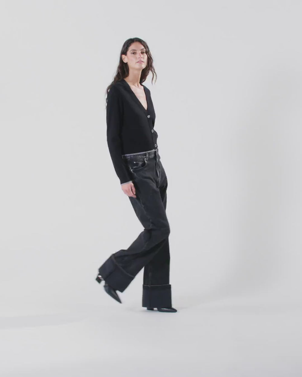 Cardigan in einer kuscheligen Mischung aus Merinowolle und Kaschmir mit V-Ausschnitt, Saum und Bündchen in Rippstrick. Das kontrastierende Garn betont die Bündchen und den Saum, während das charakteristische Etikett mit dem PINKO-Logo als Lettering das Design abrundet. Das Kleidungsstück wurde Veredelungsprüfungen unterzogen, um die mögliche Bildung von Pilling zu minimieren und ein weicheres und haltbareres Gewebe zu gewährleisten. Einfach und zeitgemäß zugleich, wird dieses Design zu einem echten Passepartout.