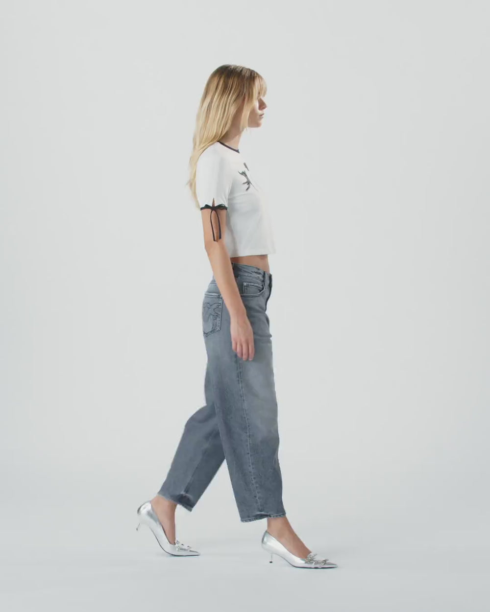 T-Shirt im Cropped-Stil aus reinem Baumwolljersey mit kurzen Ärmeln. Die Vorderseite zeichnet sich durch eine Stickerei mit Applikation in Mikro-Mesh aus, die das Logo Love Birds darstellt. Der Ärmelsaum ist mit einem Verschluss mit einer Masche in einer Kontrastfarbe gestaltet, die denselben Farbton wie der Rundhalsausschnitt hat. Betonten Sie die Eleganz und Weiblichkeit jedes Outfits mit diesem Top, das die perfekte Unterbekleidung in Kombination mit geschneiderter Hose, aber auch mit einer besonderen Jeans ist.