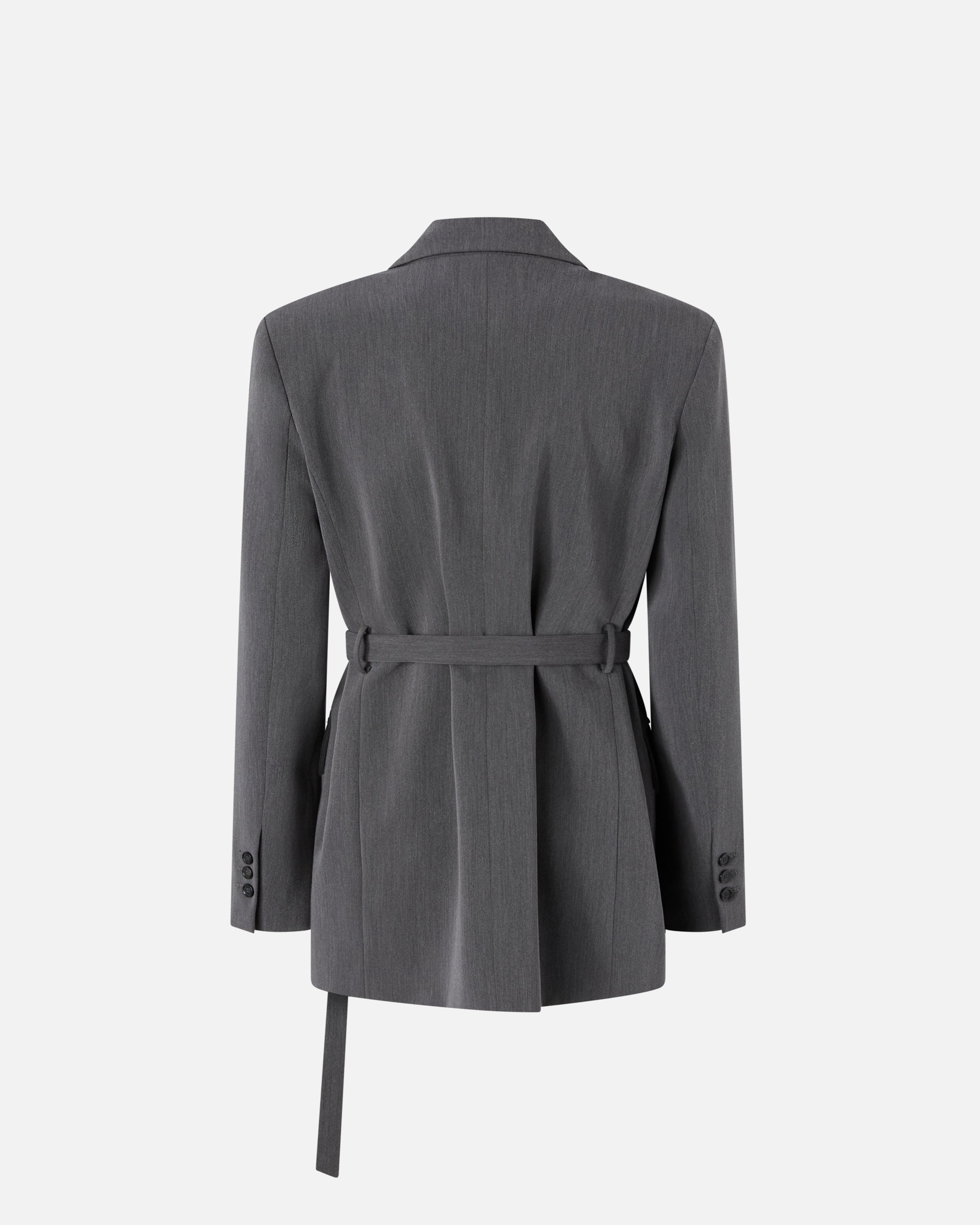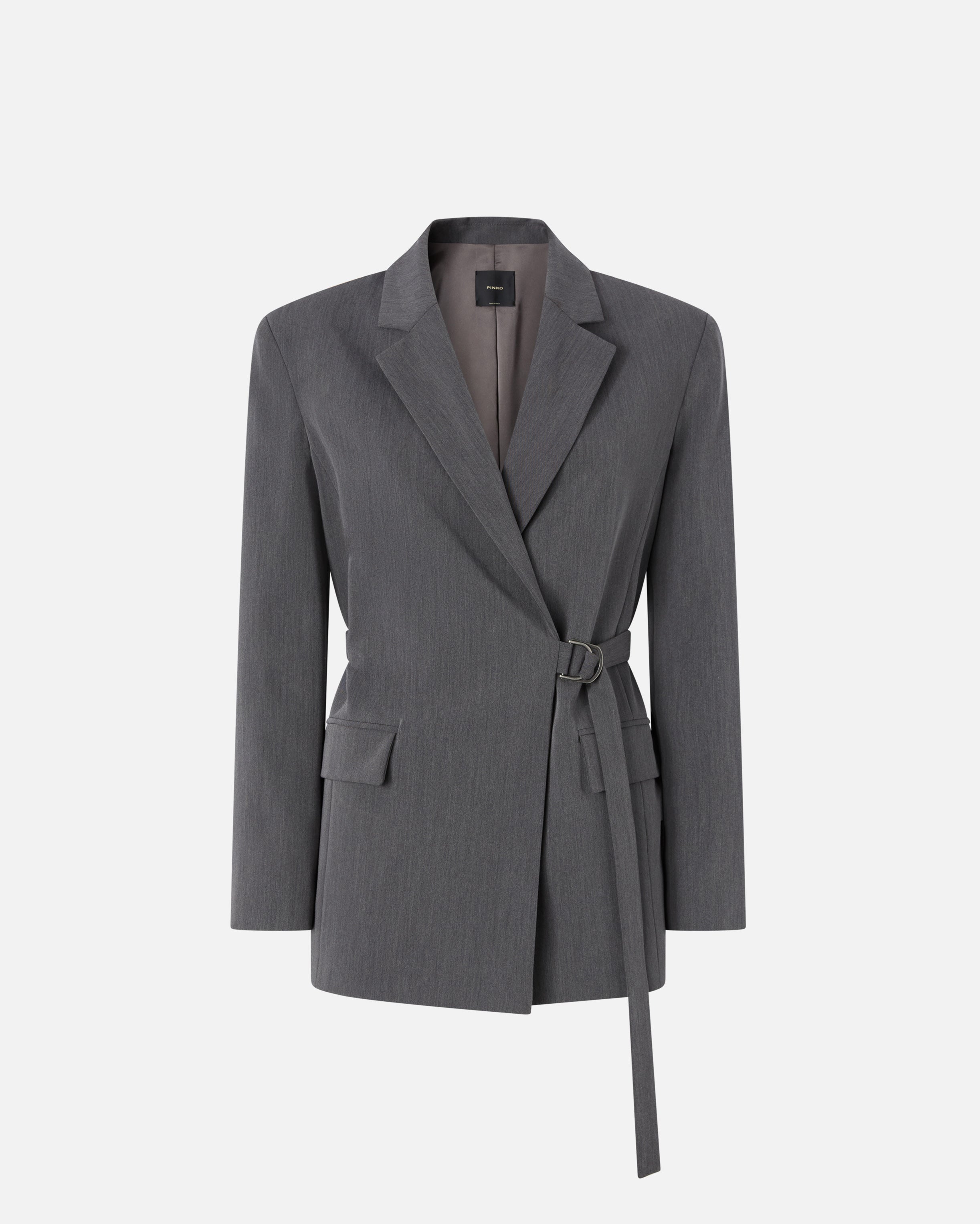 Jacke für Damen aus Frescolana-Stretch, einem leichten und atmungsaktiven Stoff, der sich besonders für die Übergangszeit eignet. Das Modell hat eine raffinierte Silhouette mit den typischen Elementen eines klassischen Blazers, wie der Reverskragen, die strukturierten Schultern und die Pattentaschen, verzichtet jedoch nicht auf einen innovativen Akzent, der durch den gekreuzten vorderen Verschluss ohne Knöpfe und den kombinierten Riemen zum Binden an der Seite entsteht. Kombinieren Sie die Jacke mit der Hose aus demselben Stoff, um ein elegantes und gleichzeitig zeitgemäßes Set zu kreieren.