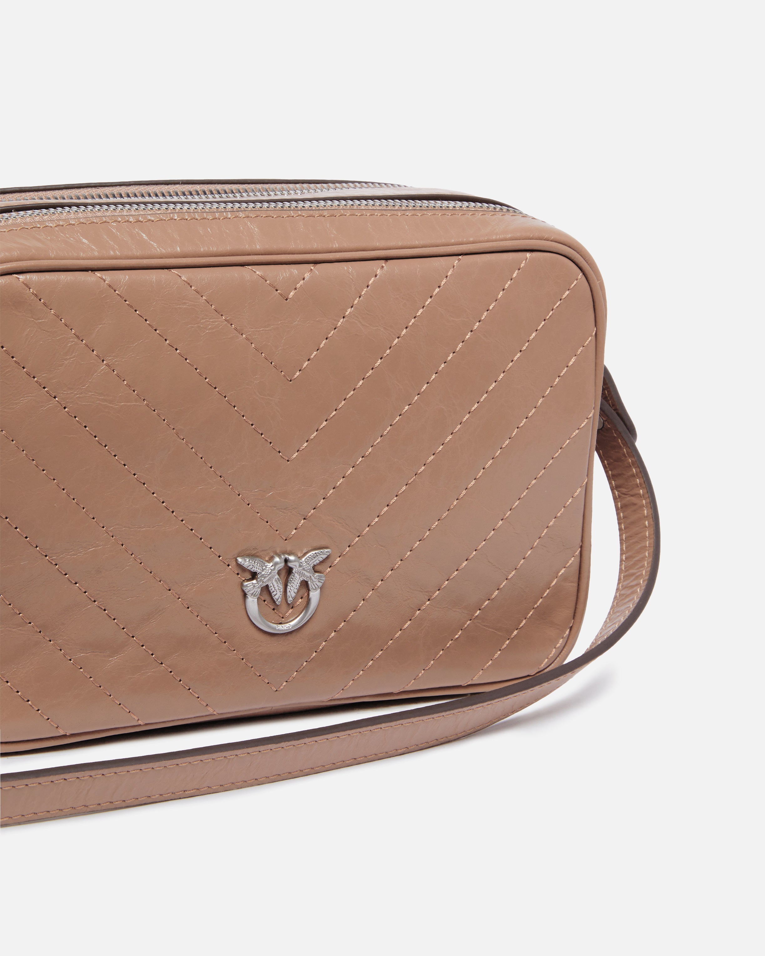 Mittelgroße Tasche im Stil einer Camera Bag mit Innenfutter aus Baumwolle. Die Tasche besteht aus Leder mit Wrnkle-Textur, leicht gekräuselt, und mit Steppnähten im Chevron-Muster. Dank des verstellbaren Schulterriemens aus Leder zum Tragen in der Hand oder über der Schulter ist die Tasche äußerst vielseitig und praktisch. Diese Tasche ist ein unverwechselbares Accessoire für zahllose Looks und verfügt über einen doppelten Reißverschluss und Innentaschen, in denen Sie Ihre wichtigsten Utensilien sicher aufbewahren können. Das raffinierte Design wird durch das Logo Love Birds abgerundet, das den unnachahmlichen Stil der Marke zum Ausdruck bringt. Aktivieren Sie Ihre PINKO-Tasche: Halten Sie Ihr Smartphone an die Love-Birds-Stickerei auf der Rückseite der Tasche, um die Echtheit Ihres Produkts zu überprüfen und um ein personalisiertes Erlebnis zu genießen!