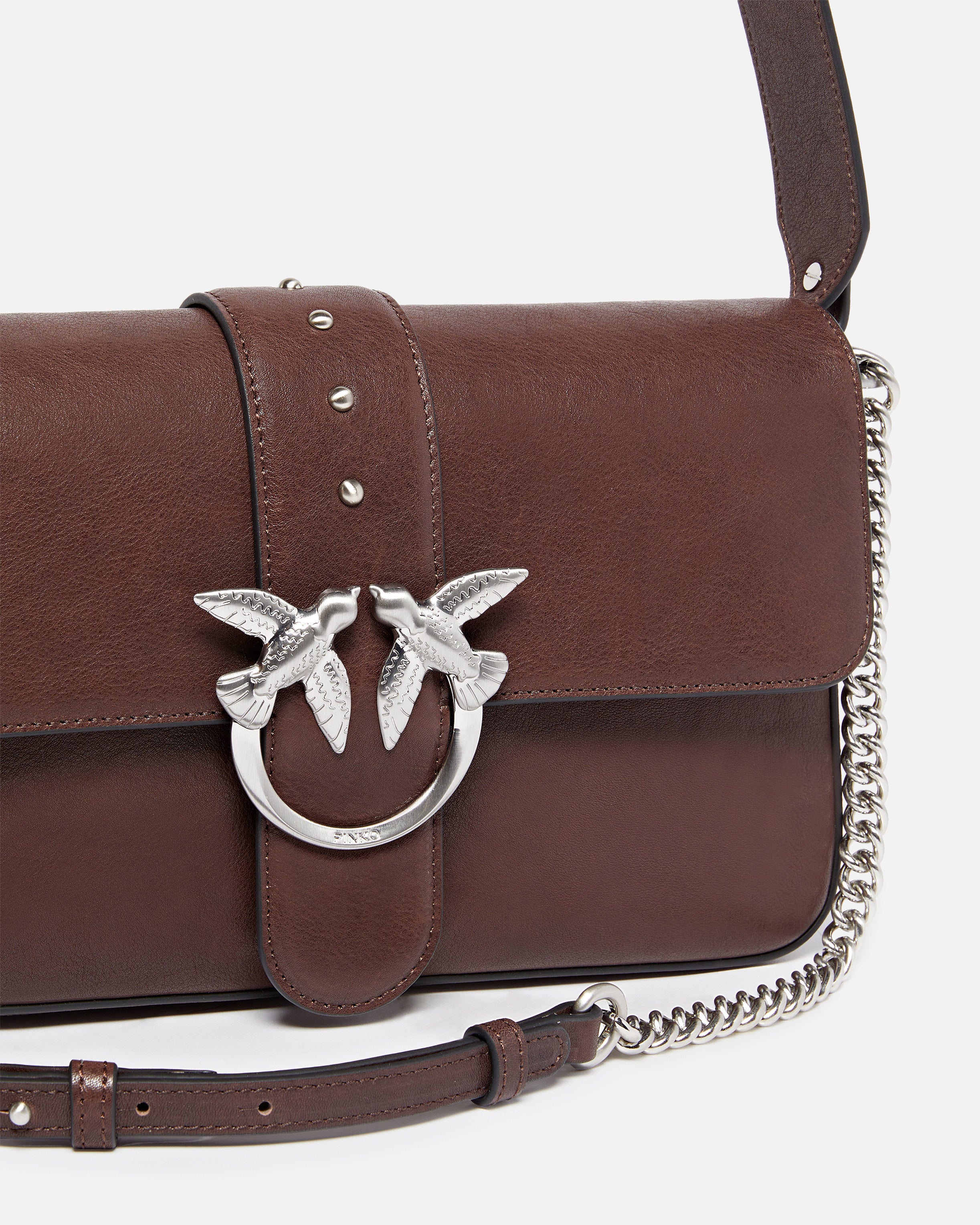 Mittelgroße Tasche Classic Love Bag Slouchy aus weichem Leder mit Innenfutter aus Baumwolle und einer Innentasche mit Reißverschluss, in der Sie Ihre wichtigsten Utensilien sicher aufbewahren können. Die kleinen Nieten und der Metallreißverschluss, der entlang der Hüften und der Unterseite verläuft, sorgen für ein unverwechselbares Biker-Detail, während die Schnalle Love Birds Diamond Cut den unnachahmlichen Stil von PINKO zum Ausdruck bringt. Das Accessoire ist mit zwei verschiedenen Schulterriemen ausgestattet: einem breiten und verstellbaren Schulterriemen aus Leder und einem abnehmbaren Schulterriemen, der eine Metallkette und einen Schulterpolster aus Leder vereint. Aktivieren Sie Ihre PINKO-Tasche: Halten Sie Ihr Smartphone an die Love-Birds-Stickerei auf der Rückseite der Tasche, um die Echtheit Ihres Produkts zu überprüfen und um ein personalisiertes Erlebnis zu genießen!