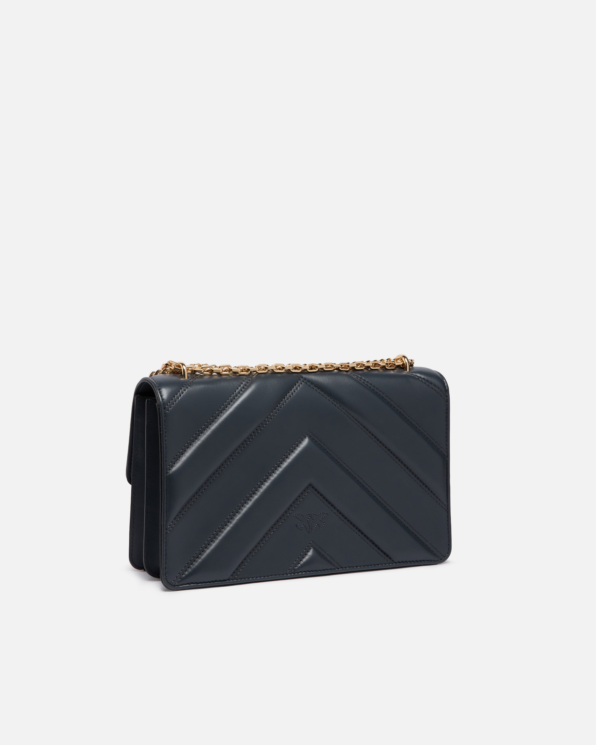 Mittelgroße Tasche Love Bag One, die sich durch ein Chevron-Design auszeichnet, das Einsätze aus weichem Leder mit Nappaleder-Einsätzen abwechselt und einen leicht voluminösen Steppeffekt erzeugt. Das Modell verfügt über einen Verschluss mit Magnetknopf, der durch die ikonische Schließe Love Birds Diamond Cut abgerundet wird, und wird durch einen Schulterriemen mit passendem Schulterpolster aus Leder und einer dreigliedrigen Kette bereichert: einmal mit Runddraht, einmal mit rechteckigen Maschen und einmal mit kleinen runden Maschen, für einen finalen Effekt, der die kreative Leidenschaft der Marke voll und ganz widerspiegelt. Innen mit Stoff aus Baumwolldrill gefüttert und mit einem Zwischenfach mit Reißverschluss versehen, das die Tasche in zwei Fächer unterteilt. Aktivieren Sie Ihre PINKO-Tasche: Halten Sie Ihr Smartphone an die Love-Birds-Stickerei auf der Rückseite der Tasche, um die Echtheit Ihres Produkts zu überprüfen und um ein personalisiertes Erlebnis zu genießen! - LOVE ONE CLASSIC TRIPLE CHAIN
