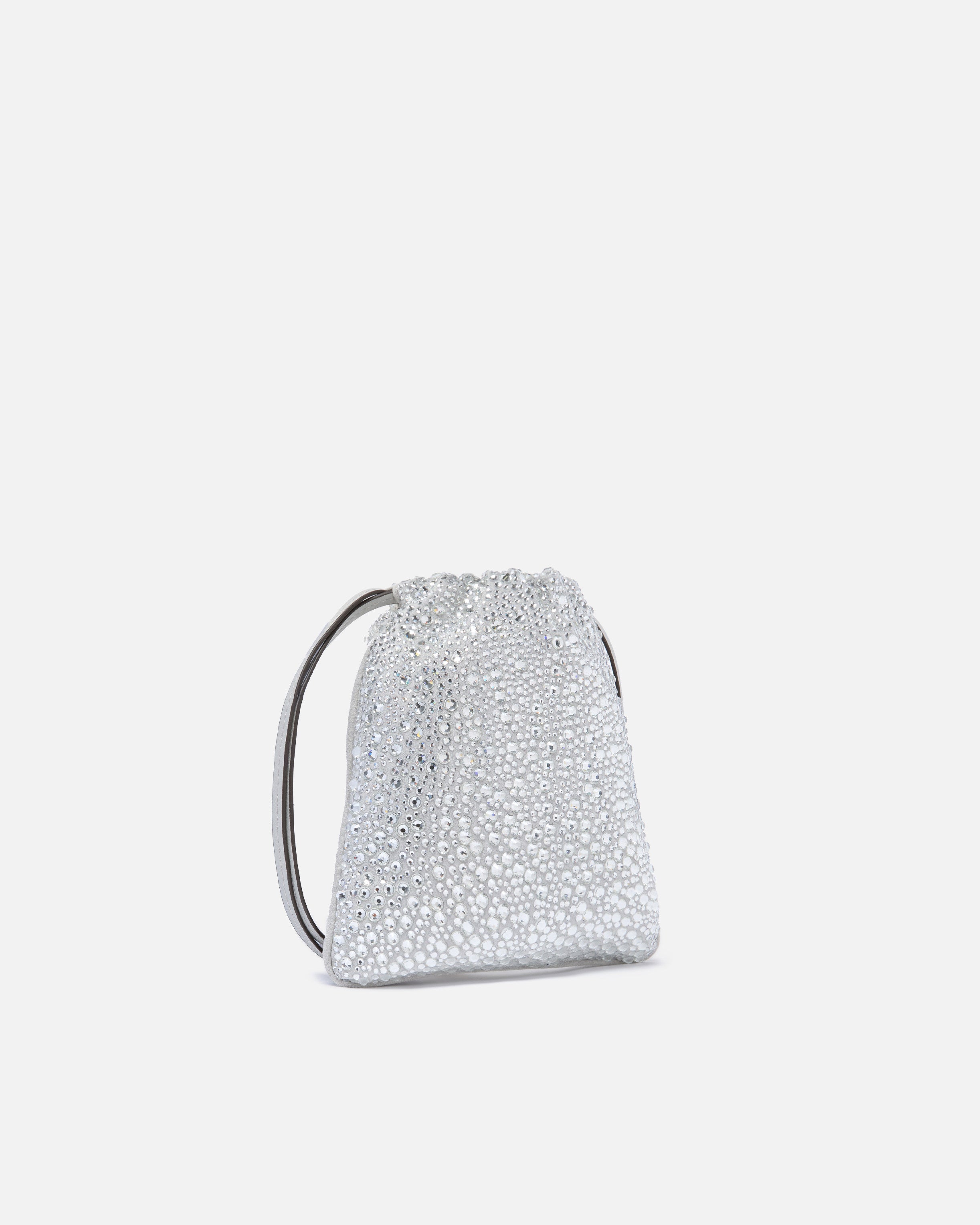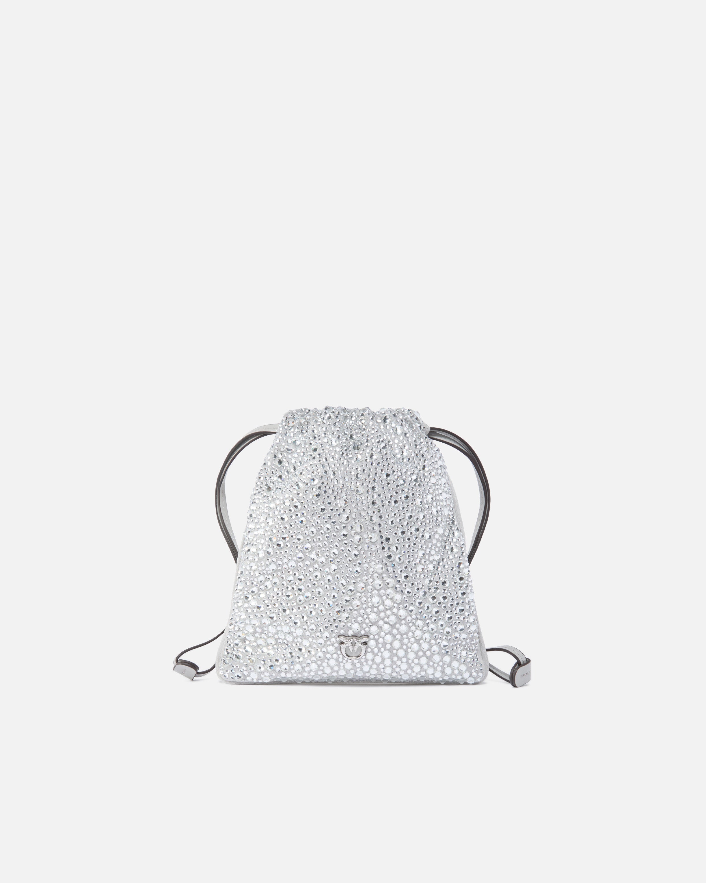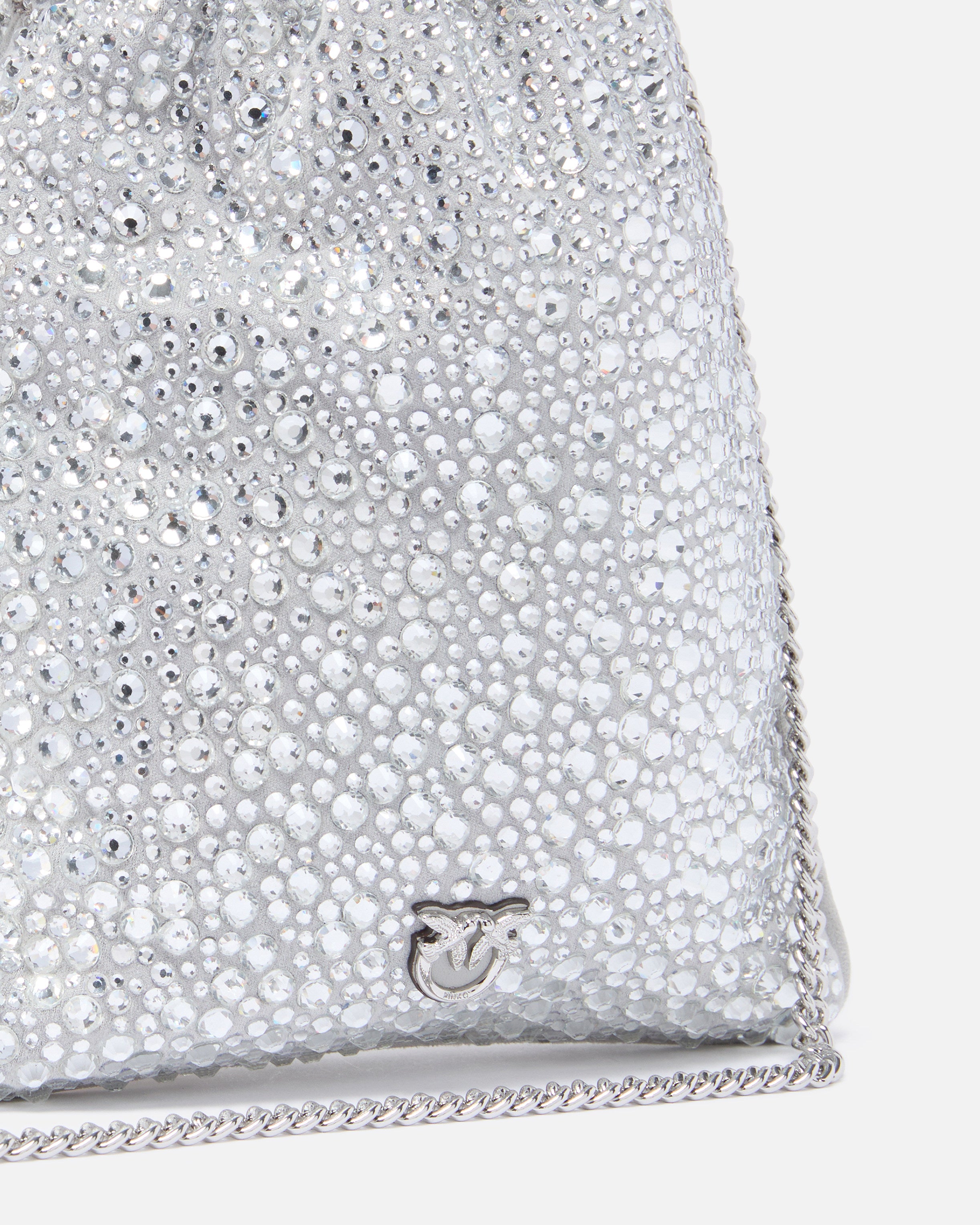 Kleine Tasche Slouchy Bag aus Stoff, der vollständig mit Strasssteinen bedeckt ist, für einen Akzent mit der DNA von PINKO, verziert mit einer Plakette mit dem ikonischen Logo Love Birds auf der Vorderseite und mit einem Verschluss mit Tunnelzug, um Ihre wichtigsten Utensilien sicher aufzubewahren. Mit dem festen Schulterriemen aus einer Kette, mit dem die Tasche über die Schulter oder als Umhängetasche getragen werden kann, ist sie äußerst raffiniert und perfekt, um Sie auch bei besonderen Anlässen zu begleiten. Das Innere der Tasche ist mit Baumwollgewebe gefüttert und hat ein Seitenfach mit Reißverschluss. Aktivieren Sie Ihr PINKO-Accessoire: Halten Sie Ihr Smartphone an die Love Birds-Stickerei auf der Rückseite, um die Echtheit Ihres Produkts zu überprüfen und für ein personalisiertes Erlebnis!