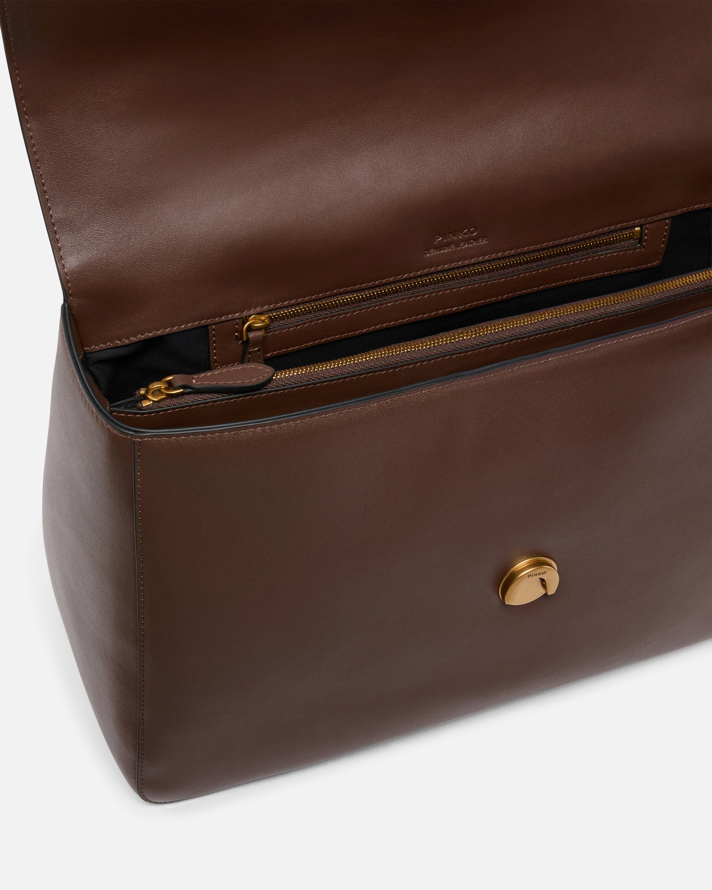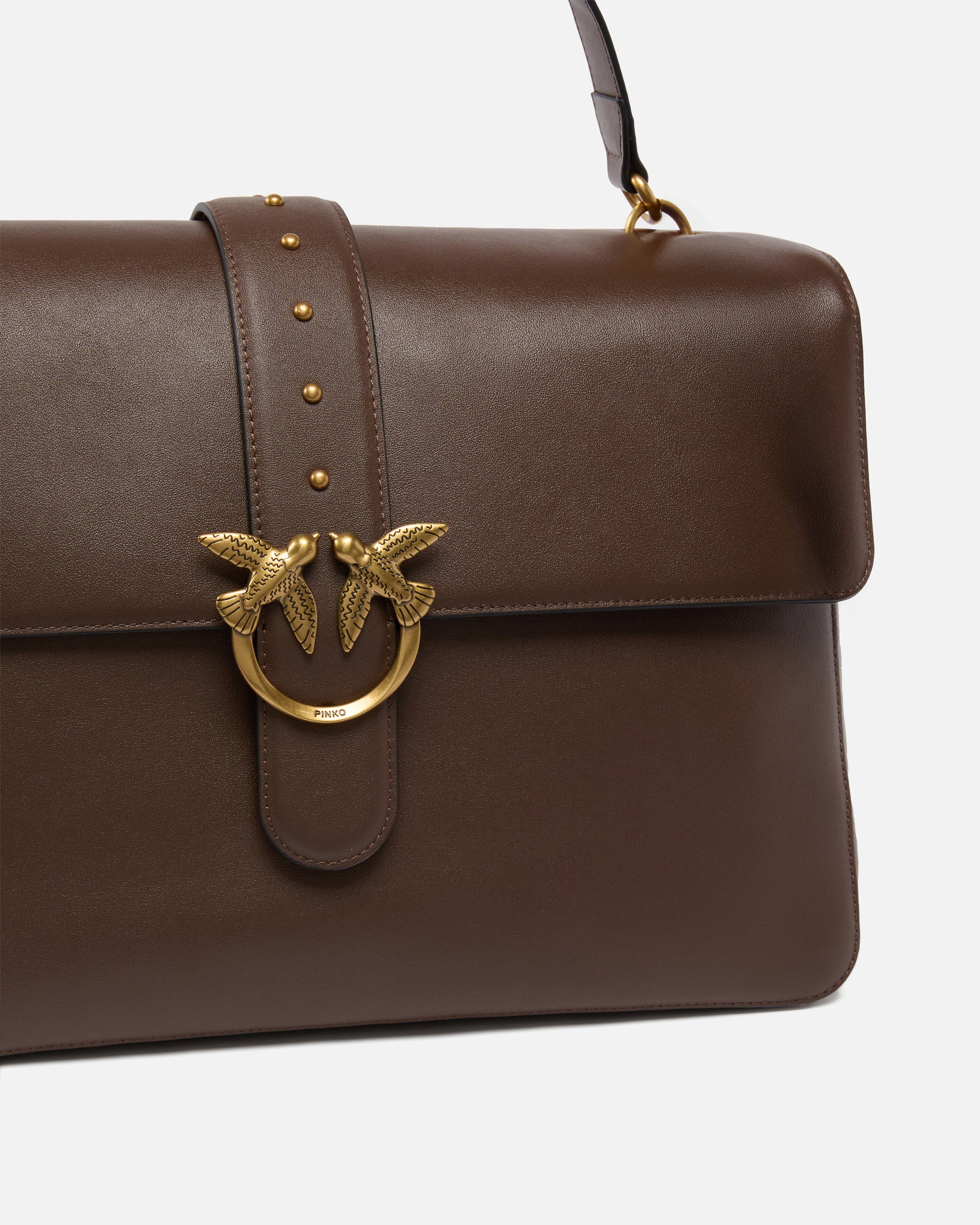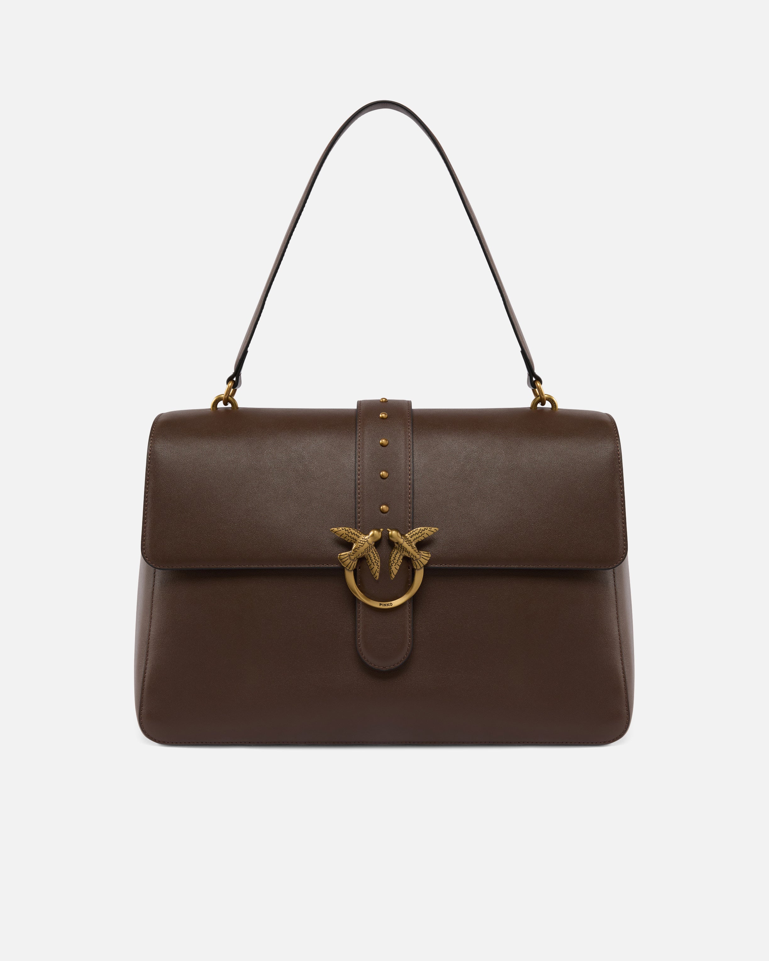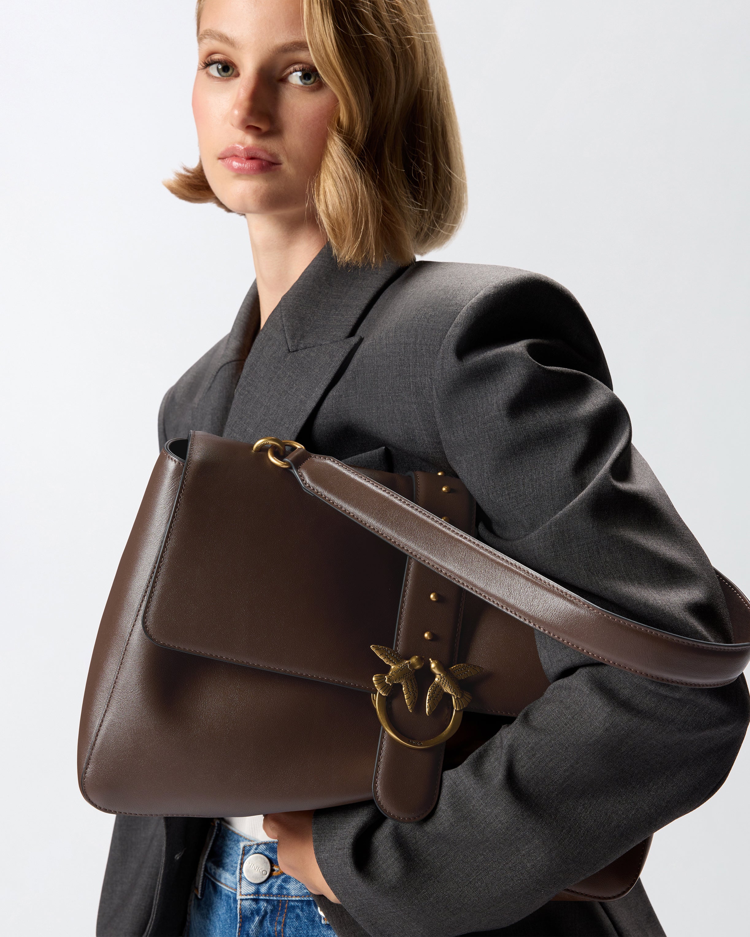 Trapezförmige Maxi-Schultertasche Extra Love Bag Slouchy aus weichem Leder, komplett mit Innenfutter aus Baumwolle. Mit einem Lederhenkel zum Tragen in der Hand oder über der Schulter ist die Tasche äußerst vielseitig und praktisch. Die kleinen Nieten verleihen dem Modell eine auffällige und persönliche Note, während die Schnalle Love Birds Diamond Cut den unnachahmlichen Stil der Marke zum Ausdruck bringt. Aktivieren Sie Ihre PINKO-Tasche: Halten Sie Ihr Smartphone an die Love-Birds-Stickerei auf der Rückseite der Tasche, um die Echtheit Ihres Produkts zu überprüfen und um ein personalisiertes Erlebnis zu genießen!