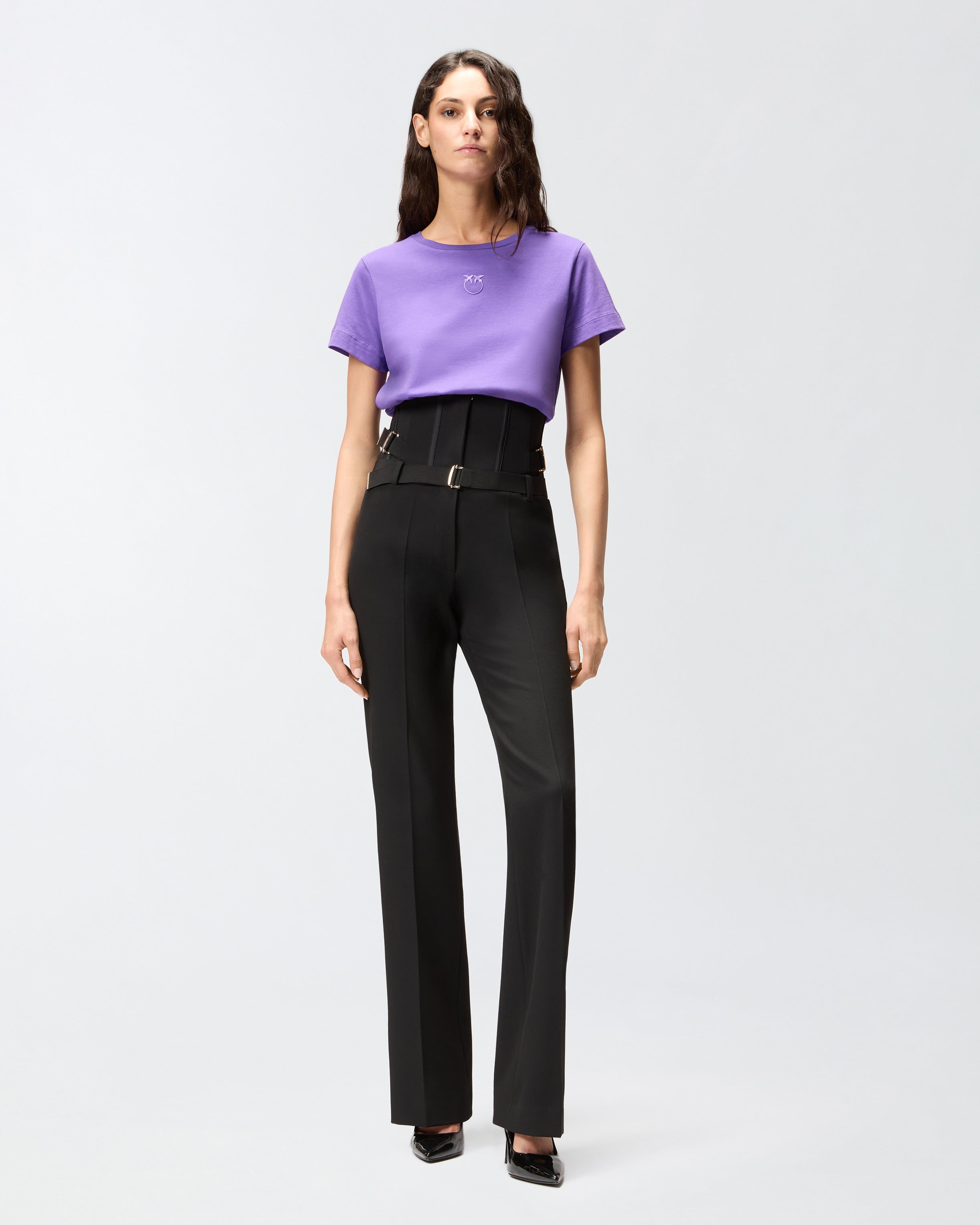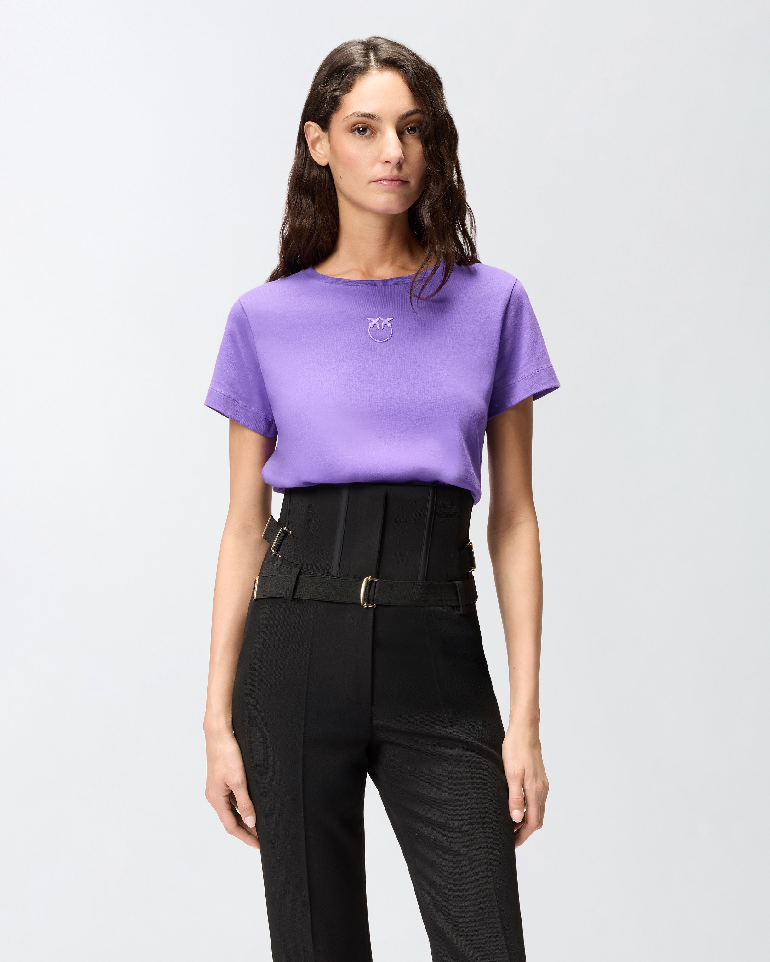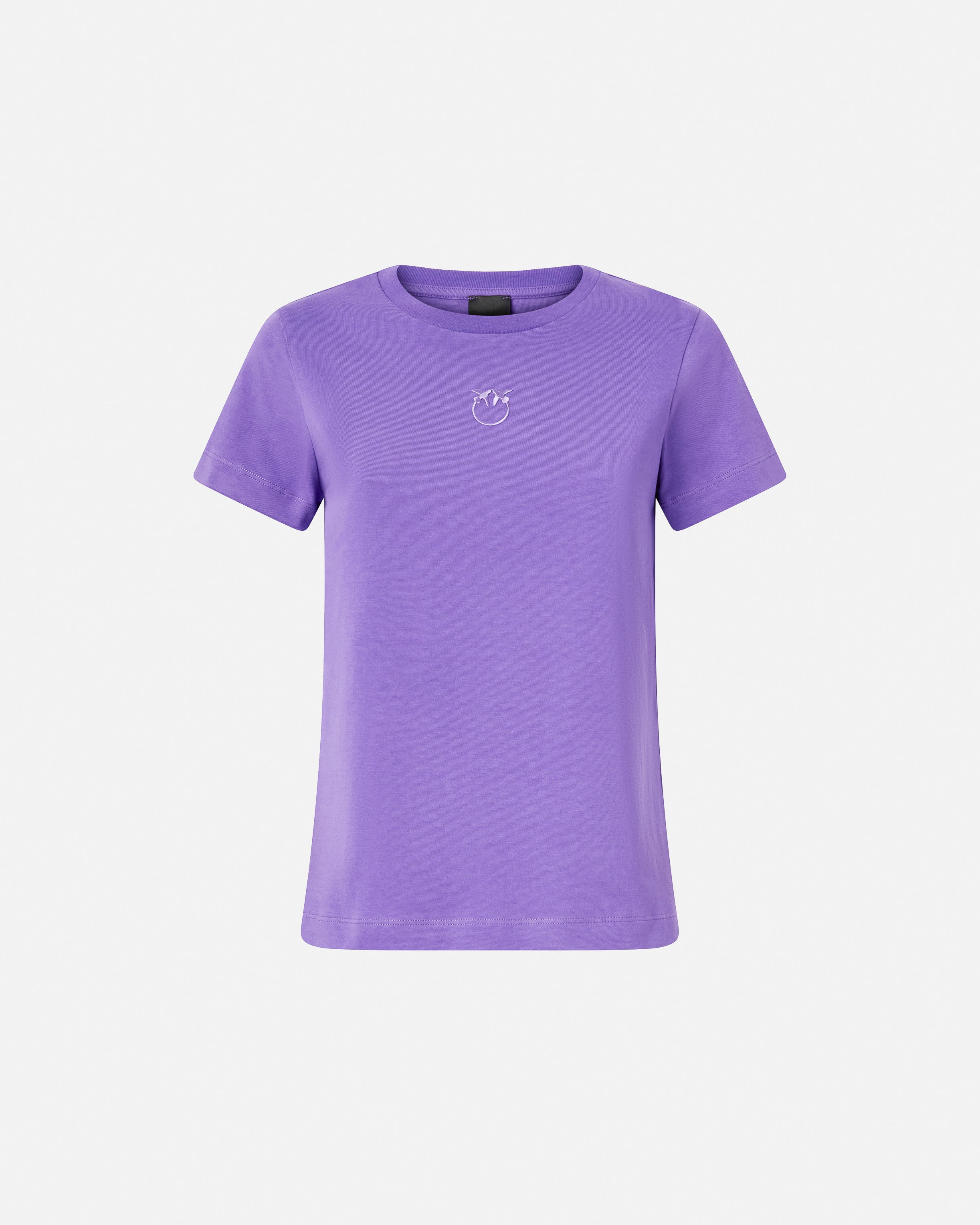 Schmal geschnittenes Kurzarm-T-Shirt aus Baumwolljersey mit Love-Birds-Stickerei auf der Vorderseite. Dieses T-Shirt lässt sich leicht mit Ihrer Lieblingshose kombinieren und hebt Ihren Look auf einfache, elegante und originelle Weise hervor.