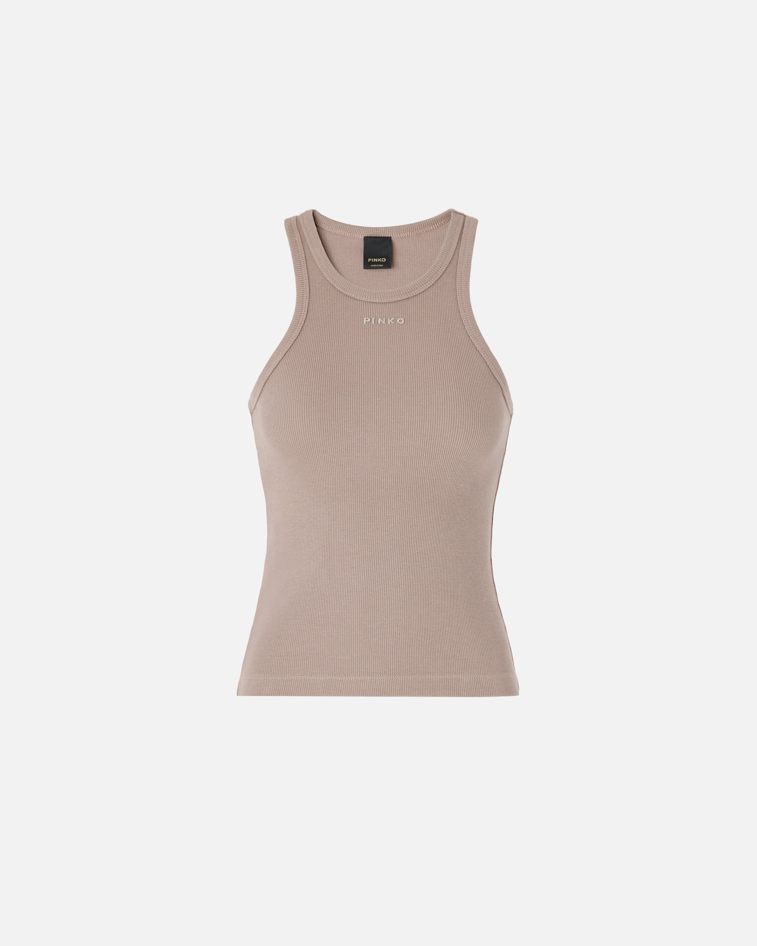 Geripptes Tanktop mit Ruderschnitt aus Stretch-Baumwolle. Abgerundet wird das Design durch die farblich abgestimmte Stickerei mit dem PINKO-Logo als Lettering auf der Vorderseite. Ein unverzichtbares Modell in der Damengarderobe und perfekt, um praktische und gleichzeitig moderne Sommerlooks zu kreieren.