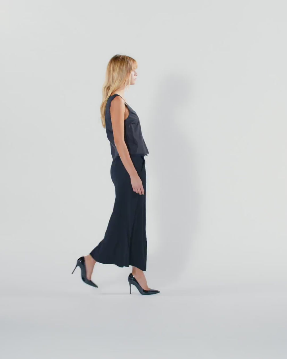Ärmelloses Top mit geometrischem V-Ausschnitt aus Mikrofaser-Taft mit Memory-Haptik. Der Knitter-Effekt des Gewebes passt perfekt zur Spitze mit Intarsien-Optik, die den Saum und die Ärmel umrandet. Kombinieren Sie dieses von Dessous inspirierte Oberteil mit dem passenden Rock für einen sinnlichen Abendlook oder tragen Sie es mit einer maßgeschneiderten Hose für ein Outfit, das nicht unbemerkt bleibt.