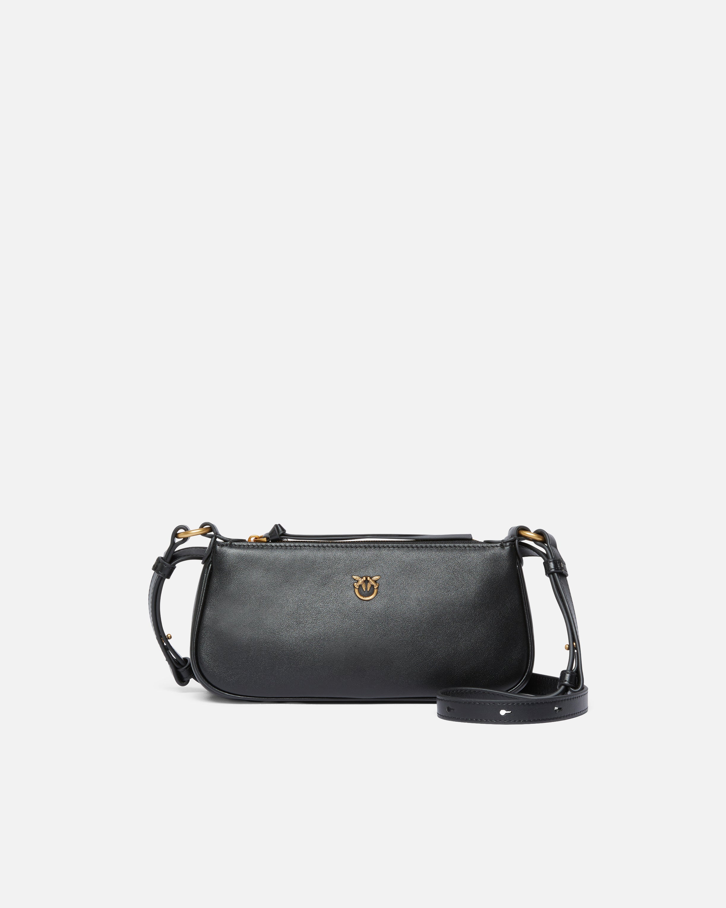 Kleine Tasche Mini Half Moon mit charakteristischer rechteckiger Form, schmal und langgezogen, aus weichem Leder gefertigt und mit einem Hauptverschluss mit Reißverschluss ausgestattet, um Ihre wichtigsten Gegenstände sicher zu verstauen. Dank des verstellbaren Schulterriemens aus Leder ist die Tasche äußerst vielseitig und praktisch für den Alltag. Das raffinierte Design wird durch das Logo Love Birds abgerundet, das den unnachahmlichen Stil der Marke zum Ausdruck bringt. Aktivieren Sie Ihre PINKO-Tasche: Halten Sie Ihr Smartphone an die Love-Birds-Stickerei auf der Rückseite der Tasche, um die Echtheit Ihres Produkts zu überprüfen und um ein personalisiertes Erlebnis zu genießen! - HALF MOON MINI