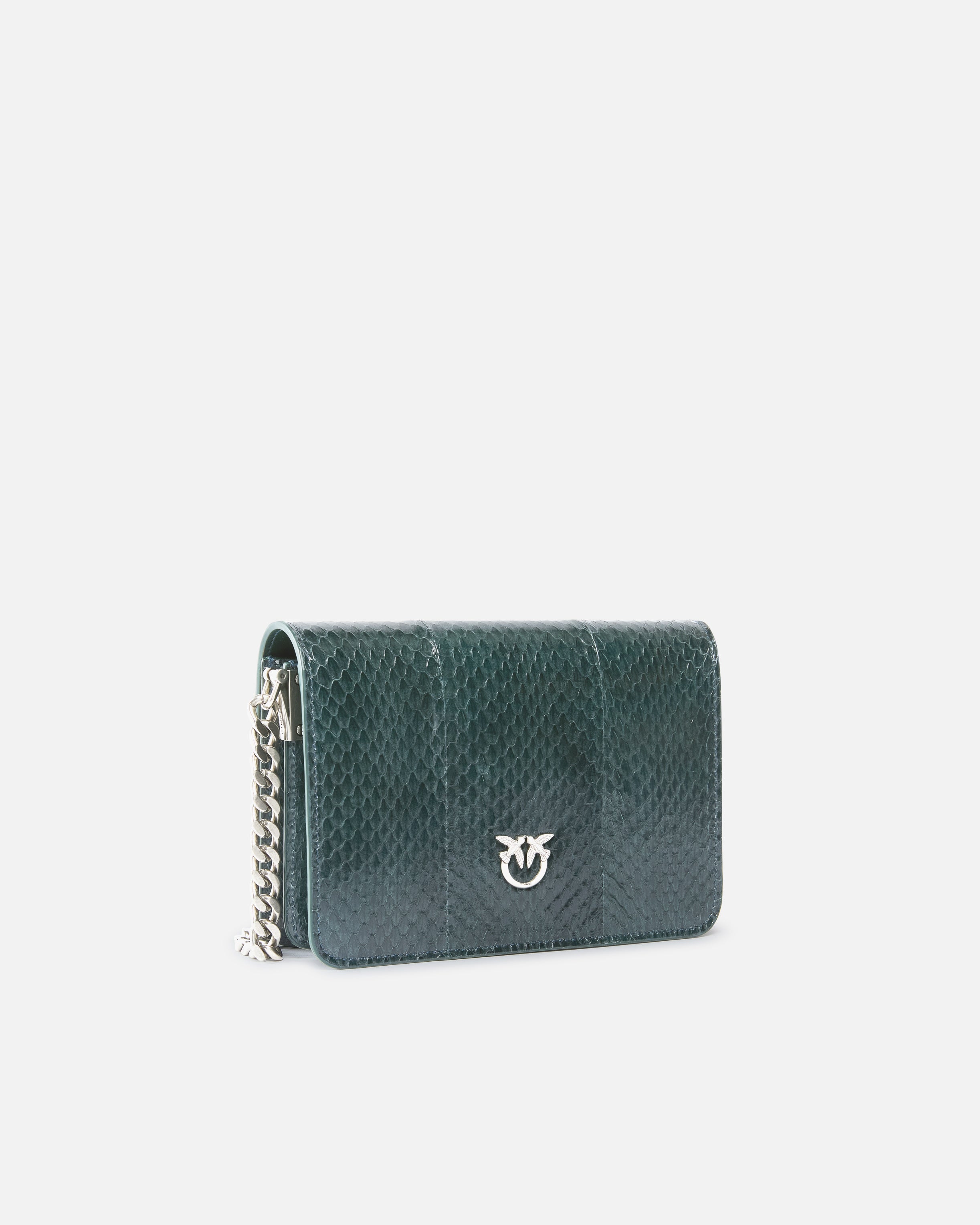 Kleine Umhängetasche Mini Love Bag Click aus Ayers-Python-Reptilleder mit besonderem glänzendem Finish. Diese besondere Art von Leder wird auf der Tasche platziert und dann von Hand auf jedes Modell aufgenäht: Je nach verwendetem Leder ist jede Tasche daher einzigartig, eventuelle Unvollkommenheiten sind ein charakteristisches und unverwechselbares Detail. Der Trageriemen in Form einer Kette mit verstellbarem Schulterpolster aus Leder sorgt für ein angenehmes Tragegefühl. Das Innere der Tasche ist mit Stoff gefüttert und hat ein Zwischenfach mit Reißverschluss. Die ikonische Schnalle aus Metall Love Birds Diamond Cut wird durch das aufgesetzte Kristall-Pavé noch wertvoller, um alle besonderen Anlässe, zu denen Sie diese Tasche tragen, einzigartig zu machen. Die Tasche ist Teil der exklusiven Limited Edition Capsule Collection in limitierter Stückzahl, die speziell für PINKO Galleria entworfen wurde. Der NFC-Spezialchip macht die Tasche zu einem exklusiven Einkaufserlebnis!