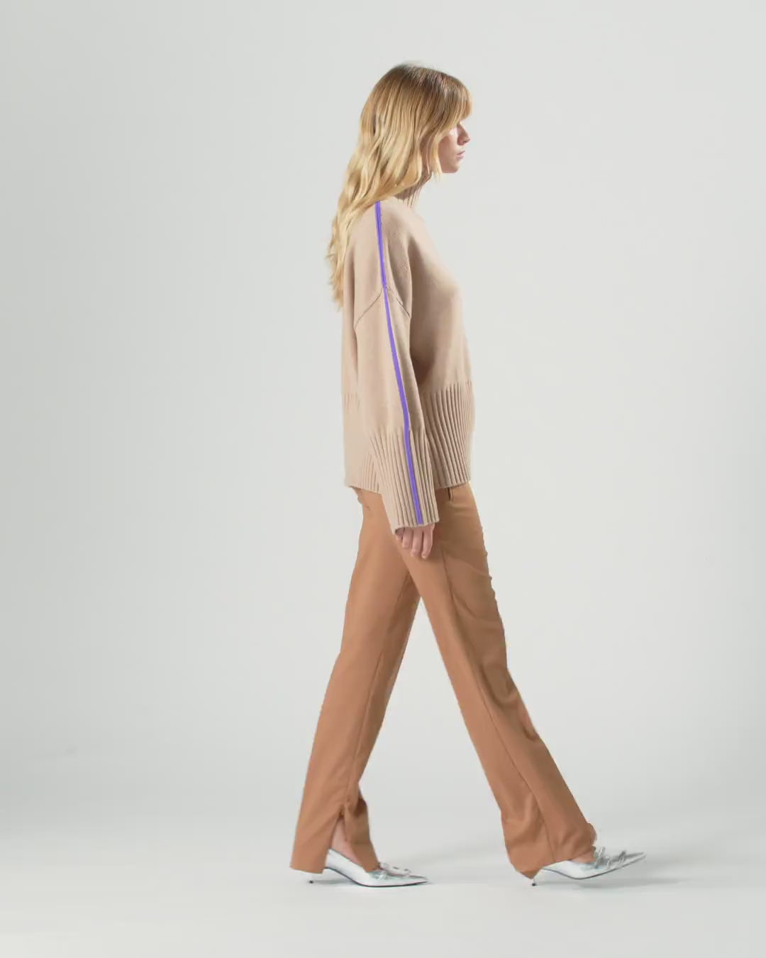 Locker sitzender Rollkragenpullover aus hochwertiger Merinowolle mit Rippstrick an Rundhalsausschnitt, Saum und Ärmelbündchen. Das Garn in einer Kontrastfarbe an den Ärmeln verleiht dem Design einen Hauch von Lebendigkeit und greift die Farbe des PINKO-Logos in Form eines Letterings auf der Rückseite des Kleidungsstücks auf. Das Kleidungsstück wurde Veredelungsprüfungen unterzogen, um die mögliche Bildung von Pilling zu minimieren und ein weicheres und haltbareres Gewebe zu gewährleisten. Elegant und vielseitig zugleich, ist dieses Modell perfekt für jeden Anlass.
