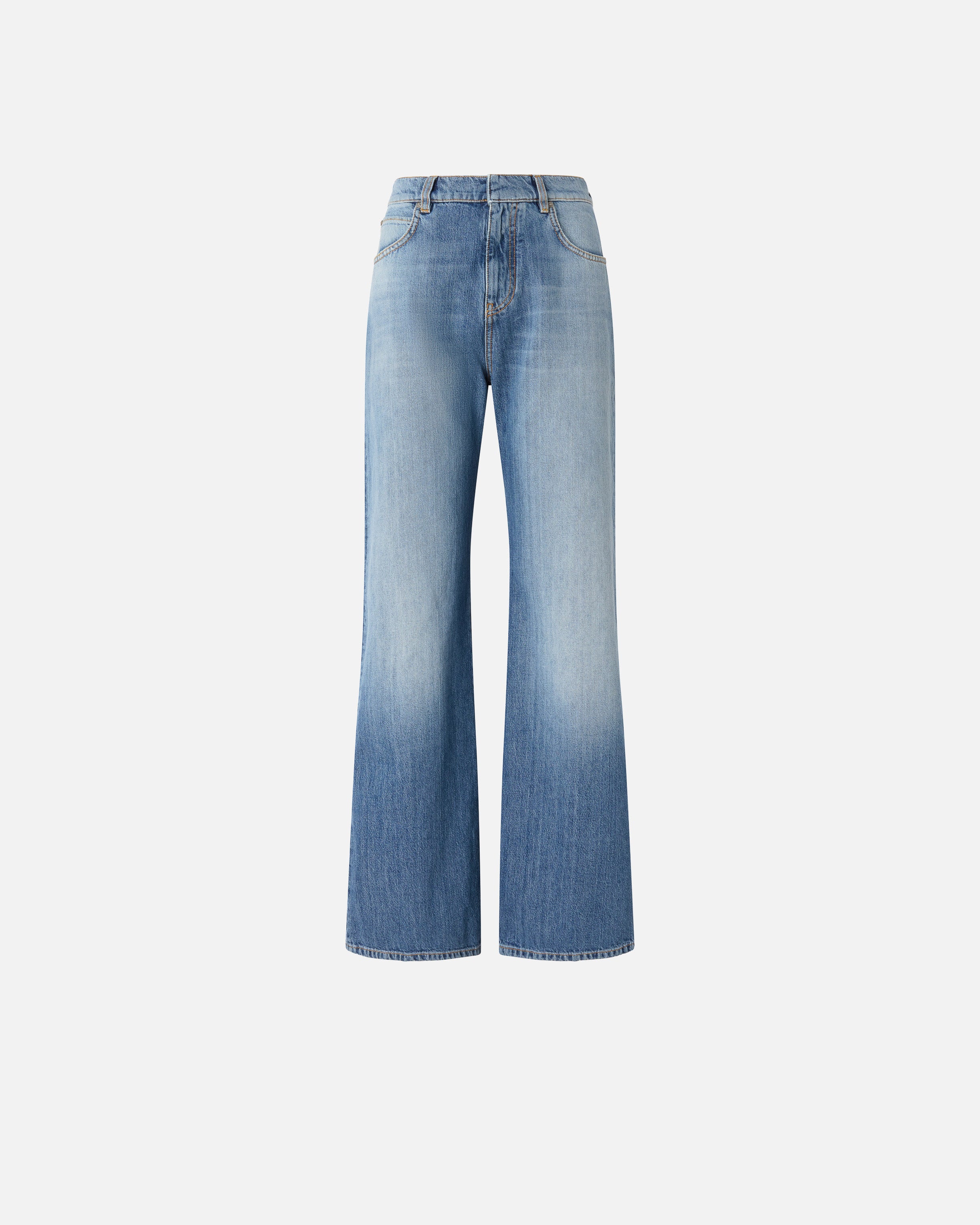 Five-Pocket-Jeans mit weitem Bein aus Denim in reiner Baumwolle mit weichem Griff, die sich durch eine mittlere Waschung mit deutlichen Verfärbungen für einen auffälligen Vintage-Effekt auszeichnet. Um das Design im reinen Stil von PINKO zu personalisieren, finden wir das aufgestickte Logo der Marke als Lettering auf der Rückseite und das Logo Love Birds mit aufgestickten Vögeln auf der rechten Gesäßtasche. Zeitgemäß und vielseitig wird diese Jeans zum absoluten Hauptdarsteller Ihrer täglichen Outfits. - WANDA WIDE LEG