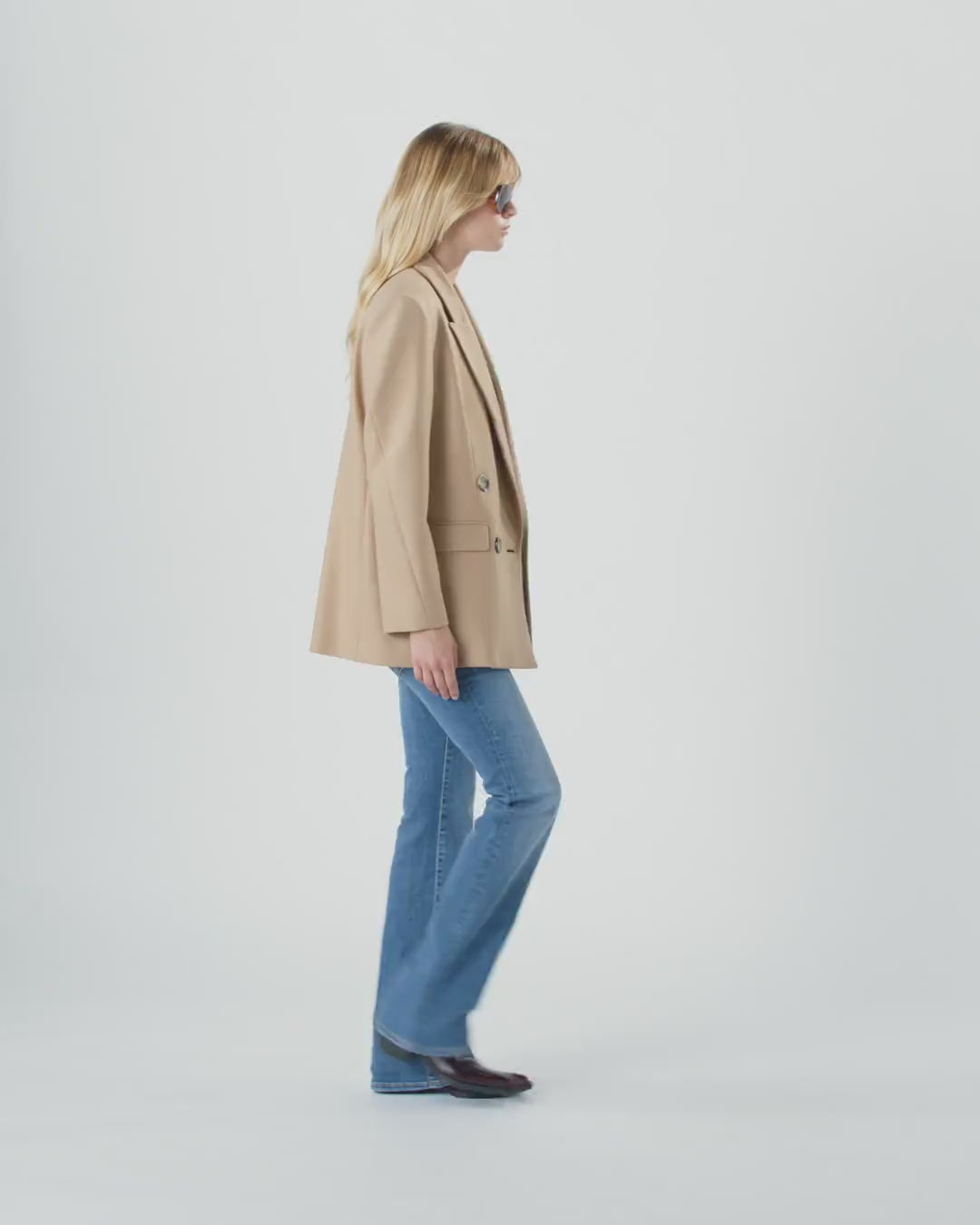 Zweireihige Jacke mit gerader Silhouette, hergestellt aus garngefärbtem Flanell aus Jersey in einem Wollmix, ein perfekter Stoff, um Weichheit, Elastizität und Komfort zu vereinen. Das klassisch inspirierte Modell hat einen Reverskragen, strukturierte Schultern, zwei Pattentaschen an den Seiten und einen Schlitz auf der Rückseite und ist gefüttert, um für ein angenehmes Gefühl beim Tragen zu sorgen. Wer hat gesagt, dass formelle Kleidung nicht auch bequem sein kann? Ihre Looks fürs Büro werden nie wieder dieselben sein.