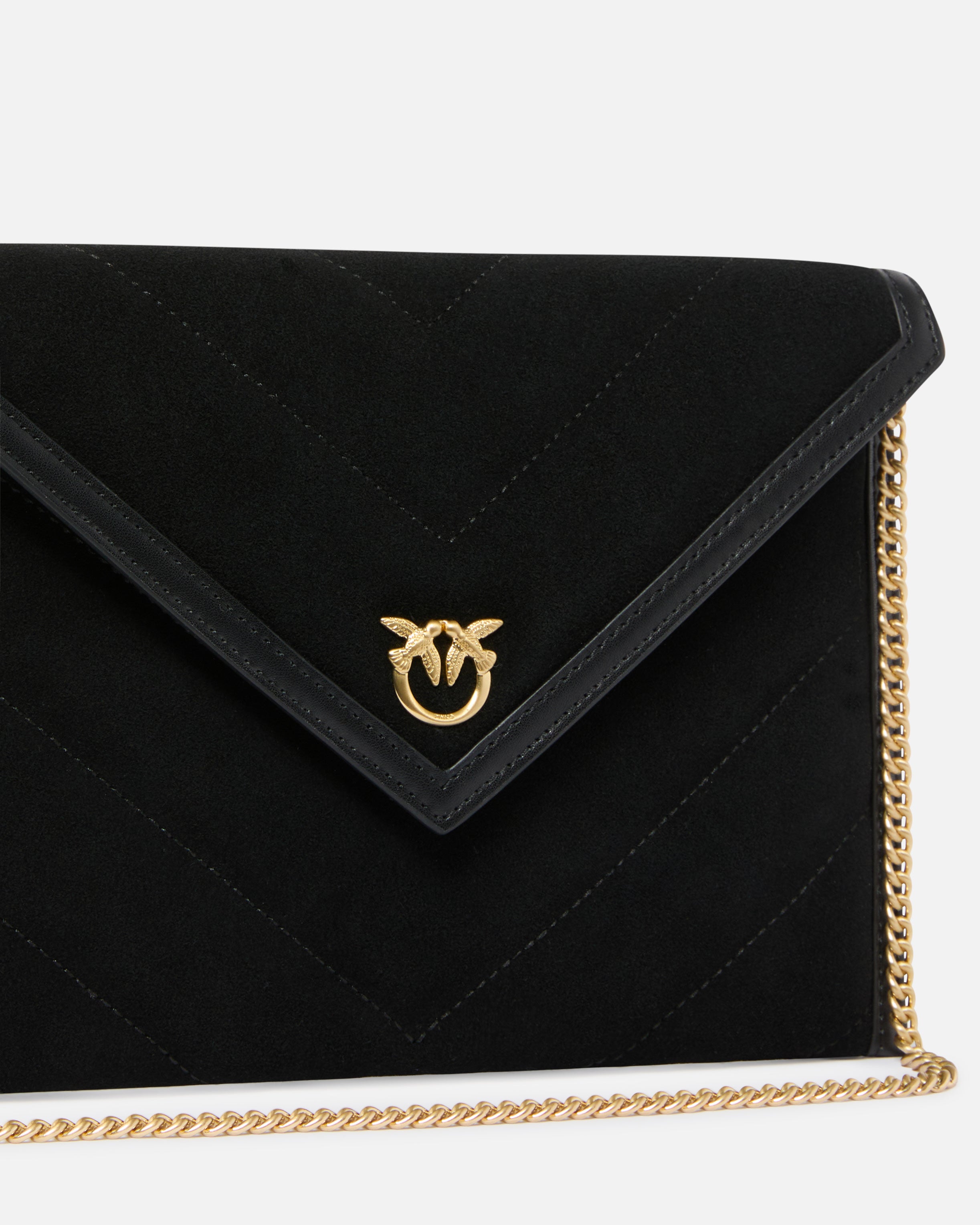 Beuteltasche aus Veloursleder mit Details aus Leder und Chevron-Muster, ausgestattet mit einem Innenfutter aus Baumwolle. Mit dem abnehmbaren Schulterriemen aus Kette mit einer Länge von 54 cm ist die Handtasche äußerst vielseitig und praktisch. Das Design wird durch das ikonische Logo Love Birds aus strapazierfähiger Galvanik abgerundet, das den einzigartigen Stil der Marke zum Ausdruck bringt. Dieses essentielle und raffinierte Accessoire ist das fehlende Puzzleteil Ihrer Tageslooks und anderer Outfits.