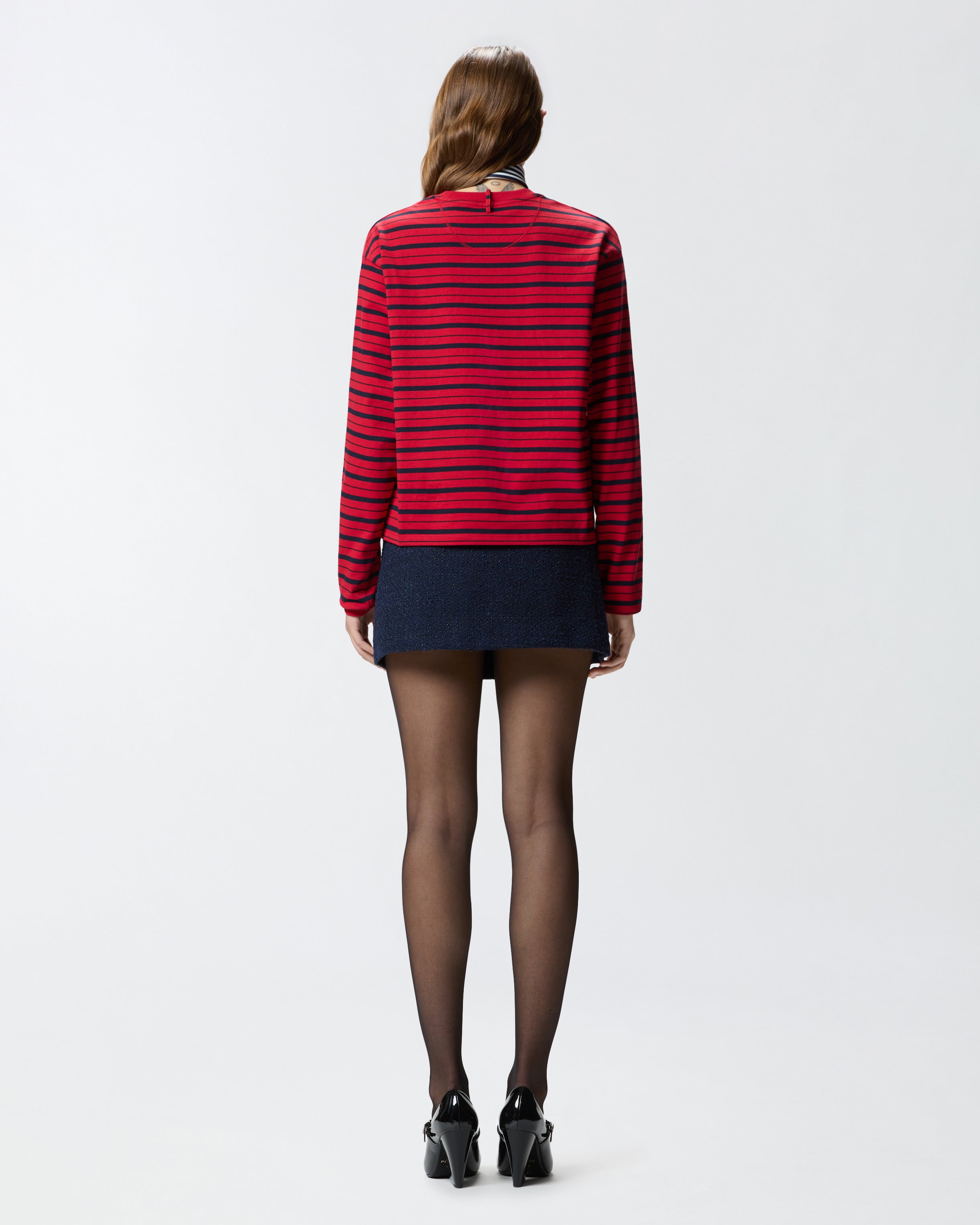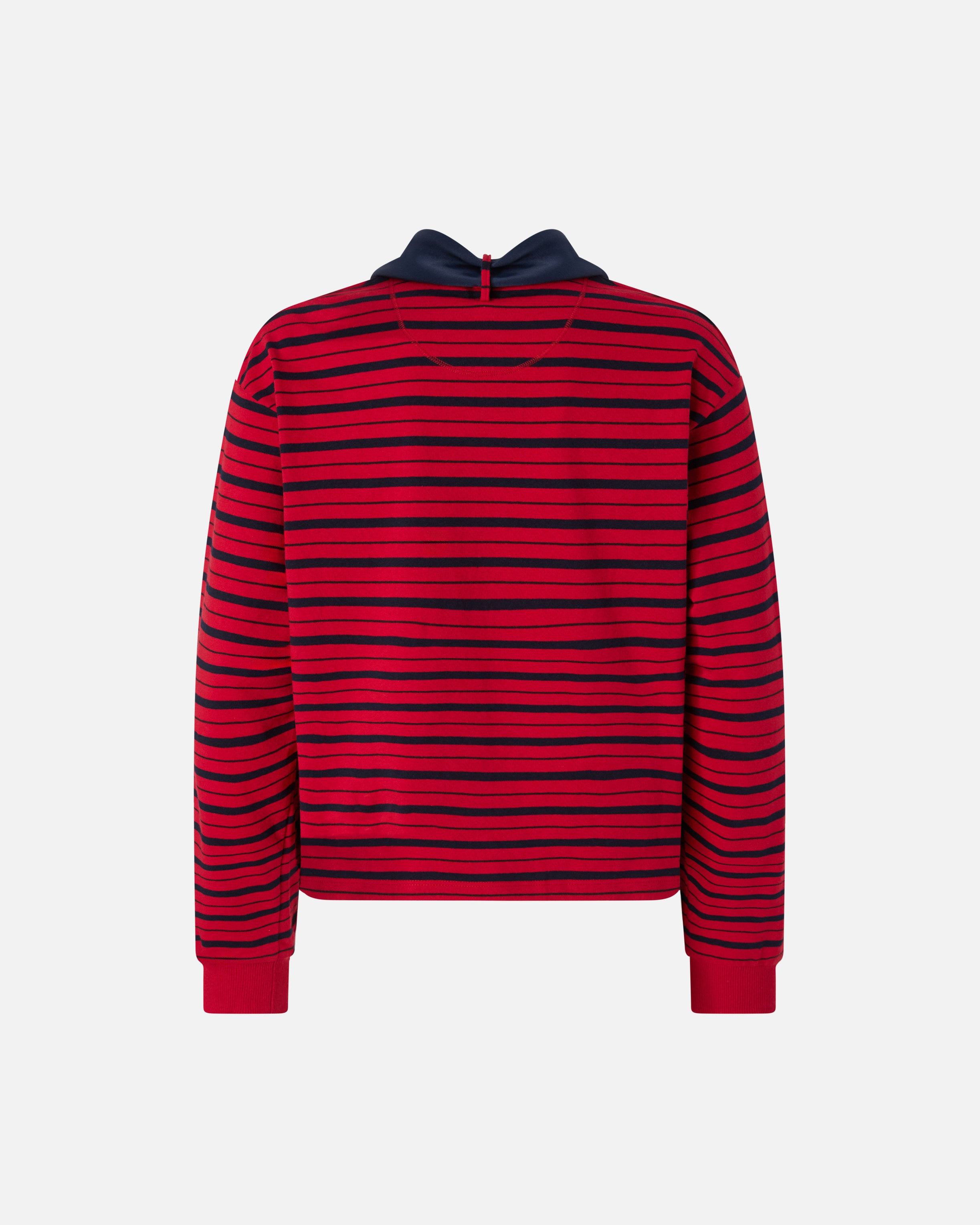 Langärmeliges Shirt aus reiner Baumwolle, personalisiert mit dem ikonischen PINKO-Logo als Lettering an der linken Brust. Das Modell zeichnet sich durch den kontrastierenden Print mit horizontalen Streifen und den Rundhalsausschnitt aus, der durch ein weiches, abnehmbares Halstuch ergänzt wird, das ebenfalls mit einem Streifenmuster verziert ist. Tragen Sie dieses von der Marine inspirierte Kleidungsstück für einen komfortablen und zeitlosen Look.