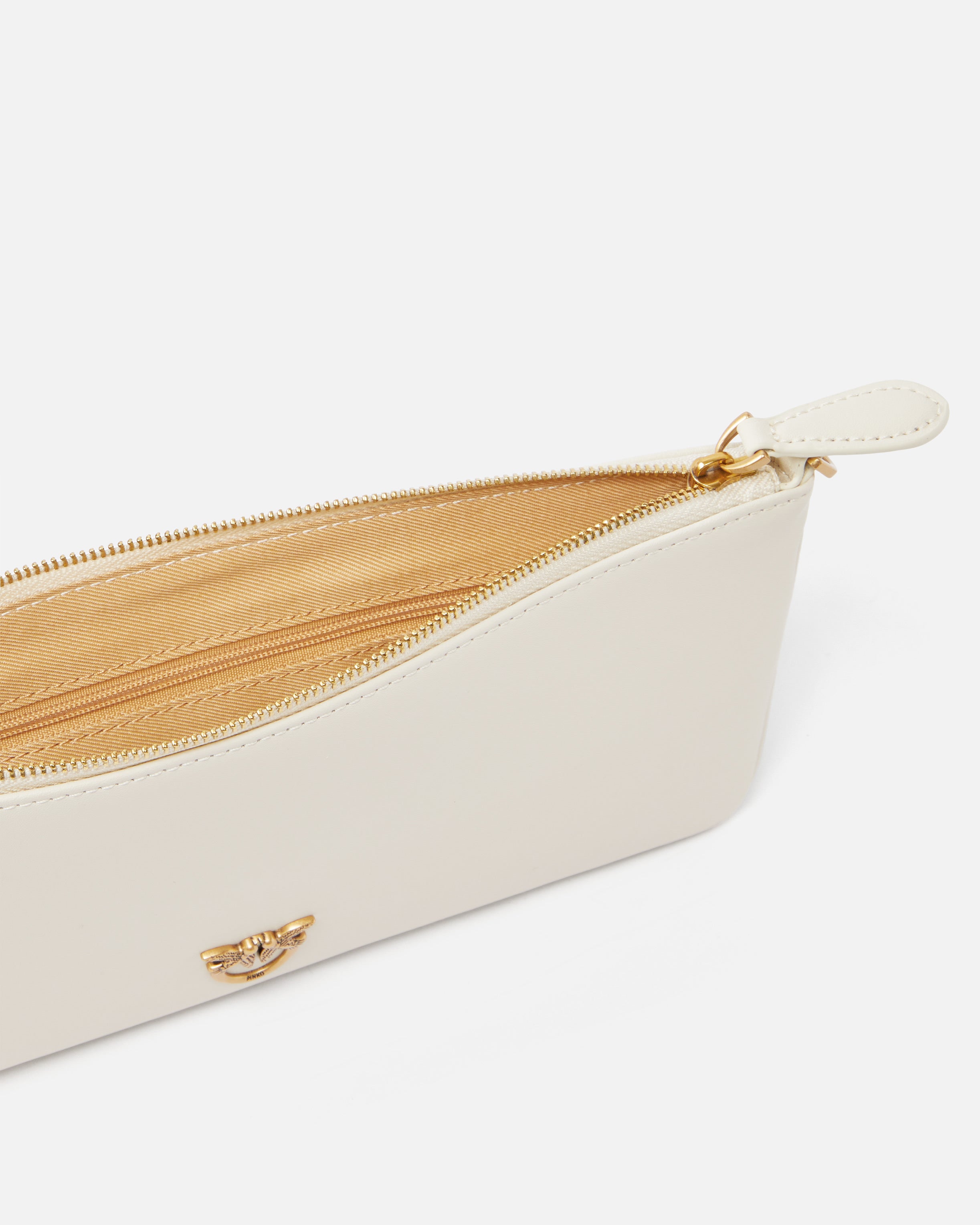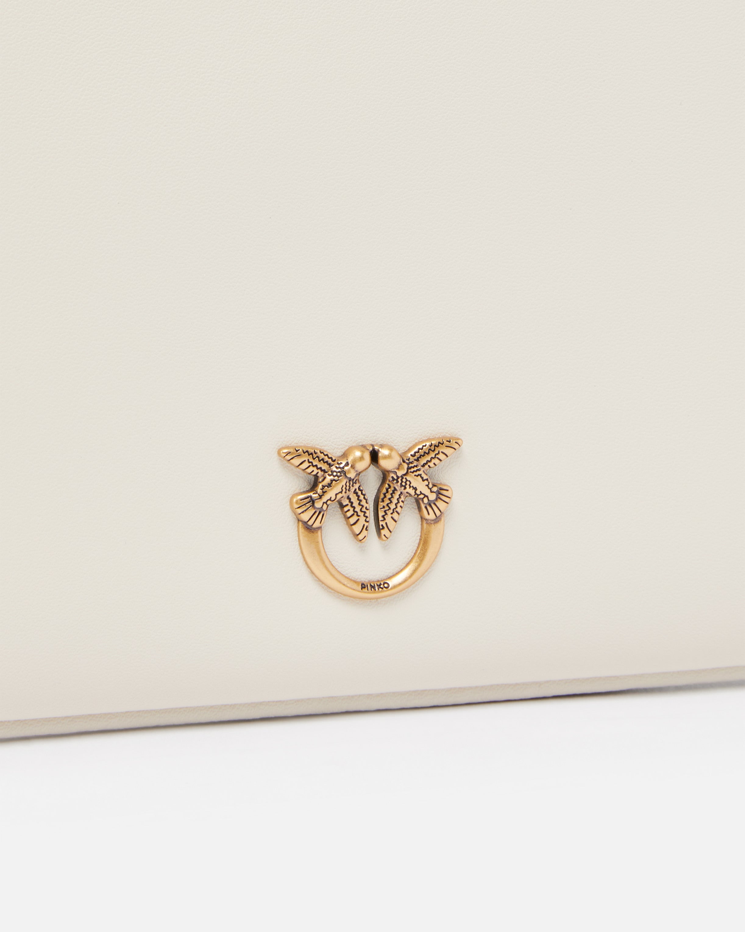Flache Umhängetasche in länglicher Form aus seidig weichem Leder. Mit Plakette Love Birds Diamond Cut, galvanisch beschichtet in Antikgold. Innenfutter aus Polycotton und schmale Schulterkette. Verschluss mit Reißverschluss. Aktivieren Sie Ihre PINKO-Tasche: Halten Sie Ihr Smartphone an die Love-Birds-Stickerei auf der Rückseite der Tasche, um die Echtheit Ihres Produkts zu überprüfen und für ein personalisiertes Erlebnis!