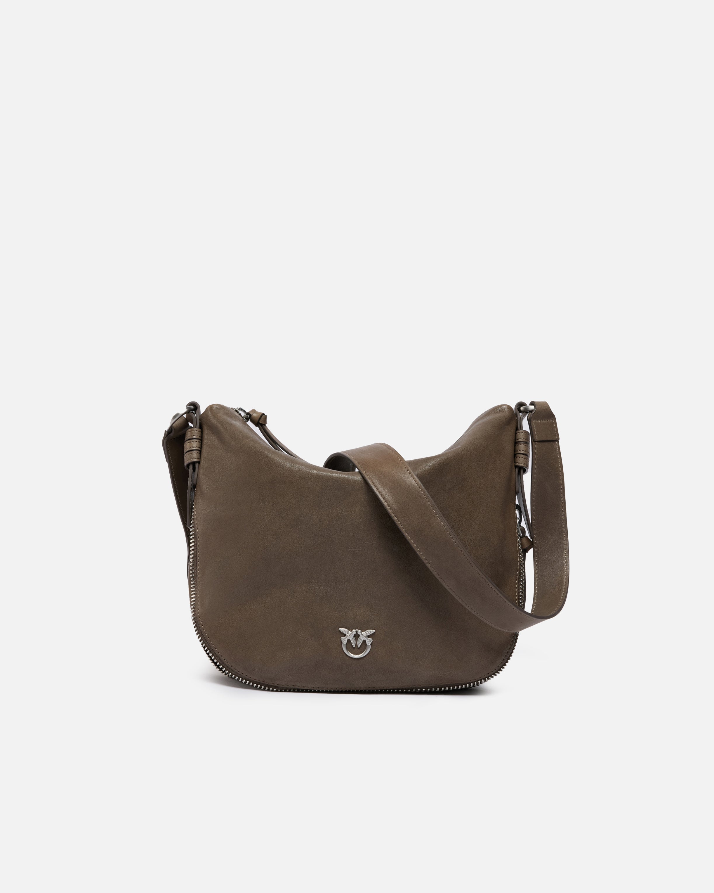 Kleine Hobo-Tasche aus weichem Leder mit praktischem Zip-around-Design und Innenfutter aus Baumwolle. Mit dem verstellbaren Schulterriemen aus Leder zum Tragen über der Schulter oder quer über den Körper, ist die Tasche äußerst vielseitig und praktisch für den Alltag. Das essentielle, aber gleichzeitig raffinierte Design wird durch das Logo Love Birds abgerundet, das den unnachahmlichen Stil von PINKO zum Ausdruck bringt. Aktivieren Sie Ihre PINKO-Tasche: Halten Sie Ihr Smartphone an die Love-Birds-Stickerei auf der Rückseite der Tasche, um die Echtheit Ihres Produkts zu überprüfen und um ein personalisiertes Erlebnis zu genießen!