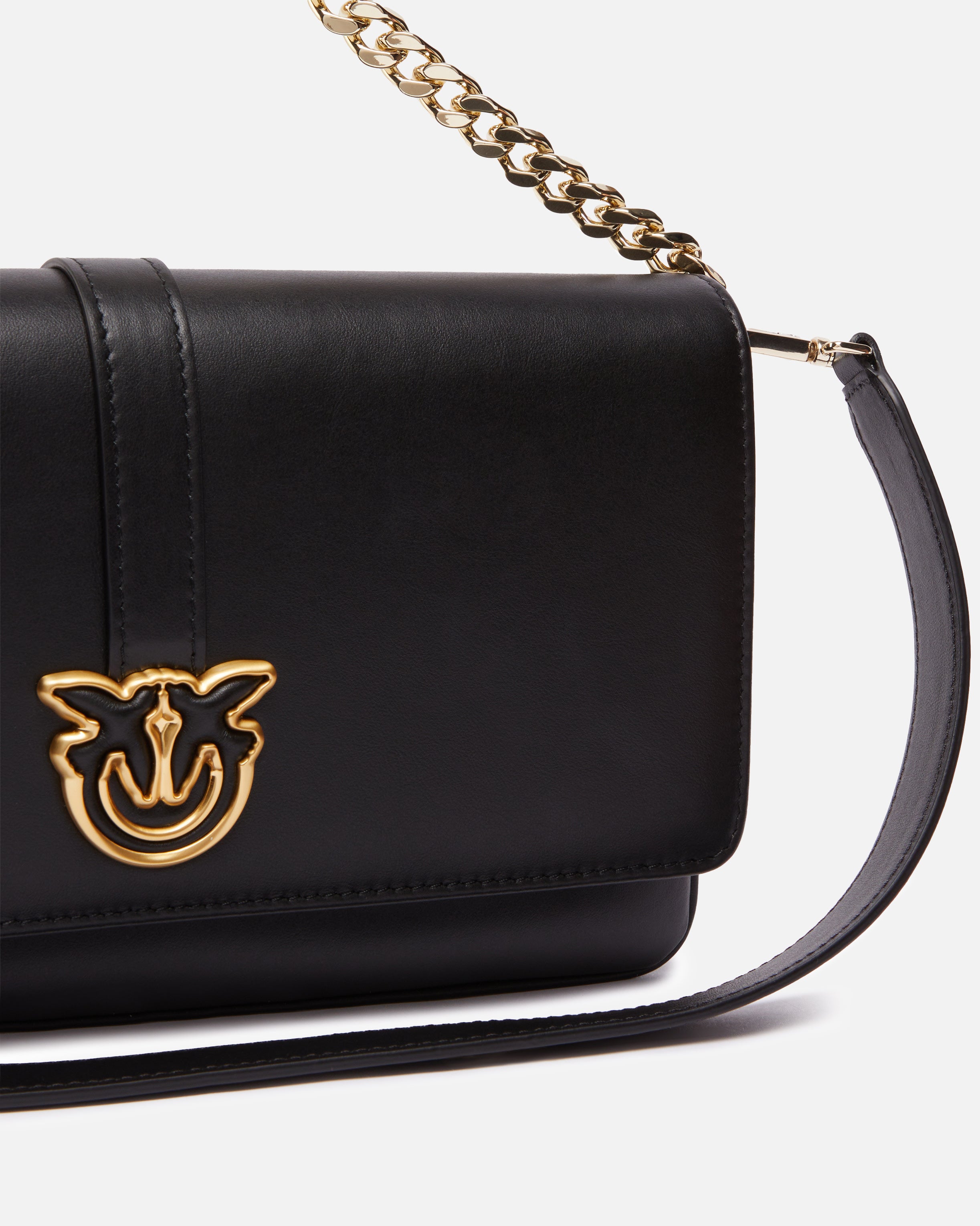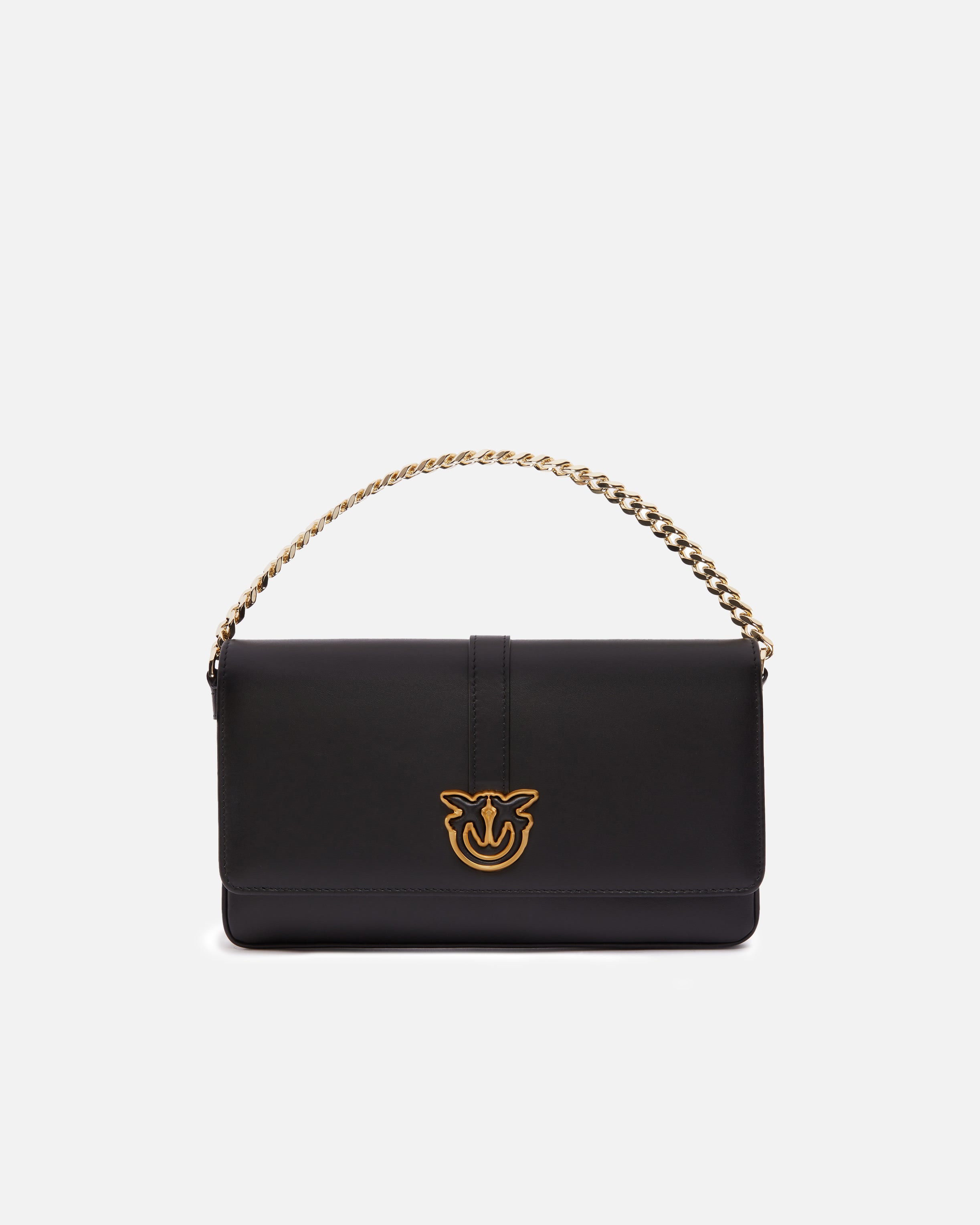 Elegant rectangular shoulder bag made of high quality leather with a soft and smooth texture. The bag is complete with a metal chain shoulder strap for carrying on the shoulder or by hand, and also includes a removable leather shoulder strap to carry the bag over the shoulder. The hidden magnetic closure is finished with a Love Birds Diamond Cut bird logo detail profiled in metal that adds a precious and iconic touch. The bag is built with a double compartment, and also includes a small pocket closed with a zip, for better organization of space and your essentials. Perfect for special occasions and ceremonies, this handbag is a symbol of a classic style, which never tires. The bag is part of the special Limited Edition capsule collection made in a limited edition exclusively for PINKO Galleria. Use the special NFC chip to live a special experience dedicated to the bag you have purchased!