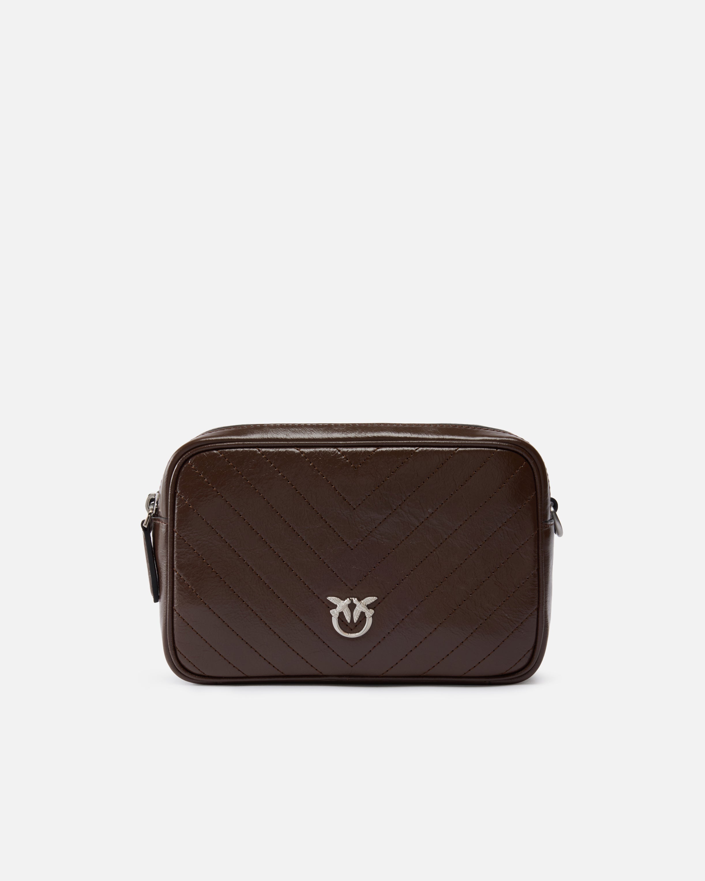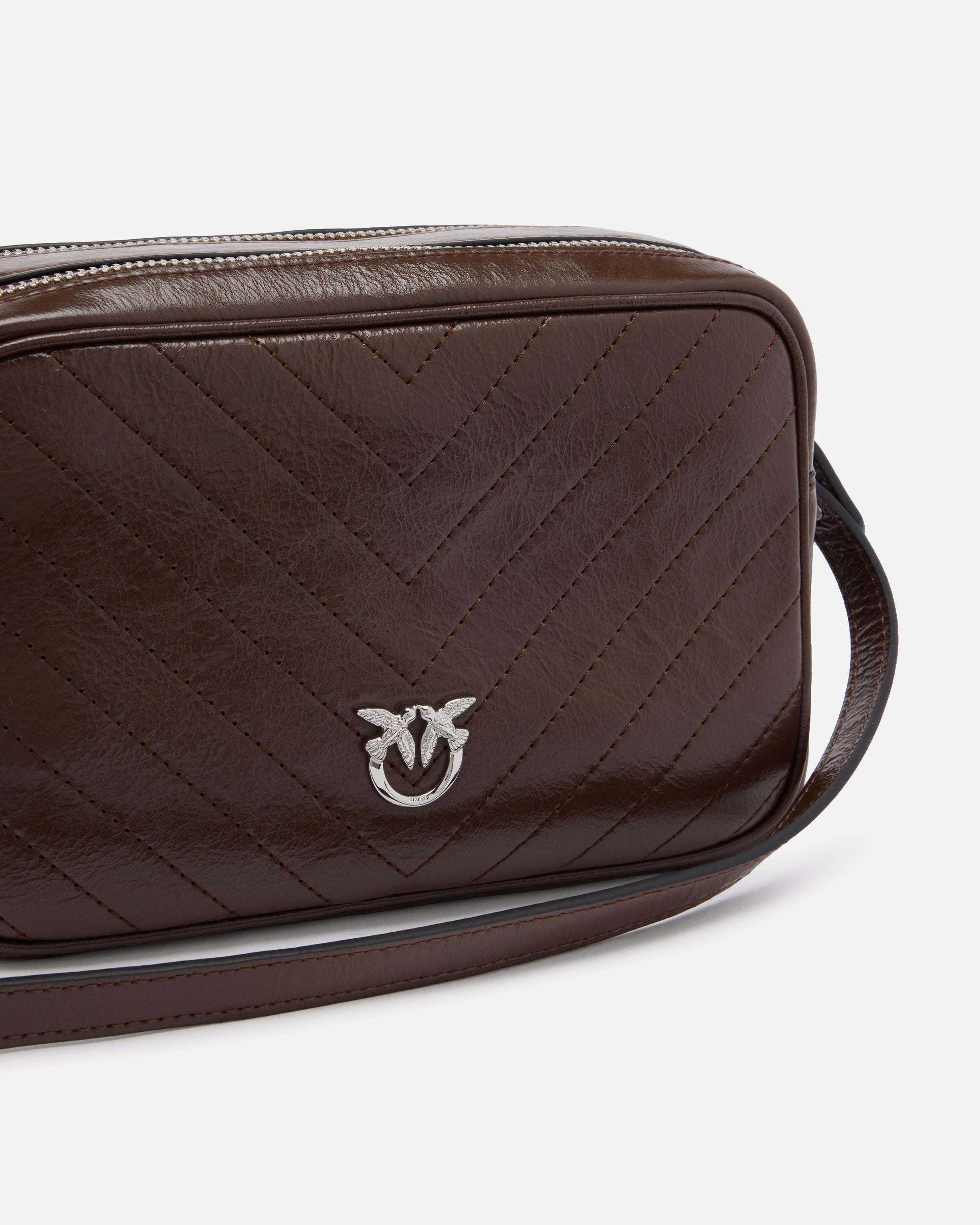 Mittelgroße Tasche im Stil einer Camera Bag mit Innenfutter aus Baumwolle. Die Tasche besteht aus Leder mit Wrnkle-Textur, leicht gekräuselt, und mit Steppnähten im Chevron-Muster. Dank des verstellbaren Schulterriemens aus Leder zum Tragen in der Hand oder über der Schulter ist die Tasche äußerst vielseitig und praktisch. Diese Tasche ist ein unverwechselbares Accessoire für zahllose Looks und verfügt über einen doppelten Reißverschluss und Innentaschen, in denen Sie Ihre wichtigsten Utensilien sicher aufbewahren können. Das raffinierte Design wird durch das Logo Love Birds abgerundet, das den unnachahmlichen Stil der Marke zum Ausdruck bringt. Aktivieren Sie Ihre PINKO-Tasche: Halten Sie Ihr Smartphone an die Love-Birds-Stickerei auf der Rückseite der Tasche, um die Echtheit Ihres Produkts zu überprüfen und um ein personalisiertes Erlebnis zu genießen!