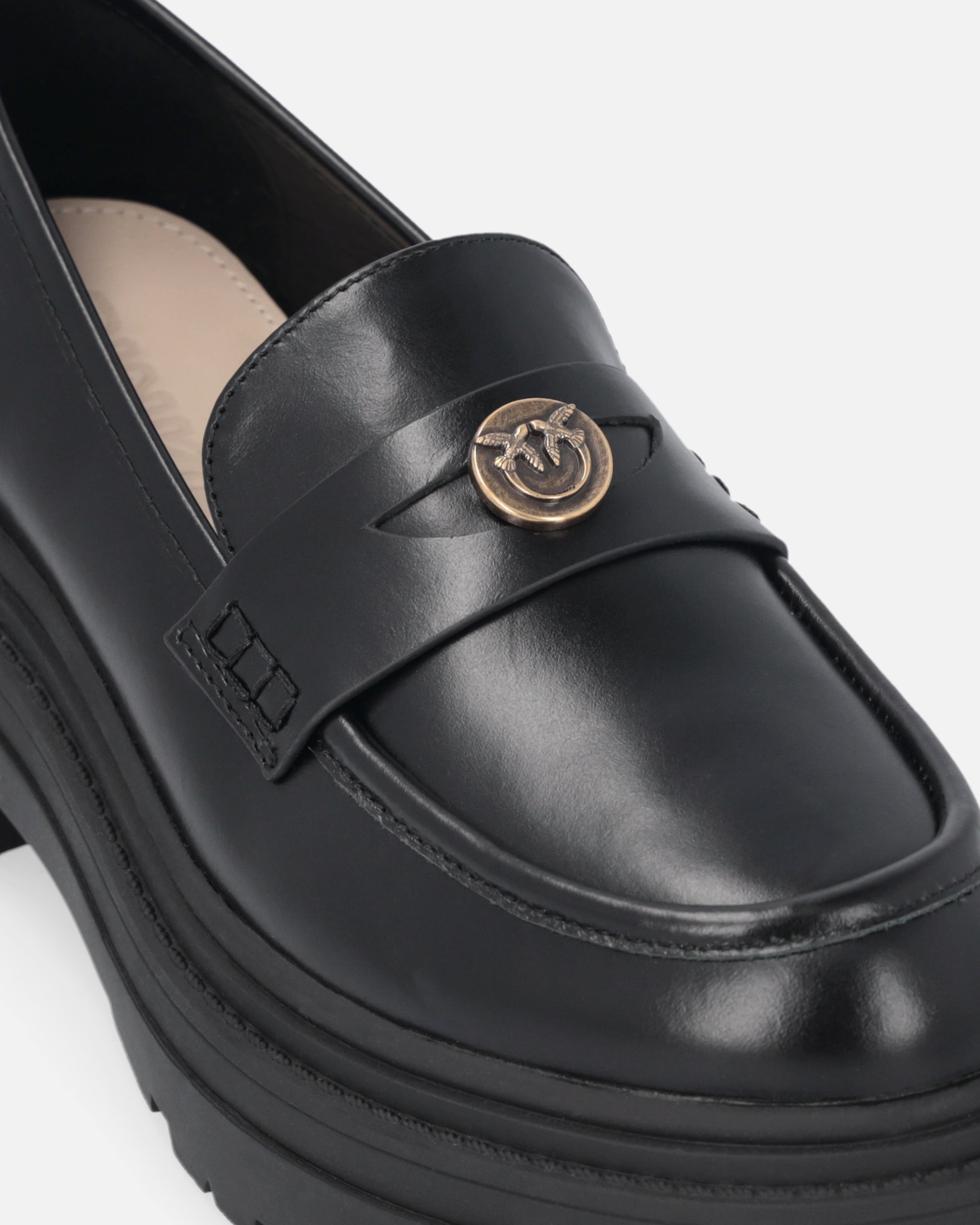 Mokassins aus weichem Leder mit minimalistischem, aber hervorstechendem Design. Die 5,5 cm hohe Plateausohle aus Gummi verleiht dem Modell Robustheit und Charakter, aber für den letzten Schliff sorgt die kleine Plakette mit dem Logo Love Birds, das den unnachahmbaren Stil der Marke zum Ausdruck bringt. Oft liegt die Antwort in der Einfachheit: Dieses essentielle, aber wirkungsvolle Accessoire ist perfekt für einen kühnen Mood. Vervollständigen Sie den Look mit einer Jeans für einen lässigen, aber stilvollen Look.