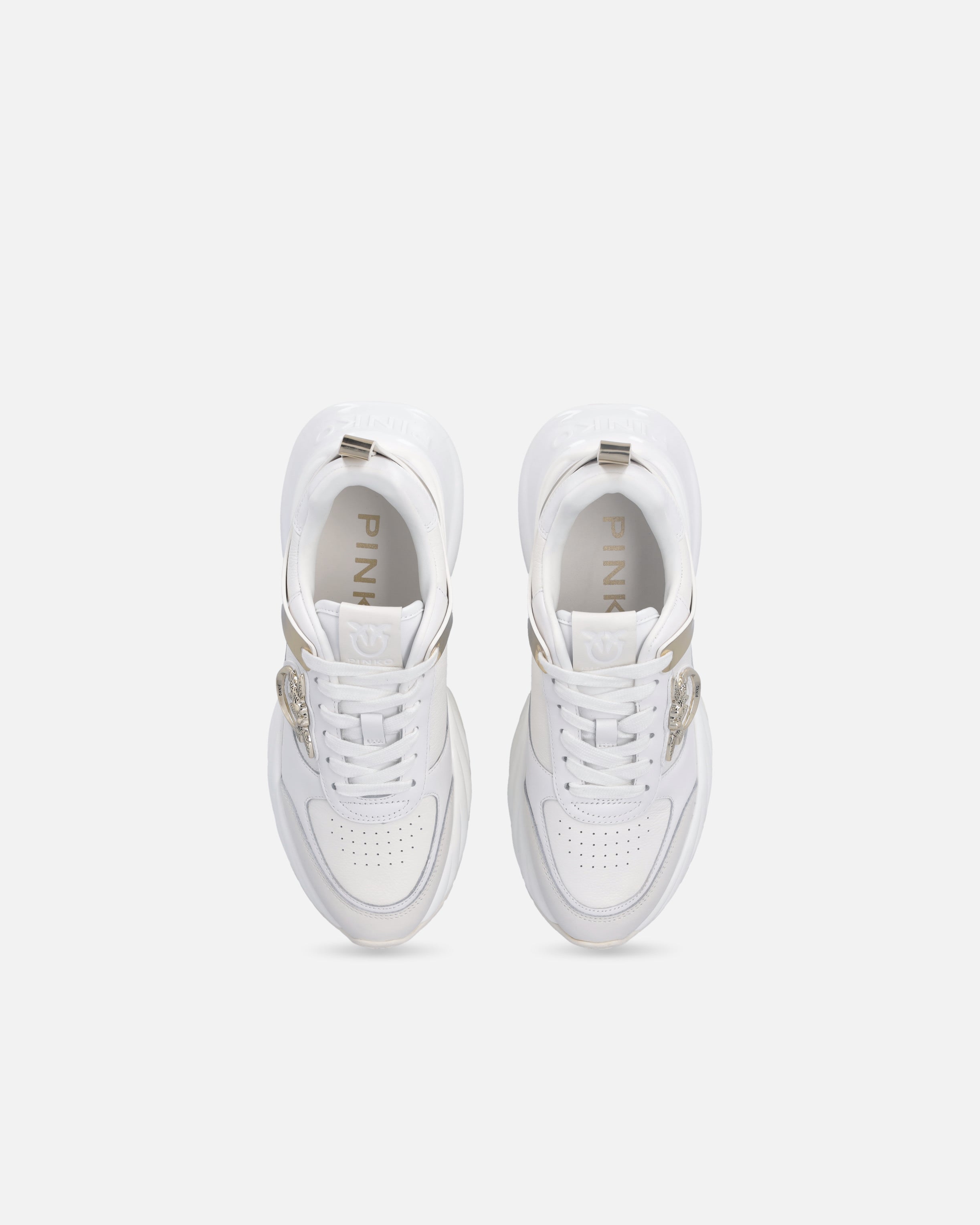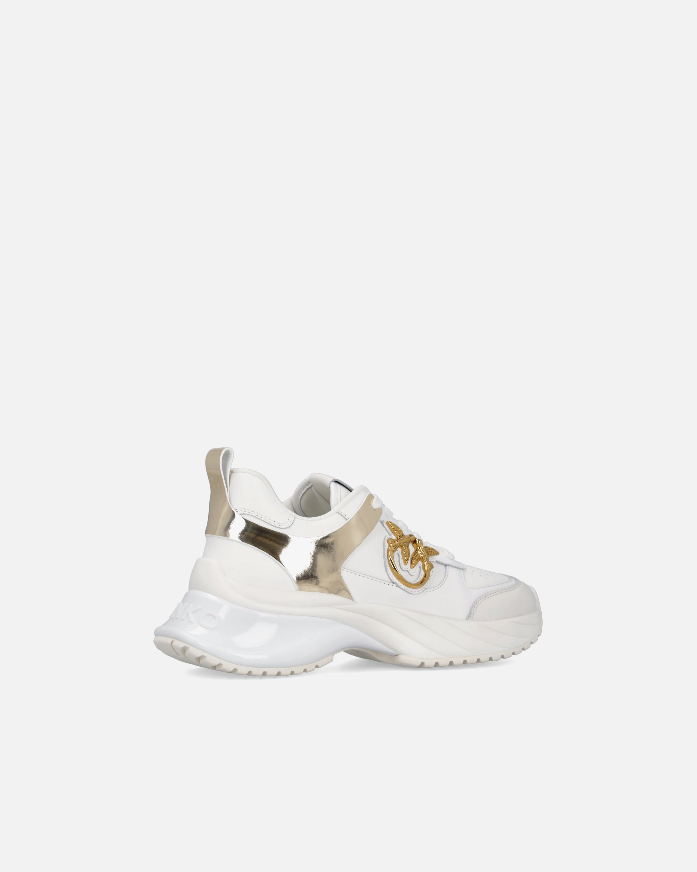 Sneakers aus Leder mit Walkleder-Einsätzen und Metallic-Detail in Spiegeloptik. Personalisierung mit einer kleinen Love Birds-Logoplakette aus Metall auf der Außenseite. Running-Sohle aus Gummi, Spoiler aus TPU, Textilfutter und Innensohle aus Leder.