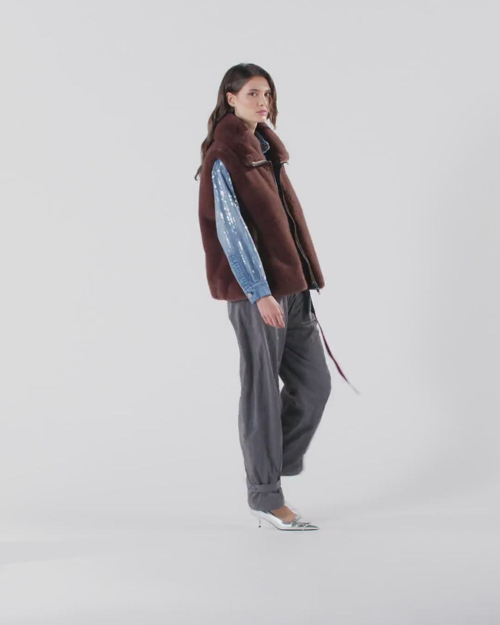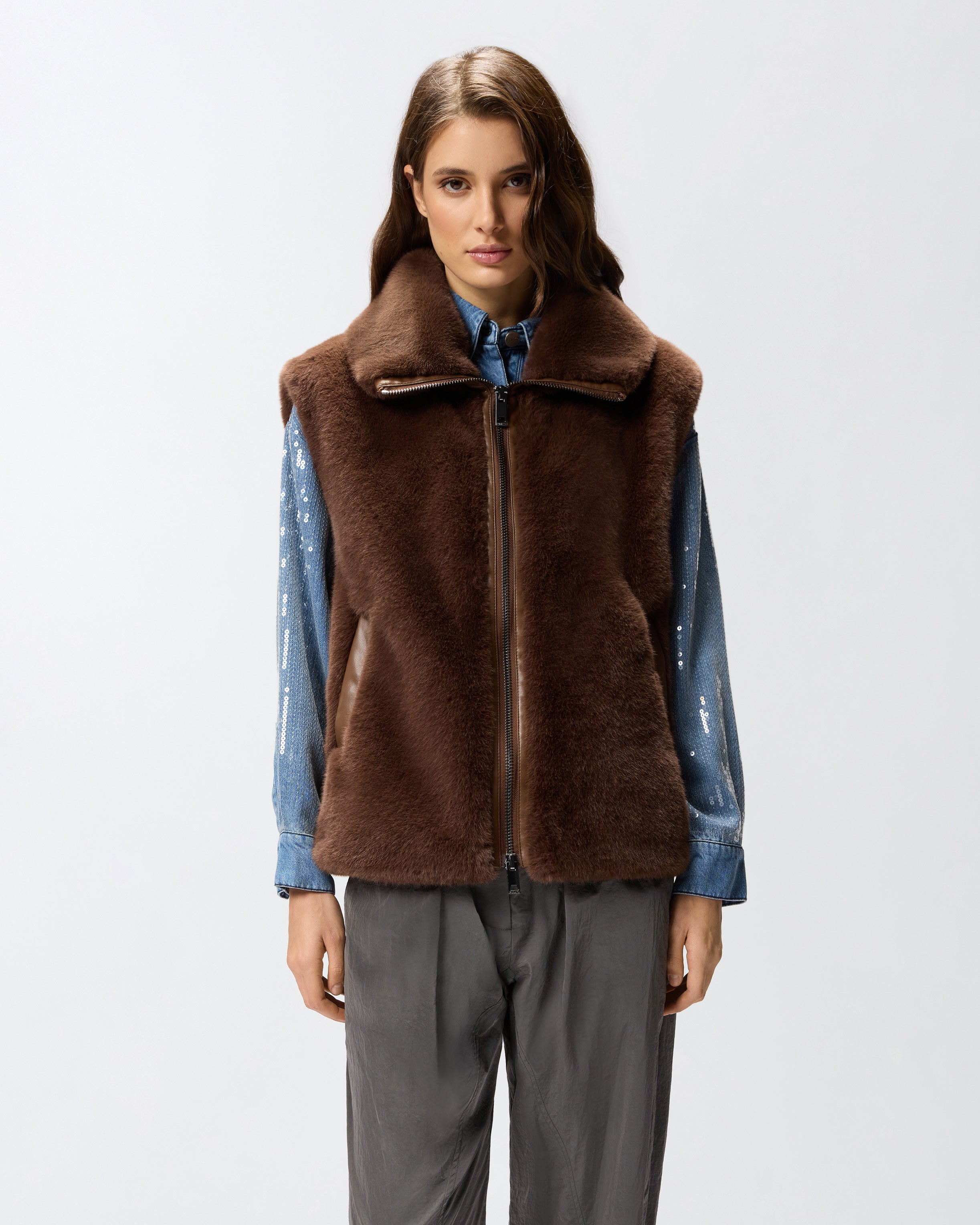Weste aus Aspen-Gewebe in Pelzoptik mit hohem Kragen, durchgehendem Reißverschluss auf der Vorderseite und praktischen Seitentaschen. Zeigen Sie sich an den kältesten Tagenmit diesem auffälligen Design der Wintergarderobe im Stil von PINKO. Das Kleidungsstück ist besonders vielseitig, kombinieren Sie es einfach mit einem raffinierten Rock oder einer Jeans für legere Anlässe.