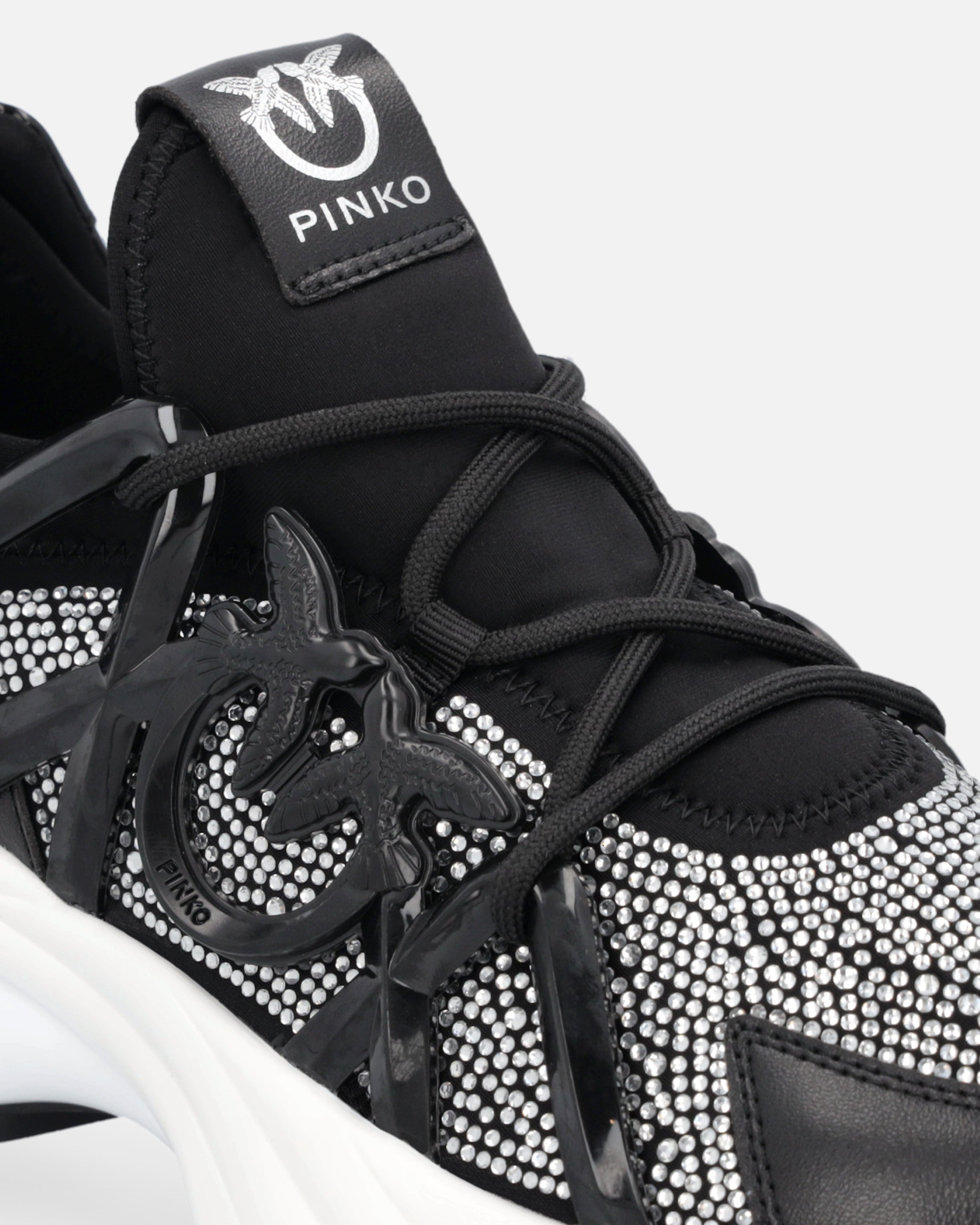 Slip-on Ariel sneakers in technical neoprene-effect fabric embellished with rhinestones. Tubular laces and raised side detail customised with Love Birds logo. Rubber running sole, TPU spoiler, fabric lining and leather insole.