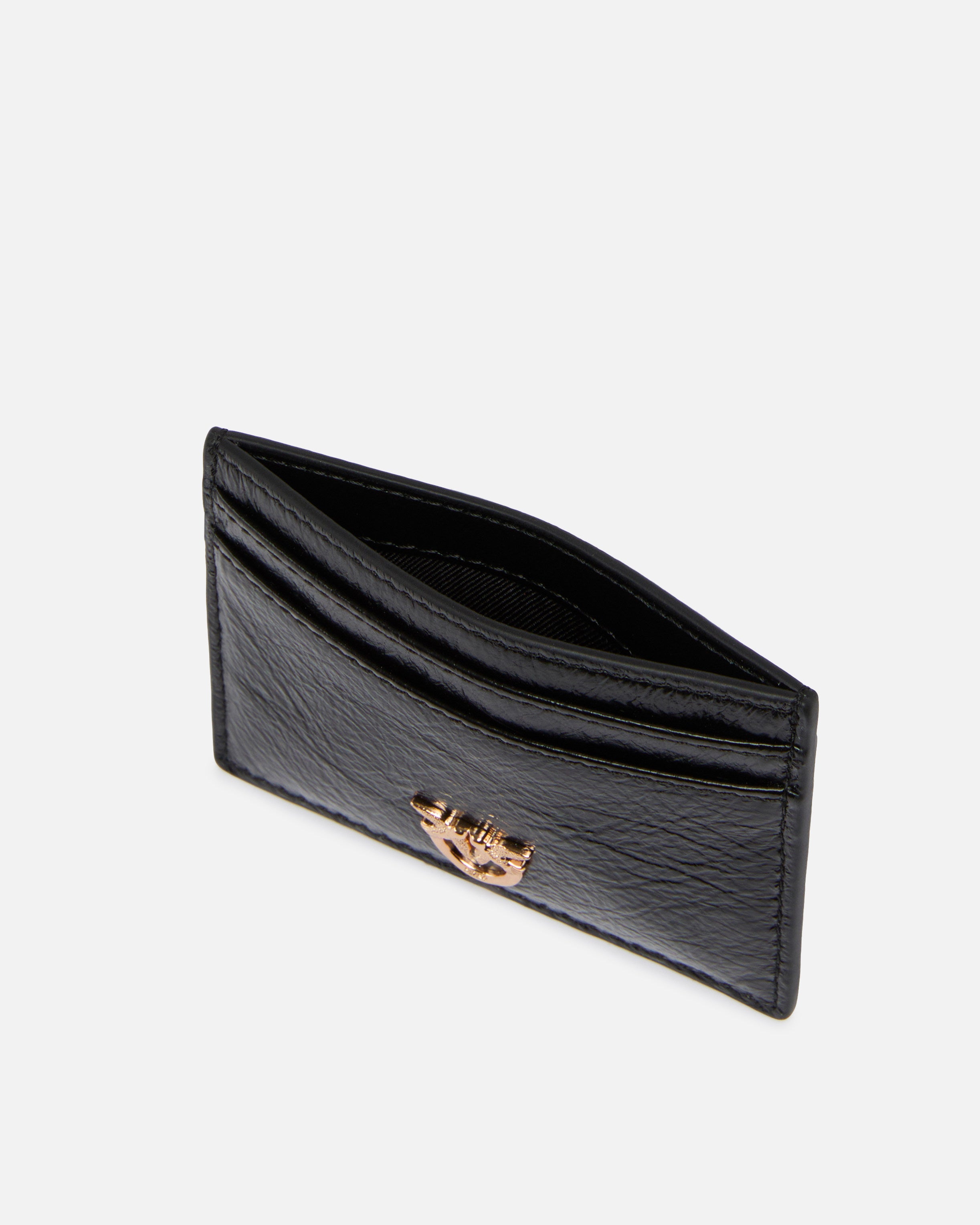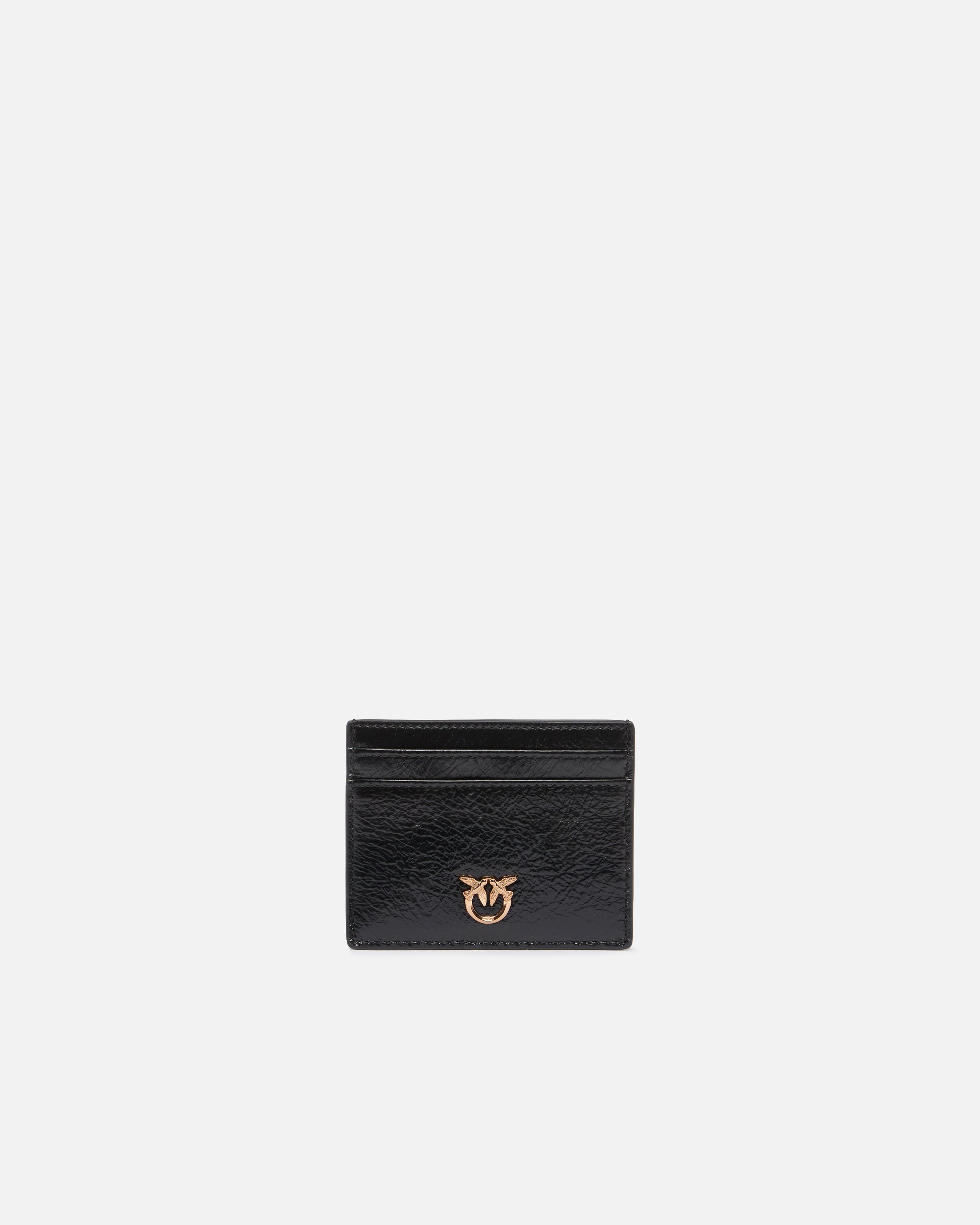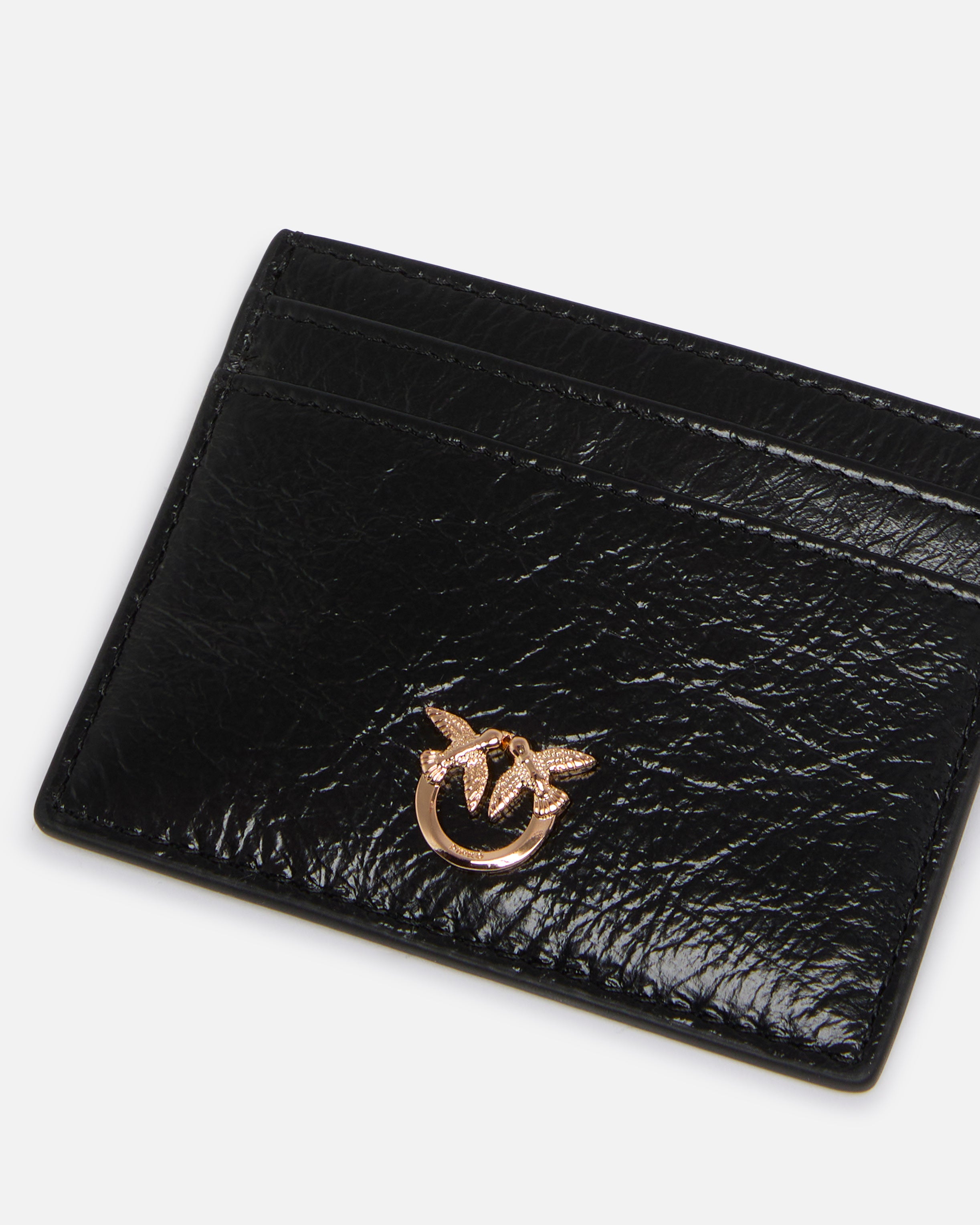 Vintage-effect shiny leather card holder, complete with various slots for cards and documents and customised with a plaque depicting the iconic Love Birds Diamond Cut logo on the front. Essential and refined, this style fits easily into any bag and is perfect for on-the-go. Activate your PINKO accessory: verify the authenticity of your product and access a personalised experience by scanning the Love Birds embroidery on the back with your smartphone!