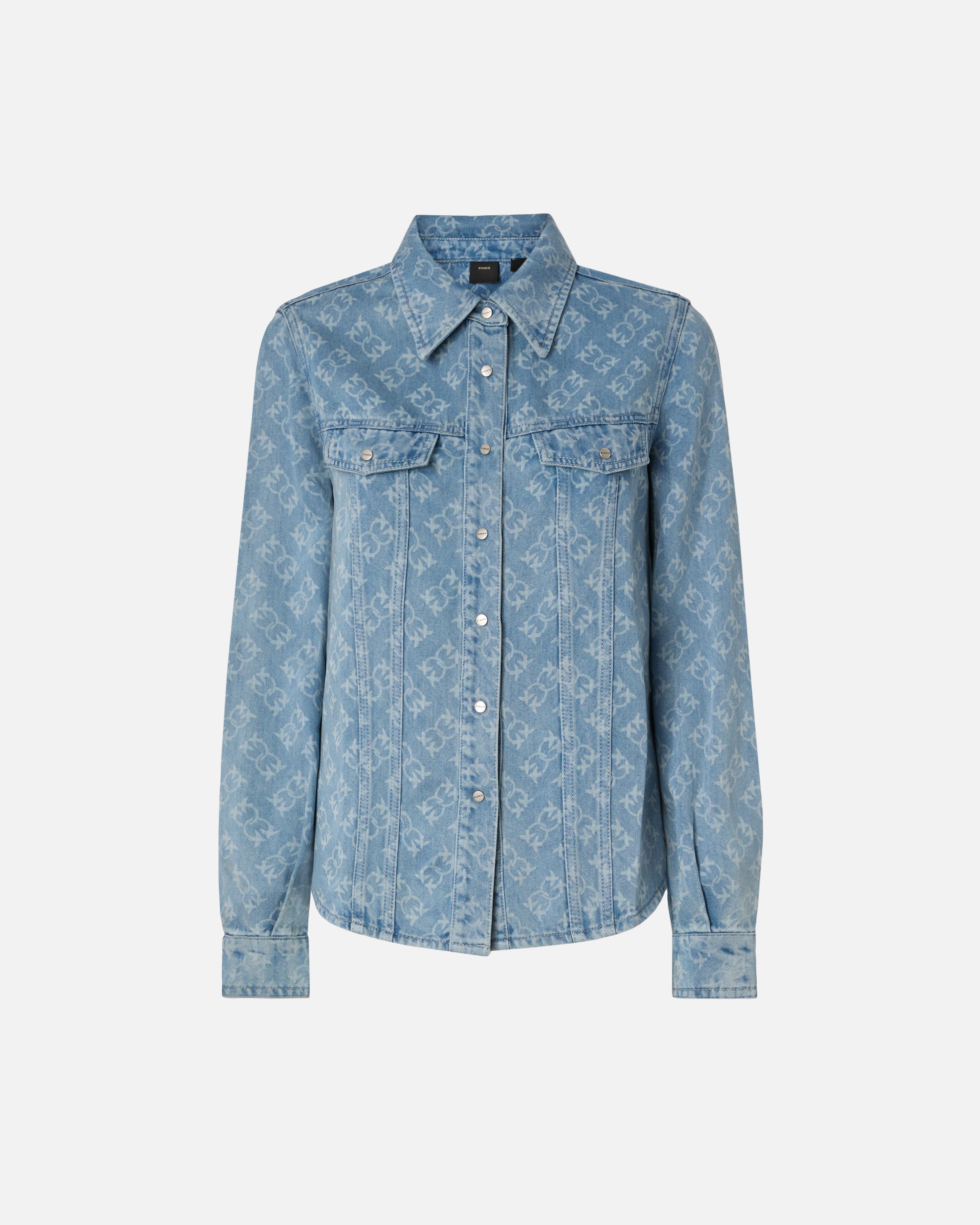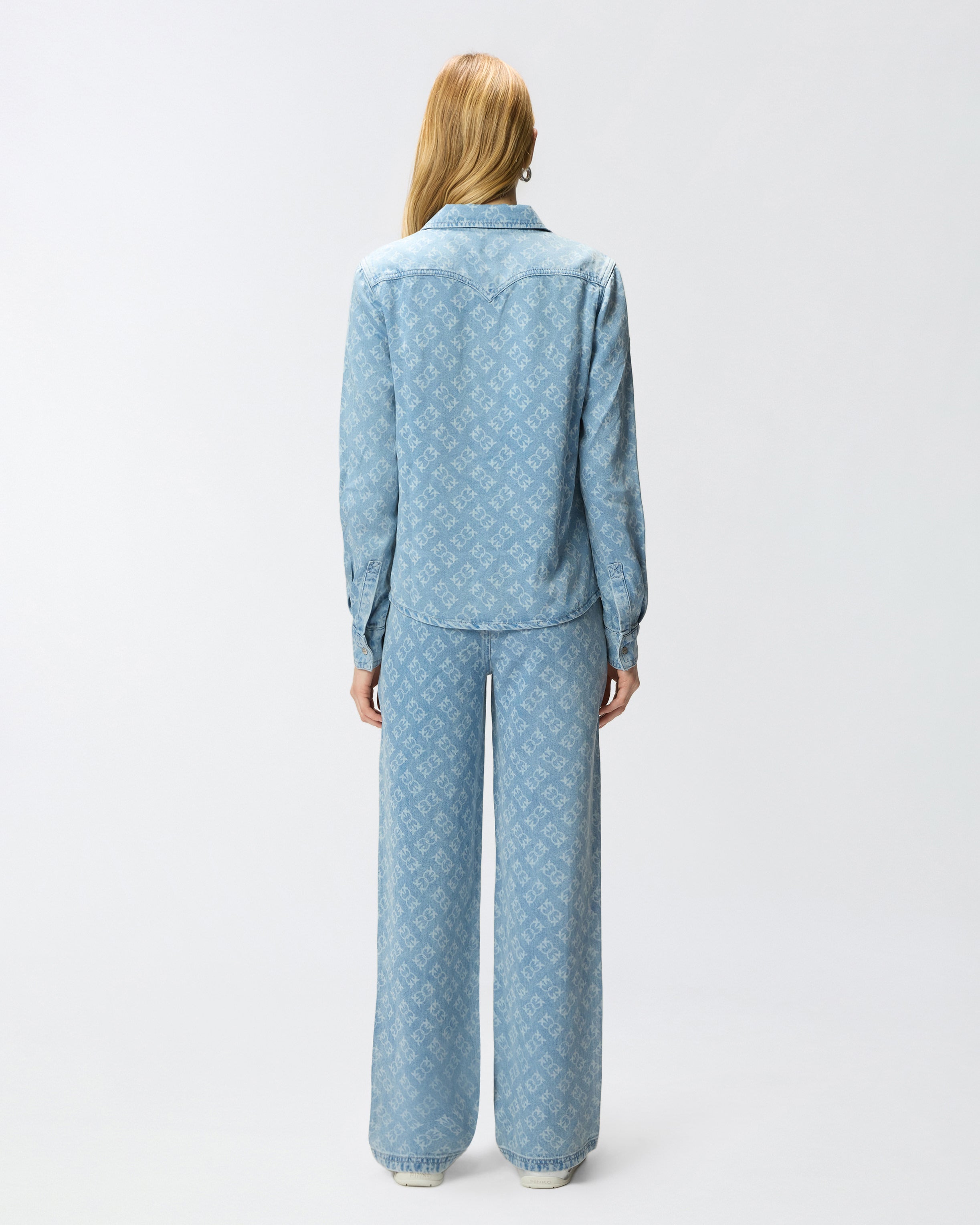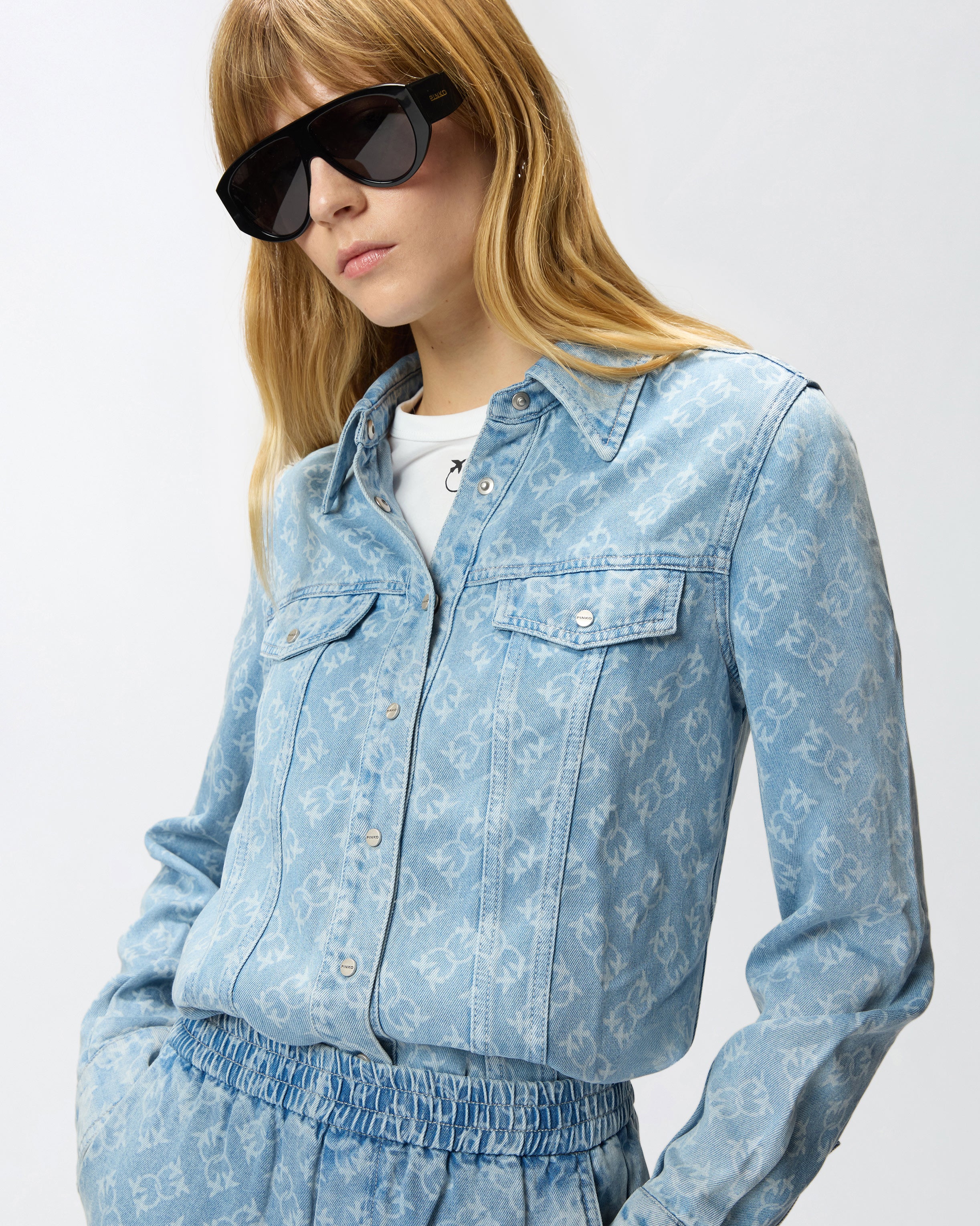 This garment runs one size small. Long-sleeved shirt in fluid-feeling pure lyocell denim with light wash and slight discolouration for an alluring worn-in effect. This model features an all-over print with the iconic Love Birds logo, two pockets with buttoned flap on the chest and button fastening. This versatile, modern shirt—ideal as an overshirt, too—can be styled in various ways: try it with the matching trousers for a timeless head-to-toe denim look. - MARQUISE SHIRT