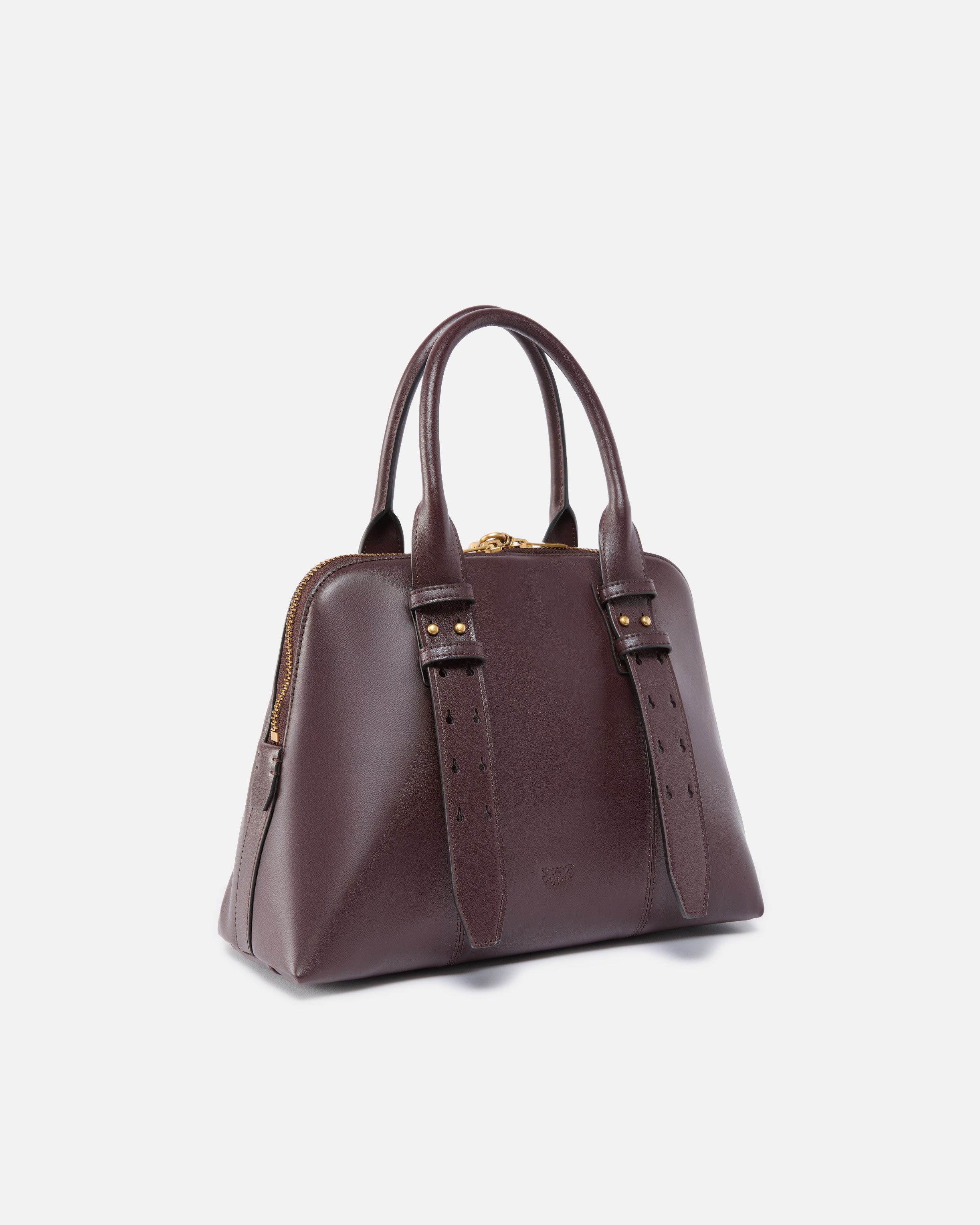 Escape Bag medium bowling handbag made entirely from soft leather. Featuring an adjustable and detachable leather shoulder strap and double handle so it can be carried by hand or on the shoulder, the bag is very versatile and practical. The model features a functional padlock that opens and closes with a key contained in the matching charm, while the finishing touch is provided by the small Love Birds logo plaque symbolising the brand's singular style. The zip fastening at the top opens to reveal a cotton-lined interior with a single zipped slip pocket. Activate your PINKO bag: verify the authenticity of your product and access a personalised experience by scanning the Love Birds embroidery on the back of the bag with your smartphone! - BOWLING BAG MEDIUM