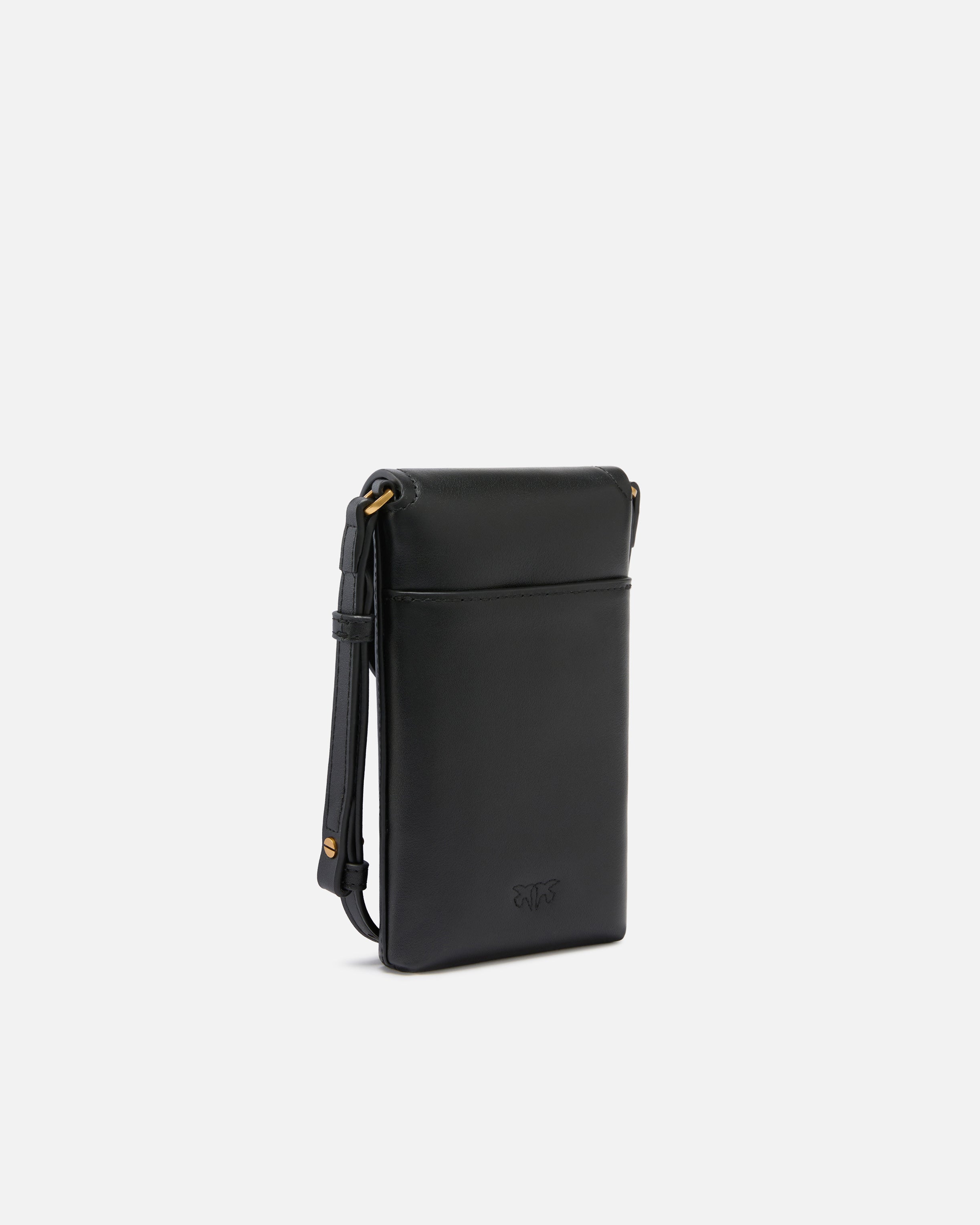 Soft leather smartphone case with convenient rear pocket and adjustable matching leather shoulder strap for crossbody wear. In an exquisite touch, the small flap closure is accompanied by decorative metal rings that form the iconic PINKO logo lettering. Activate your PINKO accessory: verify the authenticity of your product and access a personalised experience by scanning the Love Birds embroidery on the back with your smartphone! - SADDLE PHONE CASE BELT