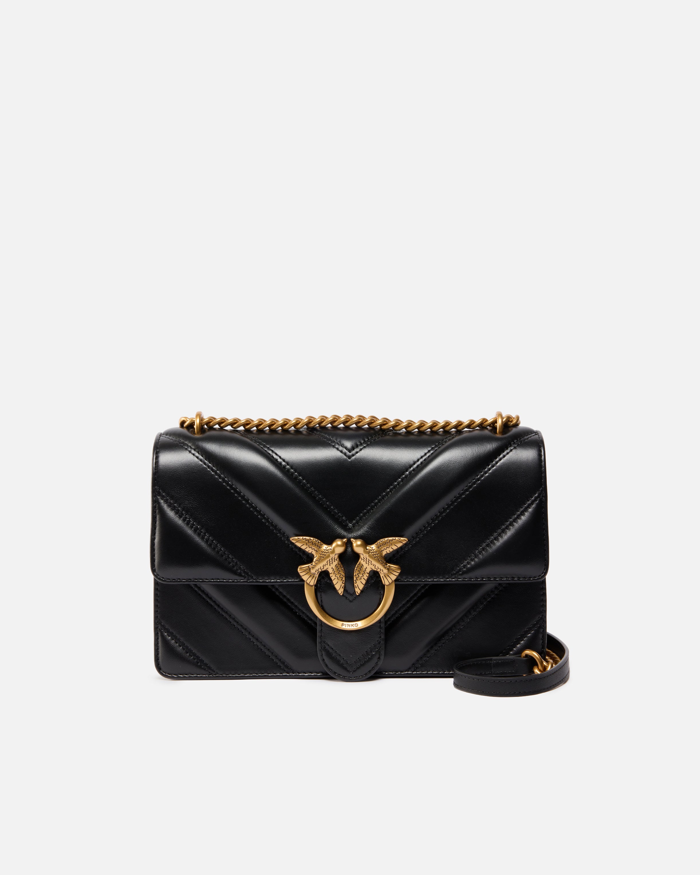 Love Bag One Light medium handbag in nappa leather with chevron-patterned quilting and light, unstructured construction. Featuring an adjustable sliding chain strap with leather pad for hand carry or shoulder or crossbody wear, this bag is very versatile and practical. The flap fastening is accompanied by the timeless buckle featuring the Love Birds Diamond Cut logo. The accessory features a cotton drill-lined interior and a zipped slip pocket. Activate your PINKO bag: verify the authenticity of your product and access a personalised experience by scanning the Love Birds embroidery on the back of the bag with your smartphone!