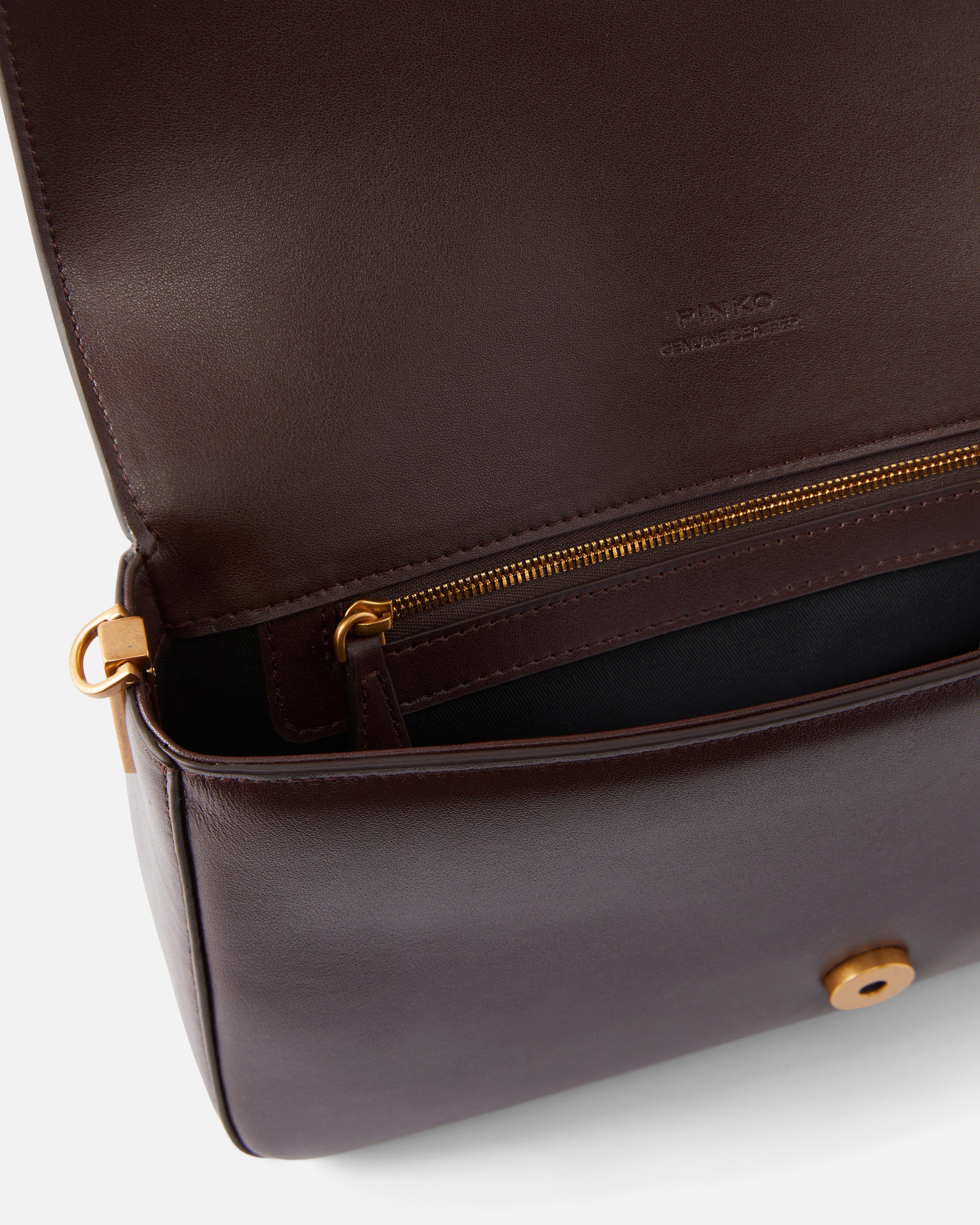 Love Bag One Slouchy medium handbag in soft leather. This item features two shoulder straps: an ultra-versatile chain one with adjustable leather shoulder pad and a more original, adjustable leather one with decorative charm and special shoulder pad adorned with metal rings. The flap fastening is accompanied by small metal studs and a buckle featuring the Love Birds Diamond Cut logo. The accessory features a cotton drill-lined interior and a zipped slip pocket. Activate your PINKO bag: verify the authenticity of your product and access a personalised experience by scanning the Love Birds embroidery on the back of the bag with your smartphone!