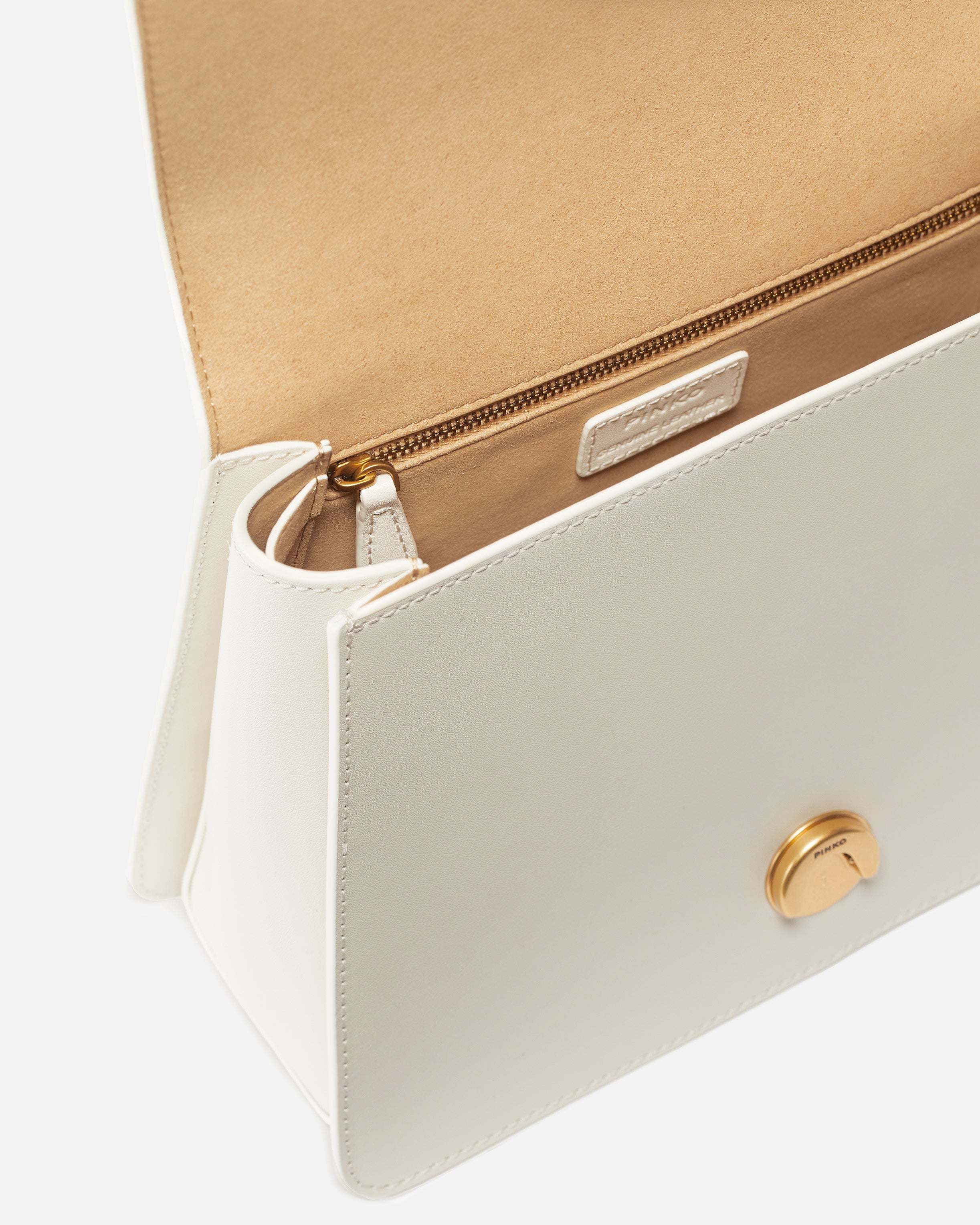 Mini Love Bag One Top Handle Light in soft, silky leather with a light, deconstructed design. The fastening is embellished with the iconic metal Love Birds Diamond Cut buckle. The accessory boasts a microsuede-lined interior and a zipped slip pocket. Adjustable and removable leather shoulder strap, and top handle. - LOVE ONE TOP HANDLE CLASSIC LIGHT