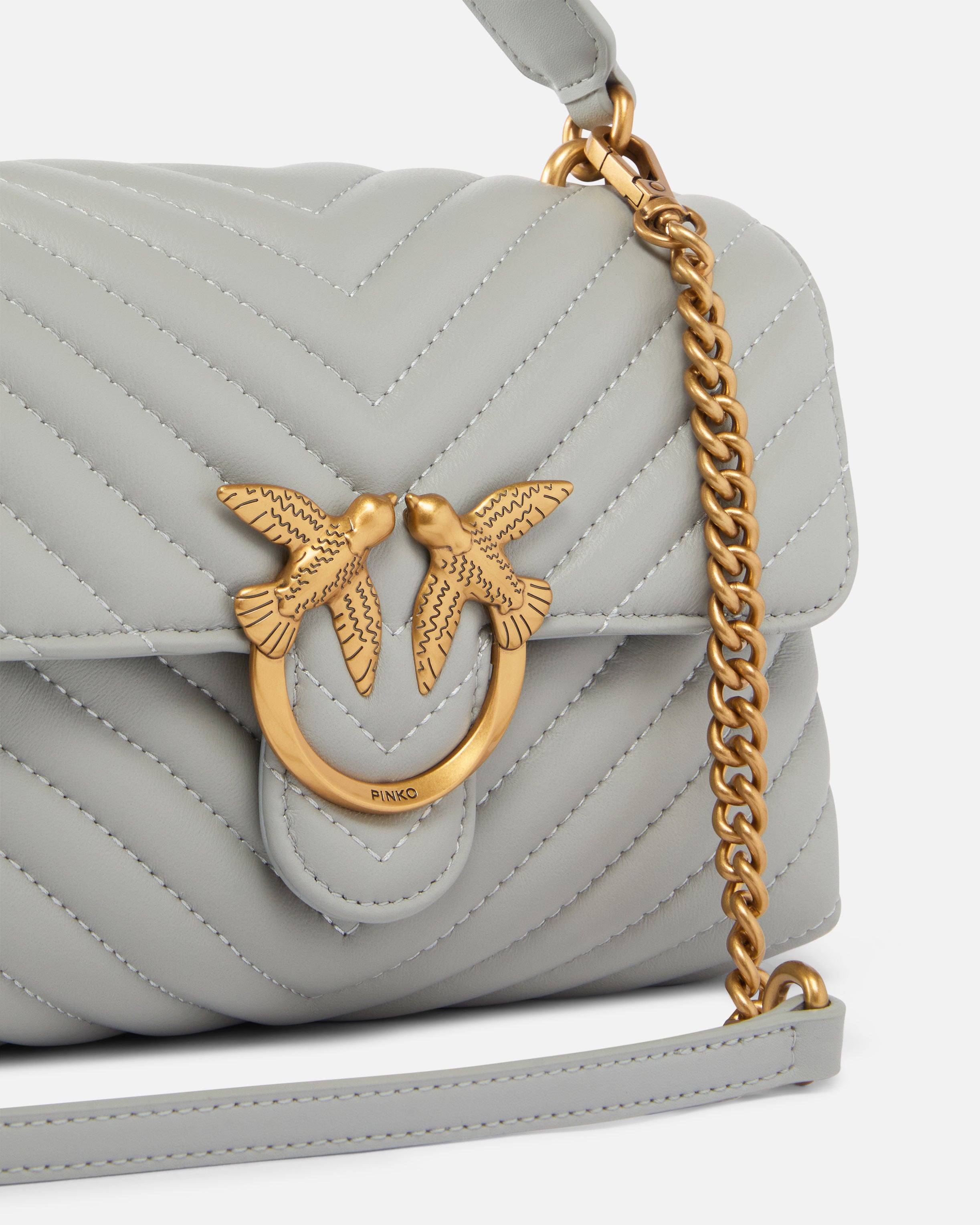 Mini Lady Love Bag Puff in quilted nappa leather with chevron pattern. The fastening is complete with the iconic metal Love Birds Diamond Cut buckle. The accessory boasts a microsuede-lined interior, complete with a zipped centre divider pocket and slip pocket. Top handle and shoulder strap that combines the classic round-link metal chain with a practical, adjustable nappa leather pad. Activate your PINKO bag: verify the authenticity of your product and access a personalised experience by scanning the Love Birds embroidery on the back of the bag with your smartphone! - LOVE LADY PUFF MINI CL