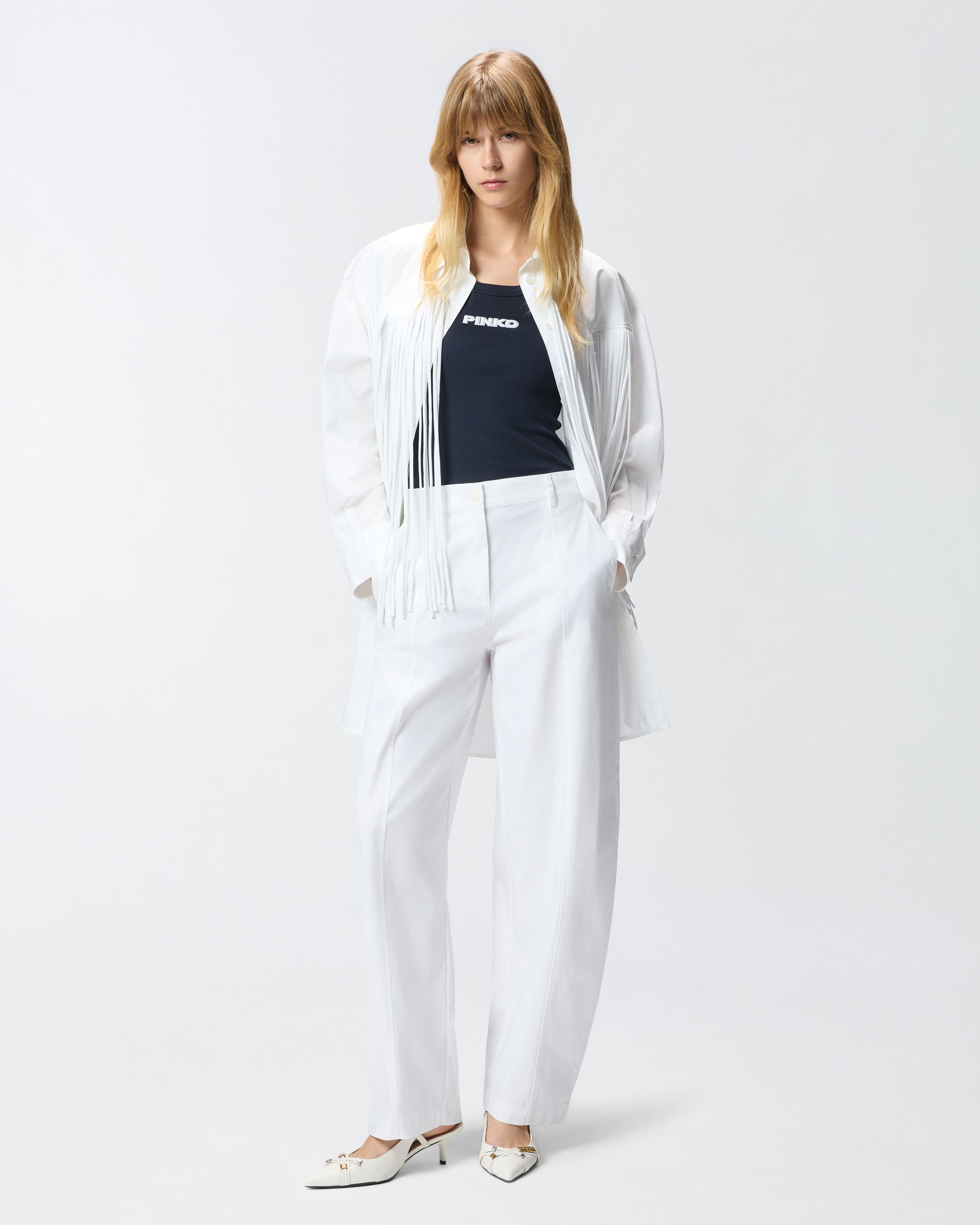 Vest top made of pure ribbed cotton and embossed with the iconic contrasting PINKO logo lettering on the front. A minimalist women's staple, perfect as part of a functional, modern summer look.