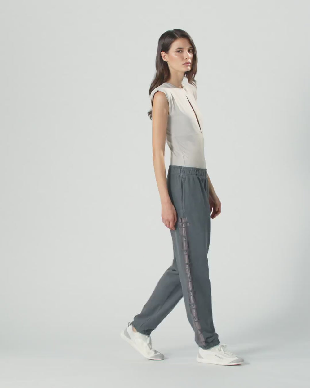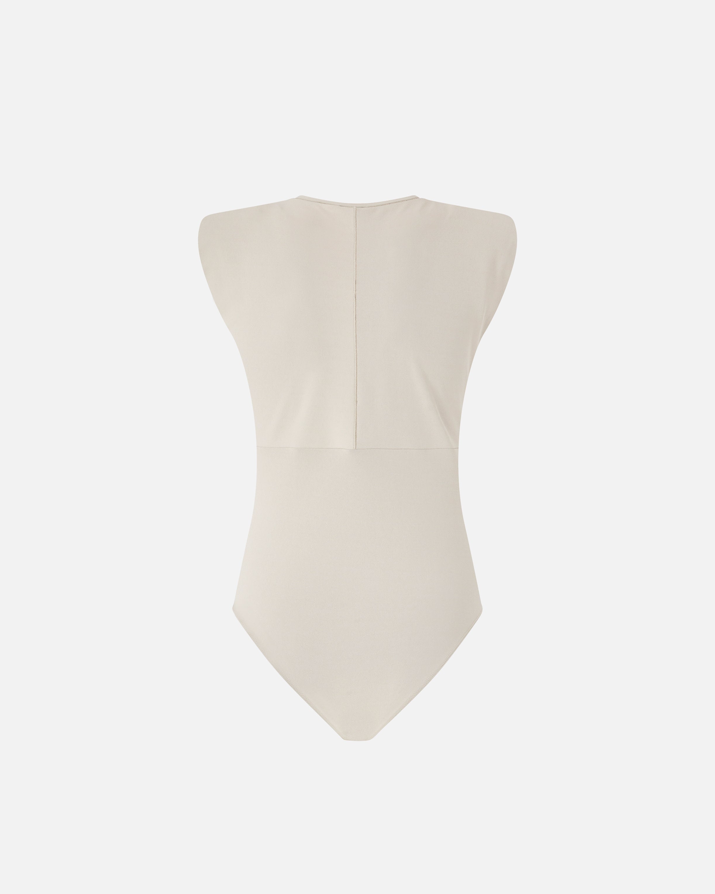 Cap-sleeved bodysuit in run-resistant stretch fabric that feels like a second skin when worn. The material is lined with contrasting fabric to create a sports-inspired technical look. The slim fit of the garment makes it highly feminine and sensual, but the most eye-catching detail is the simple yet striking cut-out on the chest.