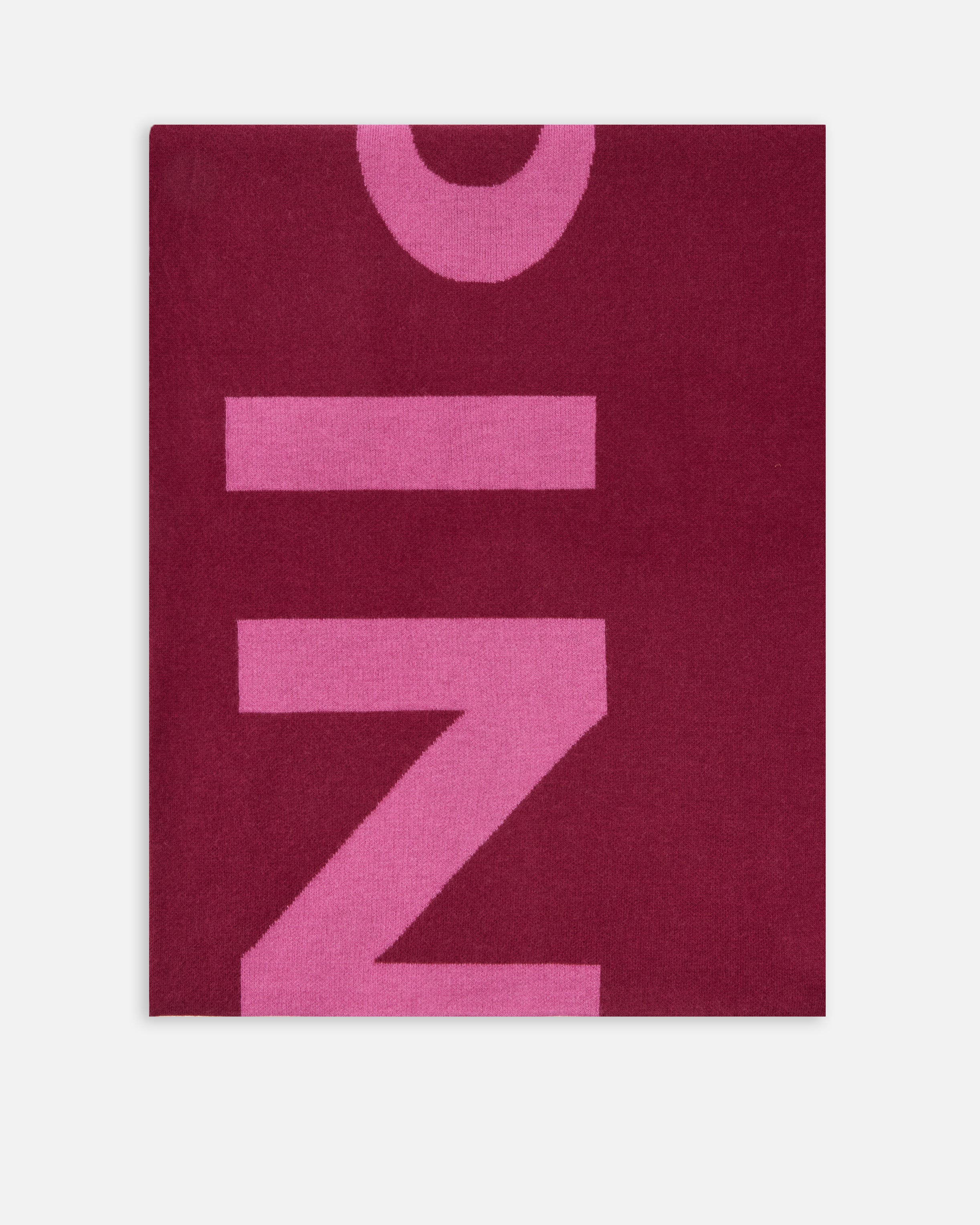 Versatile maxi-scarf in fine combed merino wool, which can be worn around the neck or as a shawl. The iconic design features the PINKO lettering logo with contrasting block characters and jacquard detailing: perfect for completing your outfits with a carefree touch. Face the coldest days in full-on PINKO style with this winter wardrobe essential.