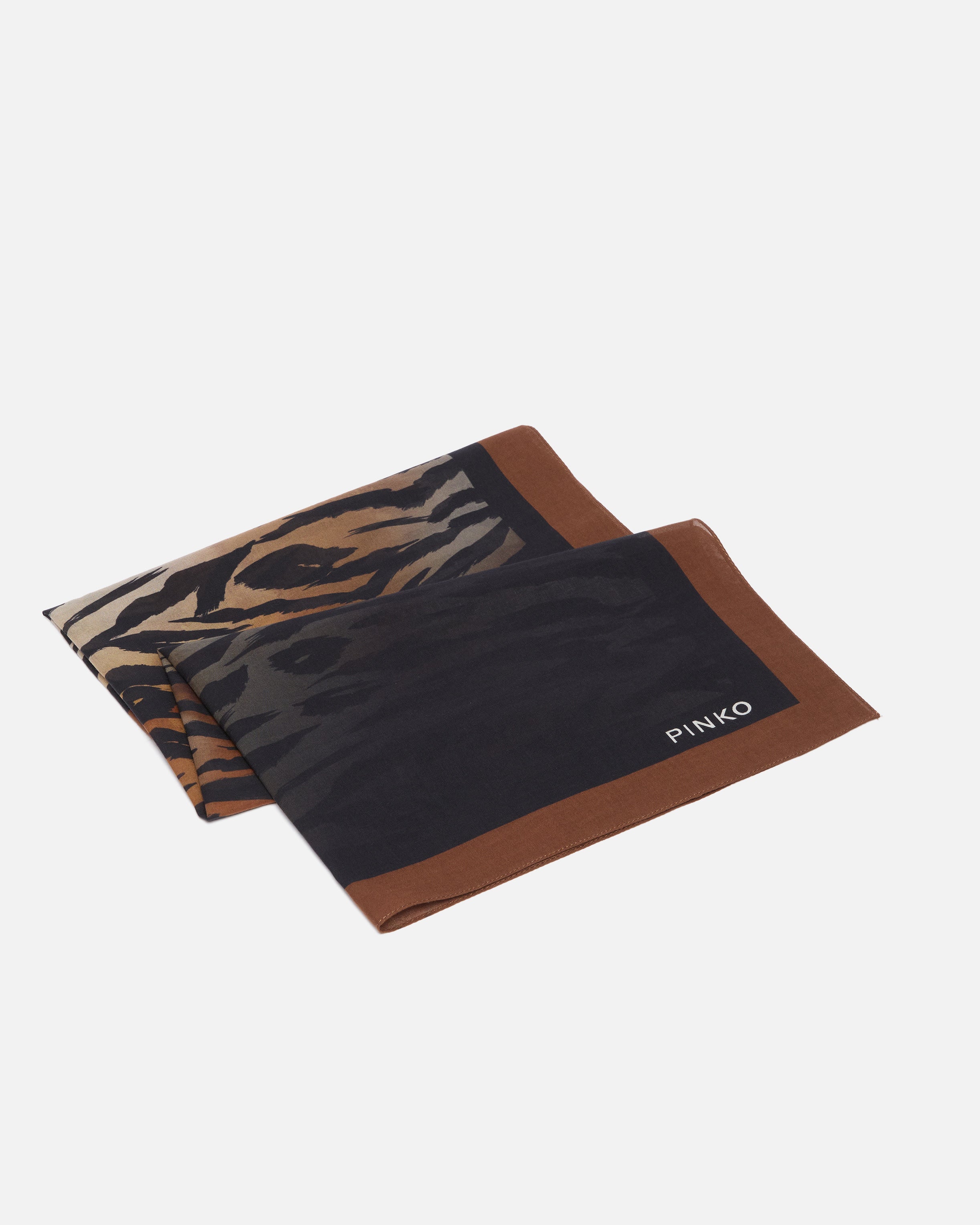 Scarf made from soft, durable pure cotton canvas. This model stands out for its seductive tiger print with darker, fade-effect ends, and is complete with contrasting edges and the iconic PINKO logo lettering. Understated yet striking, this accessory is perfect for a bold but classy vibe. - VALZER FOULARD
