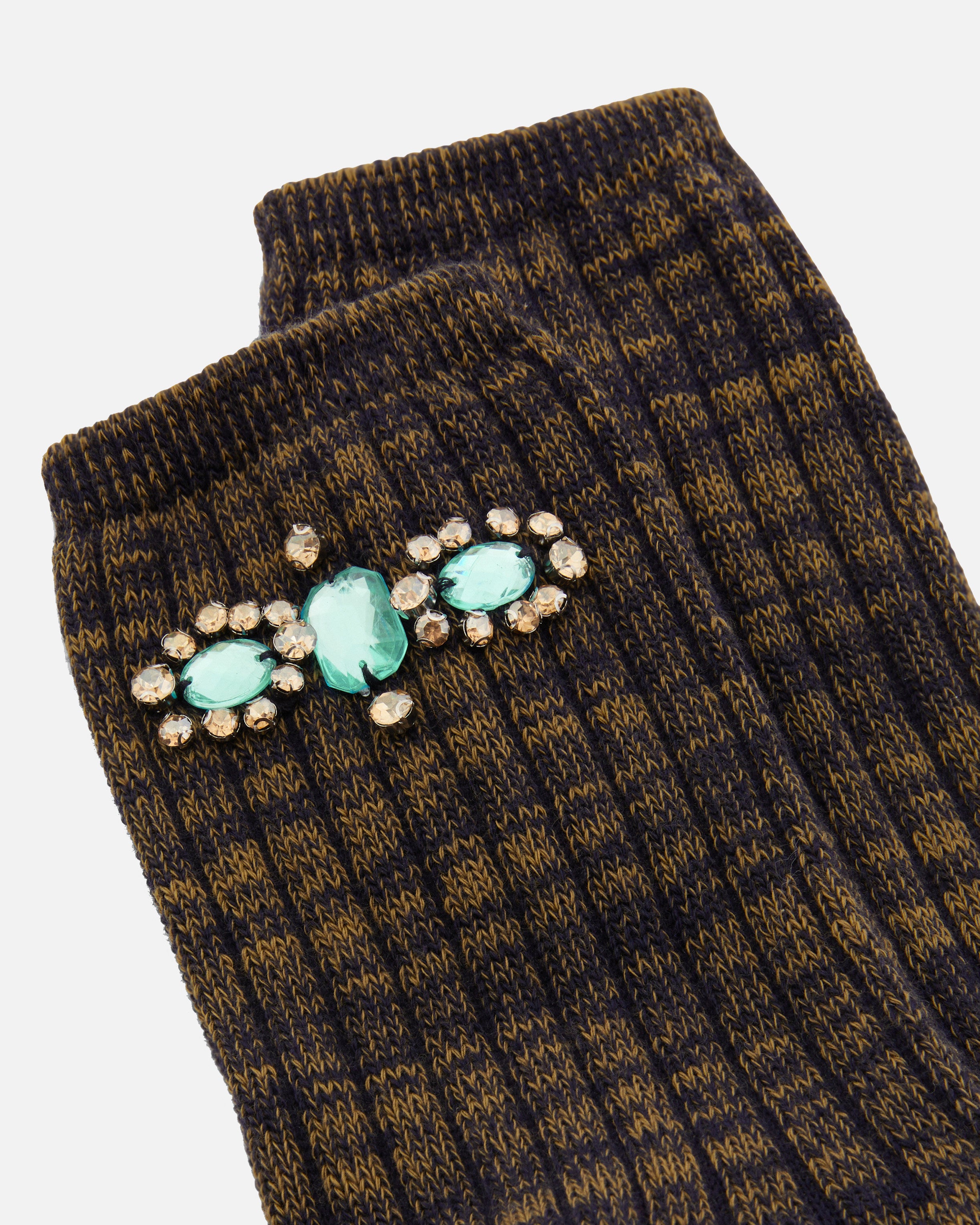 Soft medium-size socks with ribbing. Embellished with hand-applied crystal embroidery, this accessory will give your wardrobe a touch of originality. Wear this pair with low shoes and round off your looks in full PINKO style.