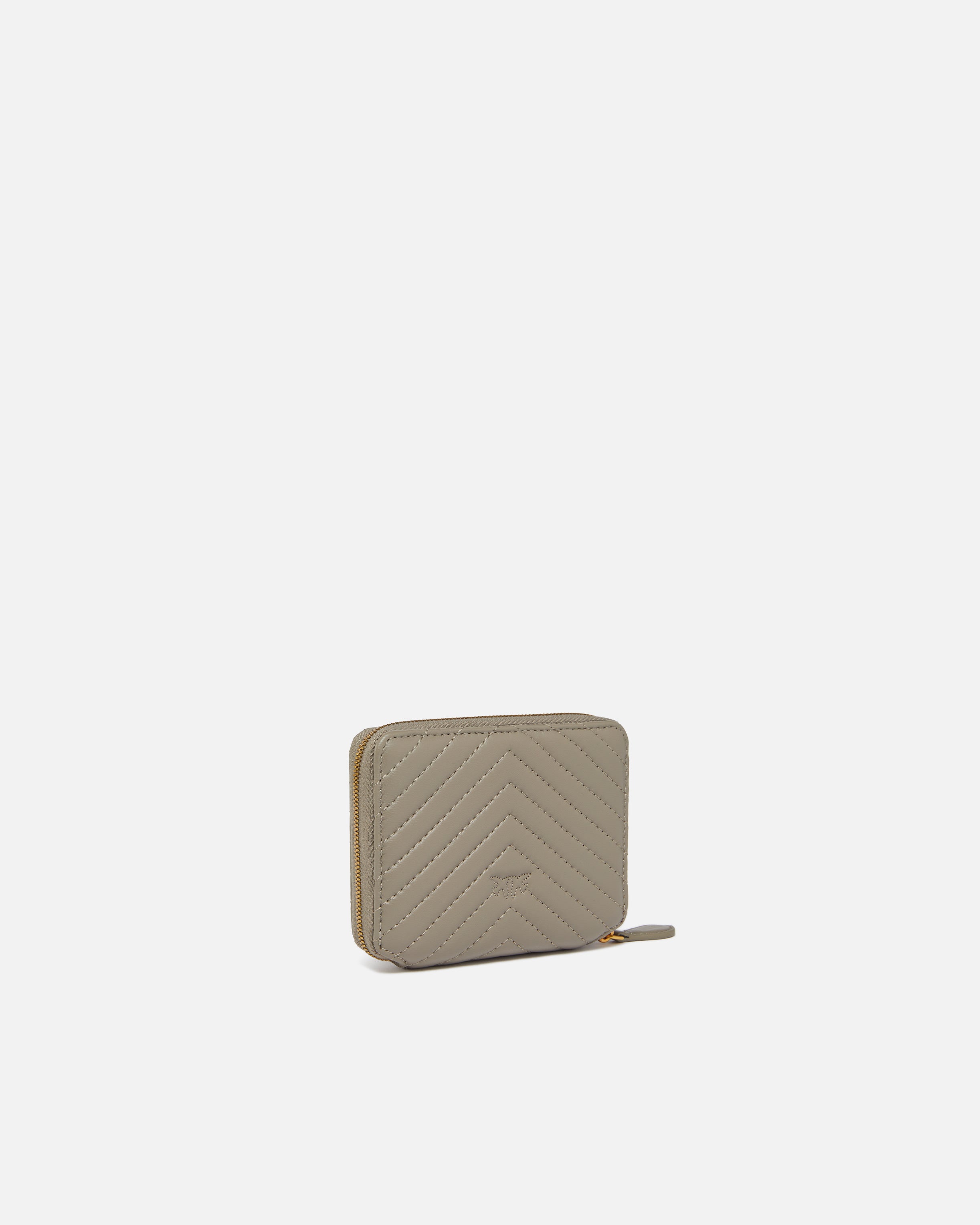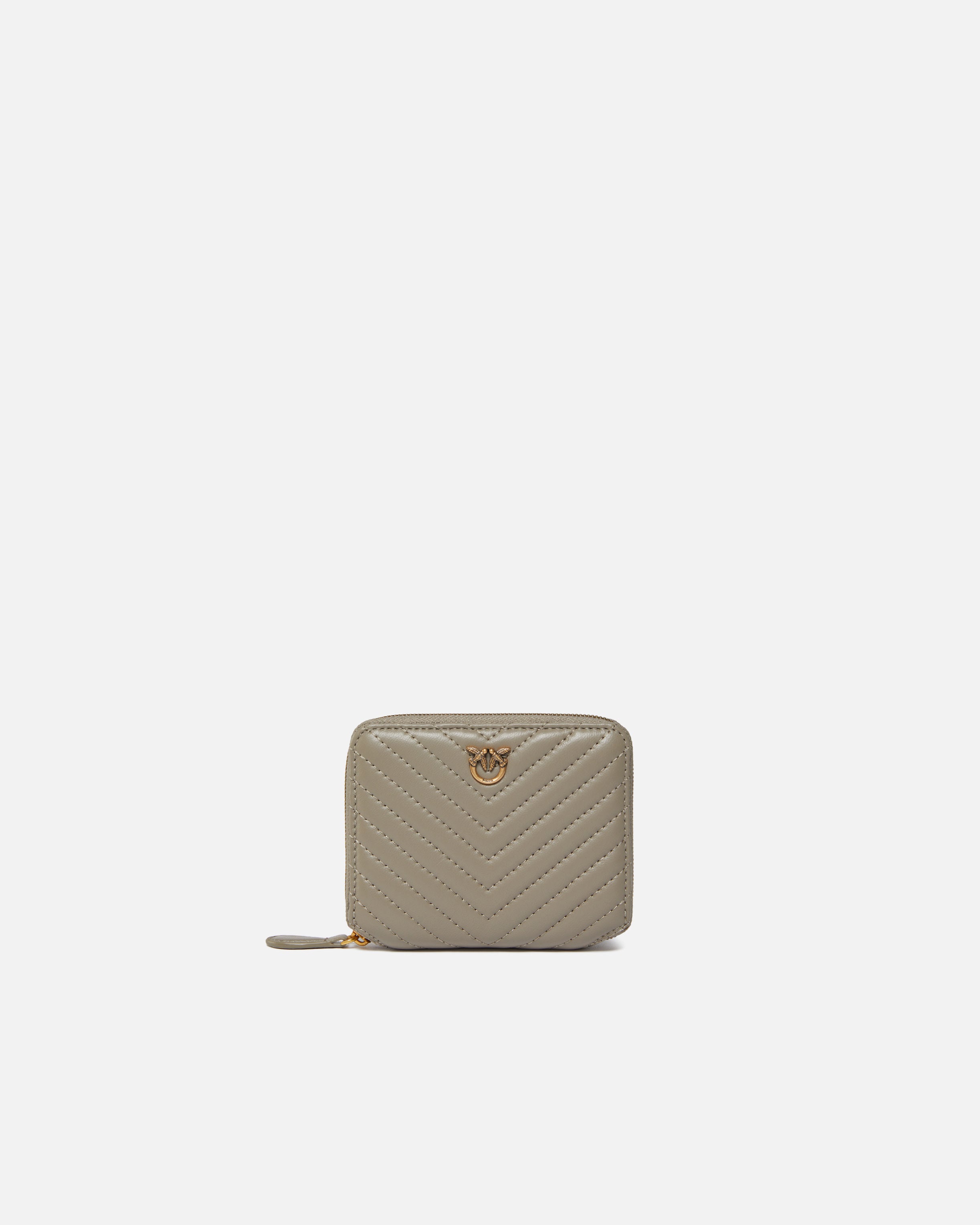 Squared-shaped zip-around purse in nappa leather with chevron pattern, featuring the Love Birds Diamond Cut plaque on a leather base. Polycotton-lined interior. Zip fastening. - TAYLOR ZIP-AROUND