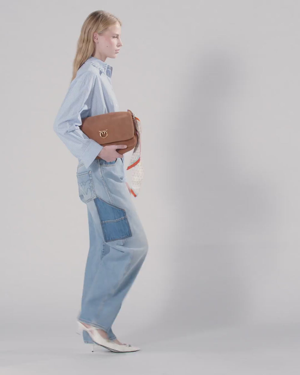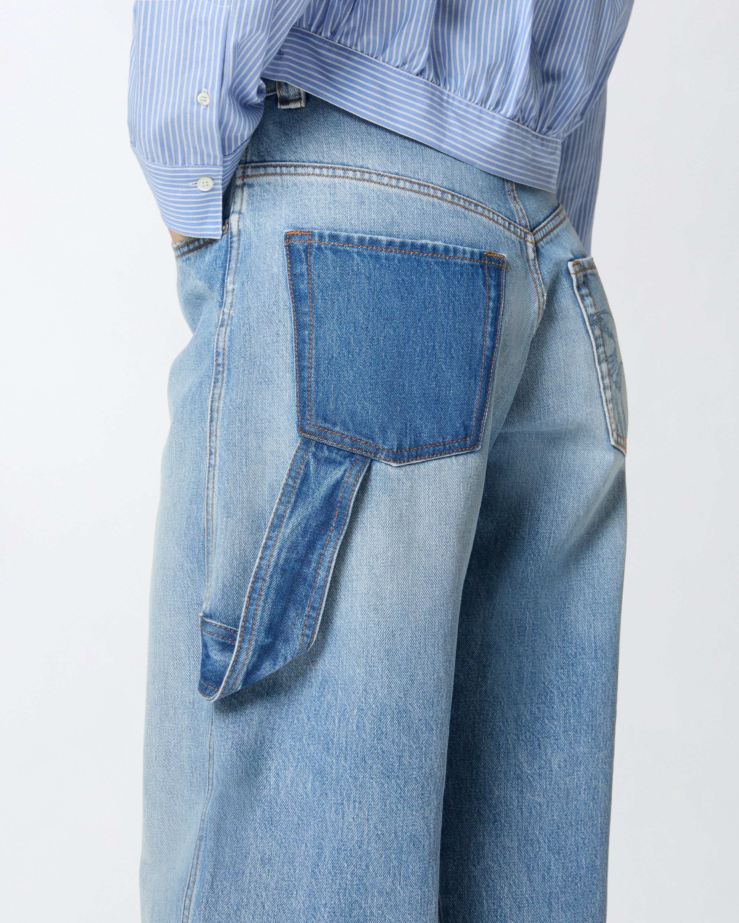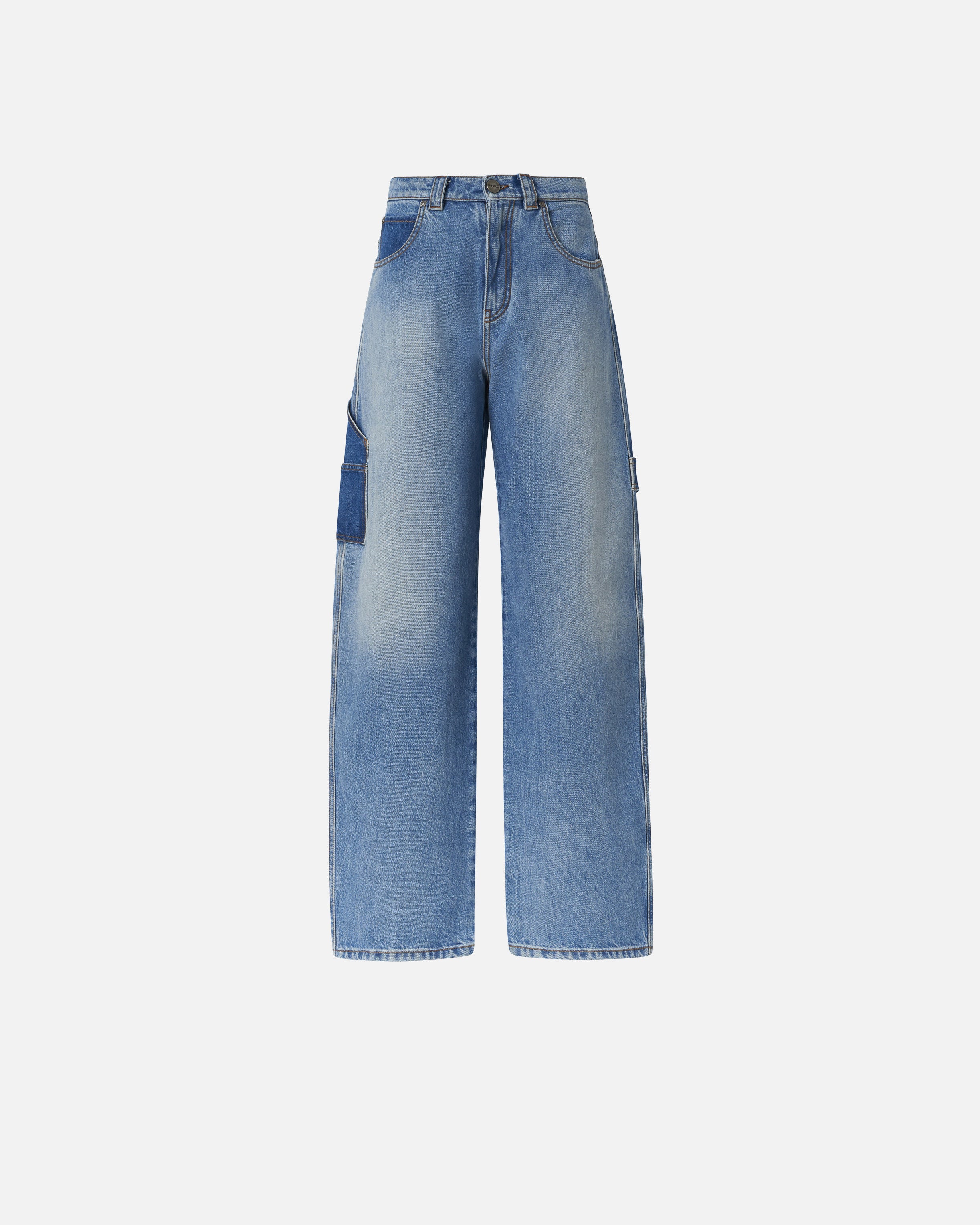 Balloon-fit jeans with legs that are rounded at the top and straight at the bottom, made from pure cotton denim with medium-light wash and fading in the worn areas for a vintage effect. This model is enhanced by the contrasting colour provided by the darker wash of the fifth pocket, one of the rear pockets, the workwear-style loop on the back and the functional maxi side pocket joining the five-pocket design. Giving these jeans a streetwear-style custom touch is the iconic Love Birds logo embroidered on the back right pocket. - ELOISETTE EGG