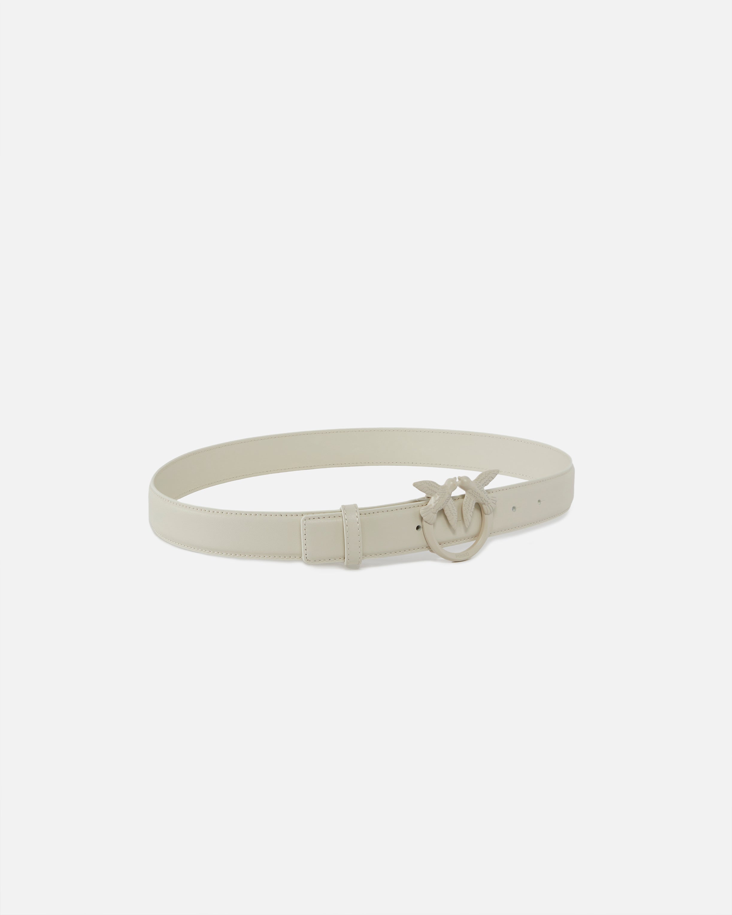 3 cm high belt in soft silky leather with Love Birds Diamond Cut metal logo buckle, enamelled in colour tone.