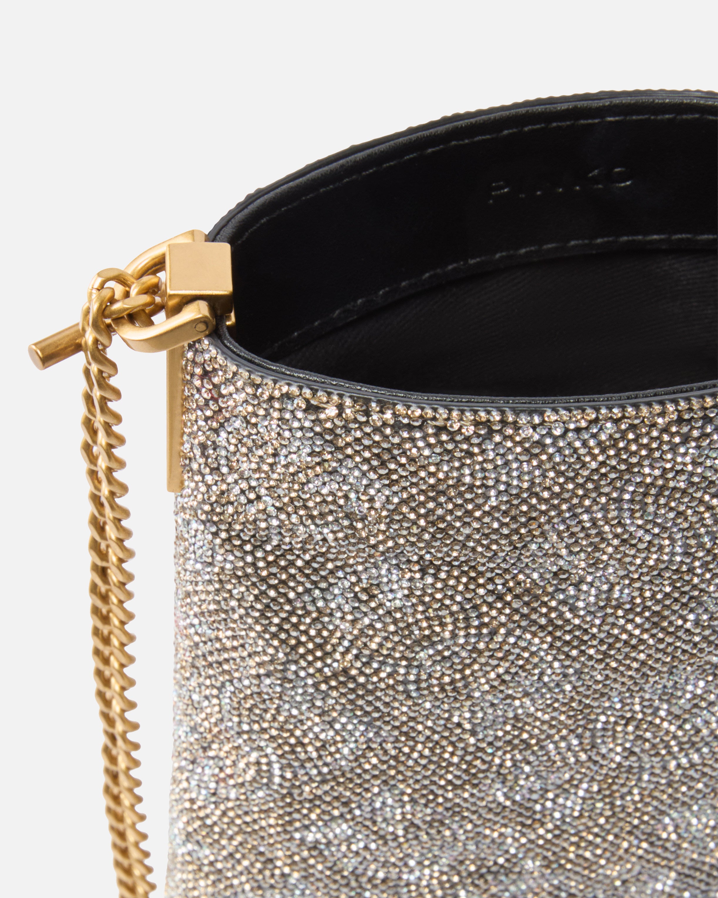 Leather smartphone case covered entirely in rhinestones, featuring the Love Birds monogram motif and equipped with a back pocket and special chain that allows you to wear it around your neck. The perfect companion to take with you on your travels, this accessory keeps your mobile phone safe and adds a touch of eccentric and original style. Activate your PINKO accessory: verify the authenticity of your product and access a personalised experience by scanning the Love Birds embroidery on the back with your smartphone!
