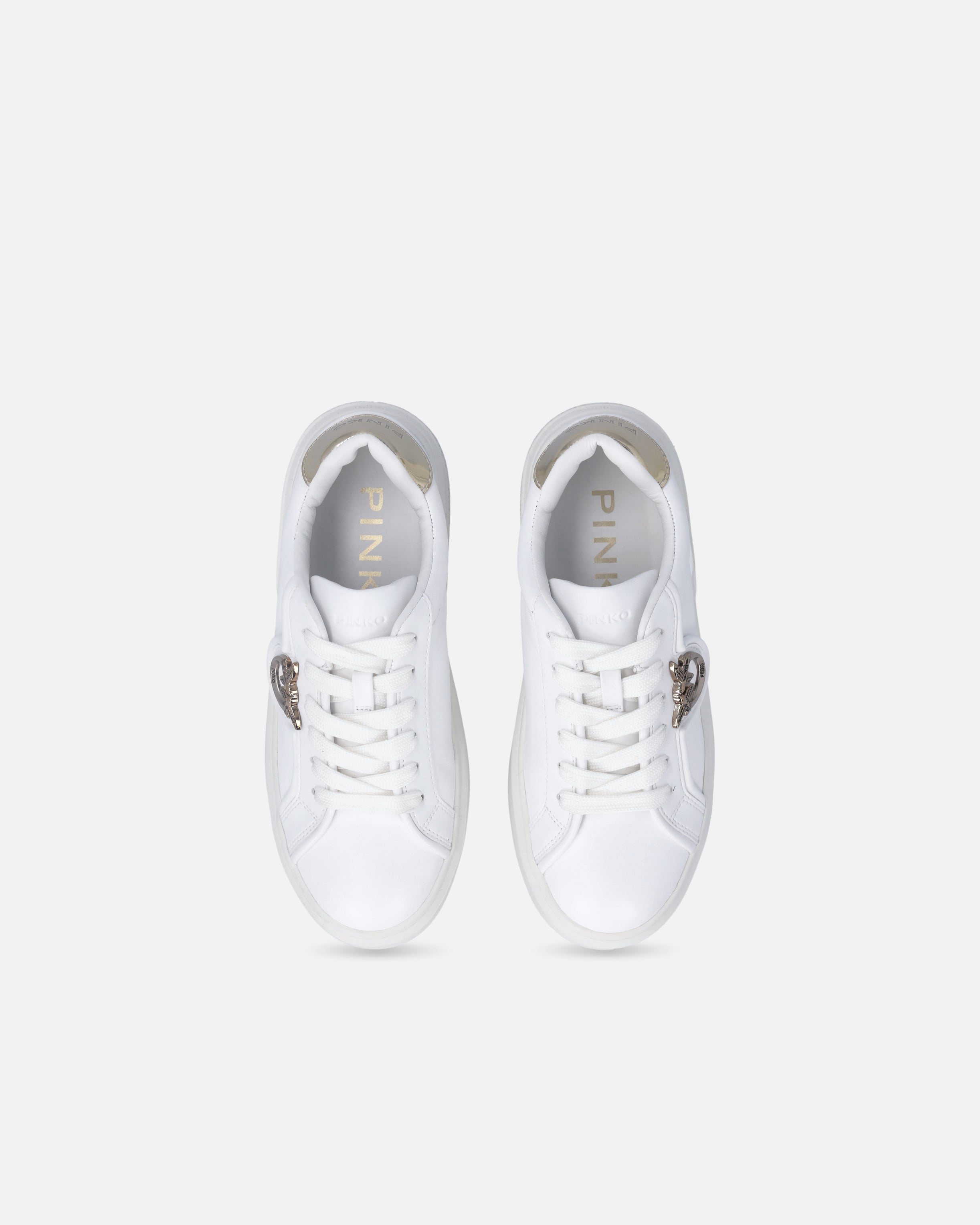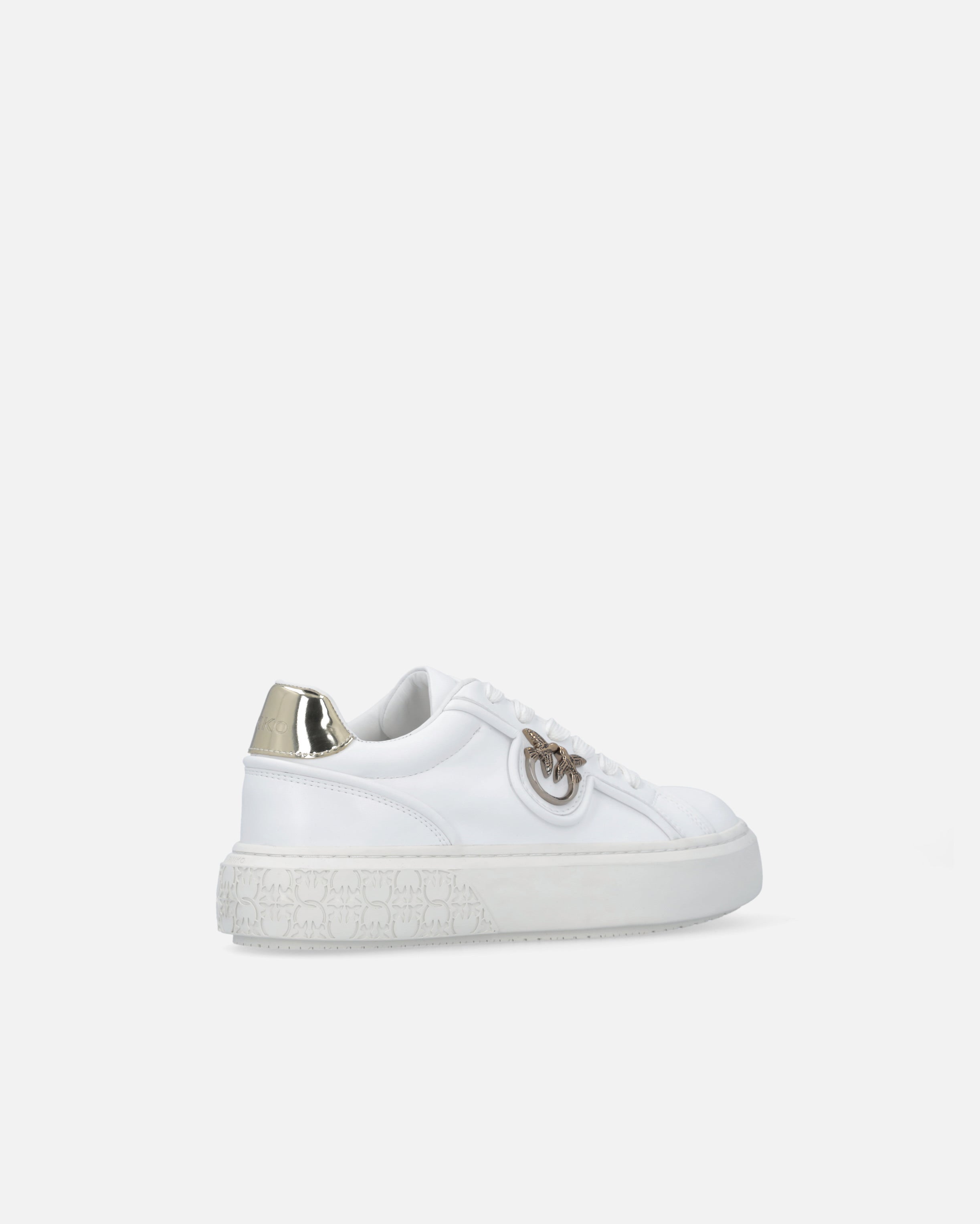 Lace-up sneakers in smooth leather and technical fabric. The style is embellished with the bright touches of the contrasting shiny heel and the Love Birds Diamond Cut logo on the side, while the iconic PINKO logo lettering is embossed on the tongue and heel. The chunky sole features a tonal insert on the back with an embossed all-over Love Birds logo detail on the rubber for an extra customised design. A minimalist women's staple, perfect as part of a functional, modern summer look. - YOKO 06