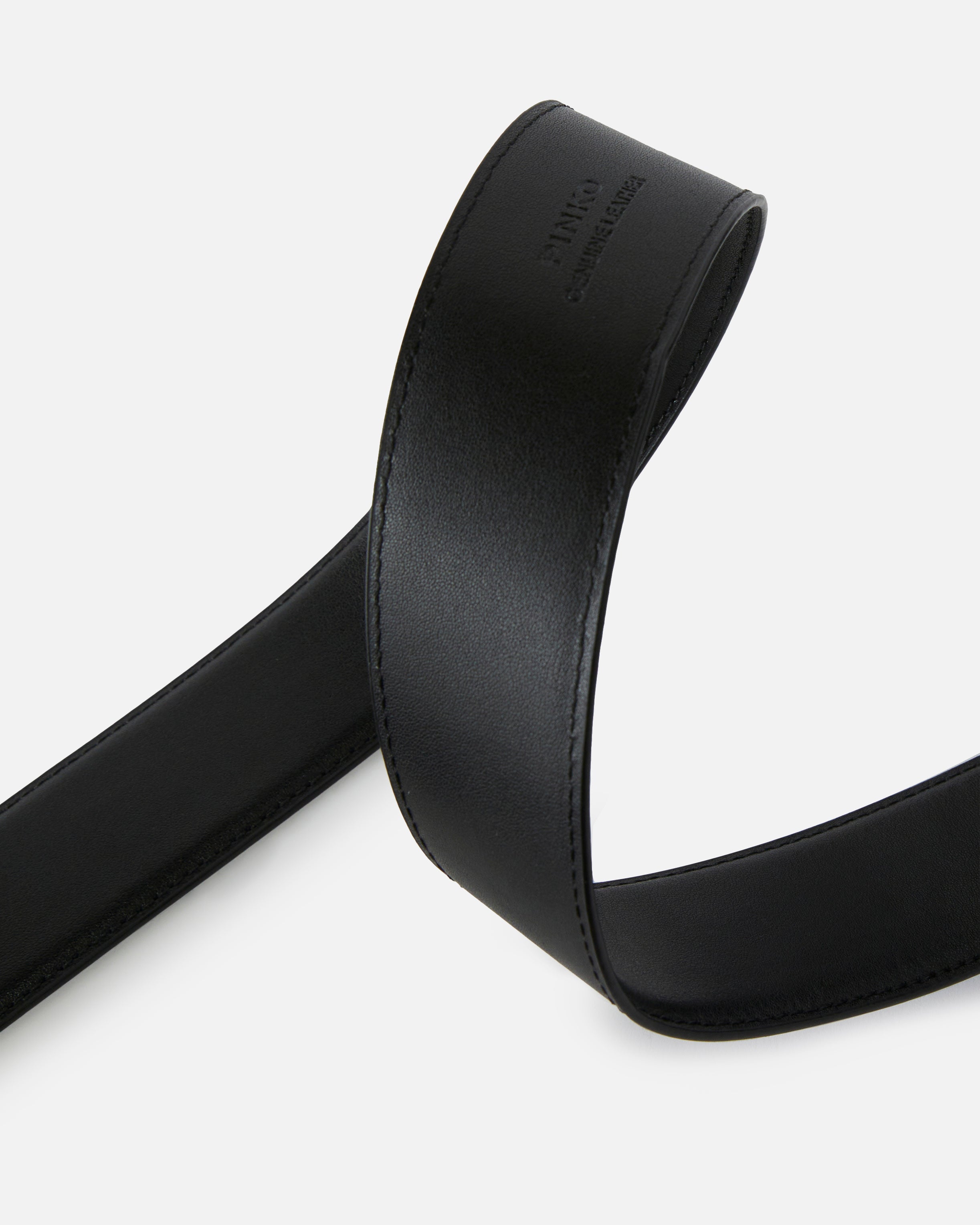 High-waist belt in soft, silky leather with metal Love Birds Diamond Cut buckle.
