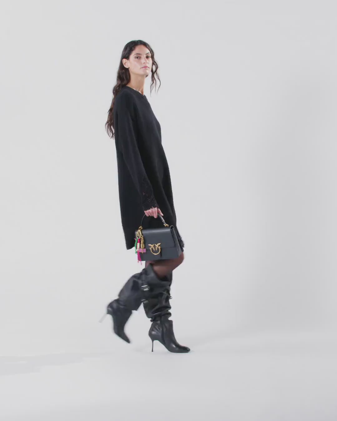 Mini Love Bag One Top Handle Light in soft, silky leather with a light, deconstructed design. The fastening is embellished with the iconic metal Love Birds Diamond Cut buckle. The accessory boasts a microsuede-lined interior and a zipped slip pocket. Adjustable and removable leather shoulder strap, and top handle.